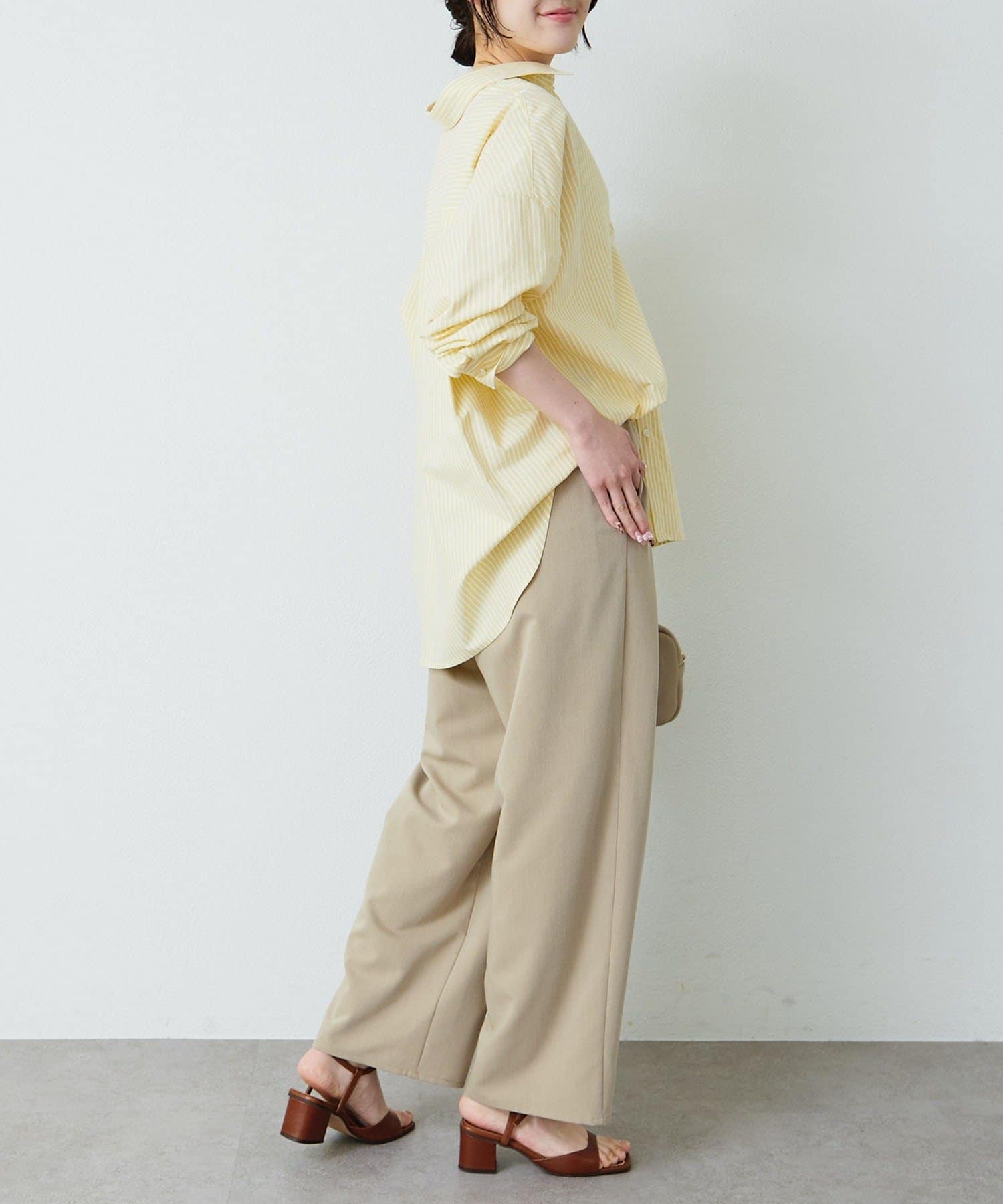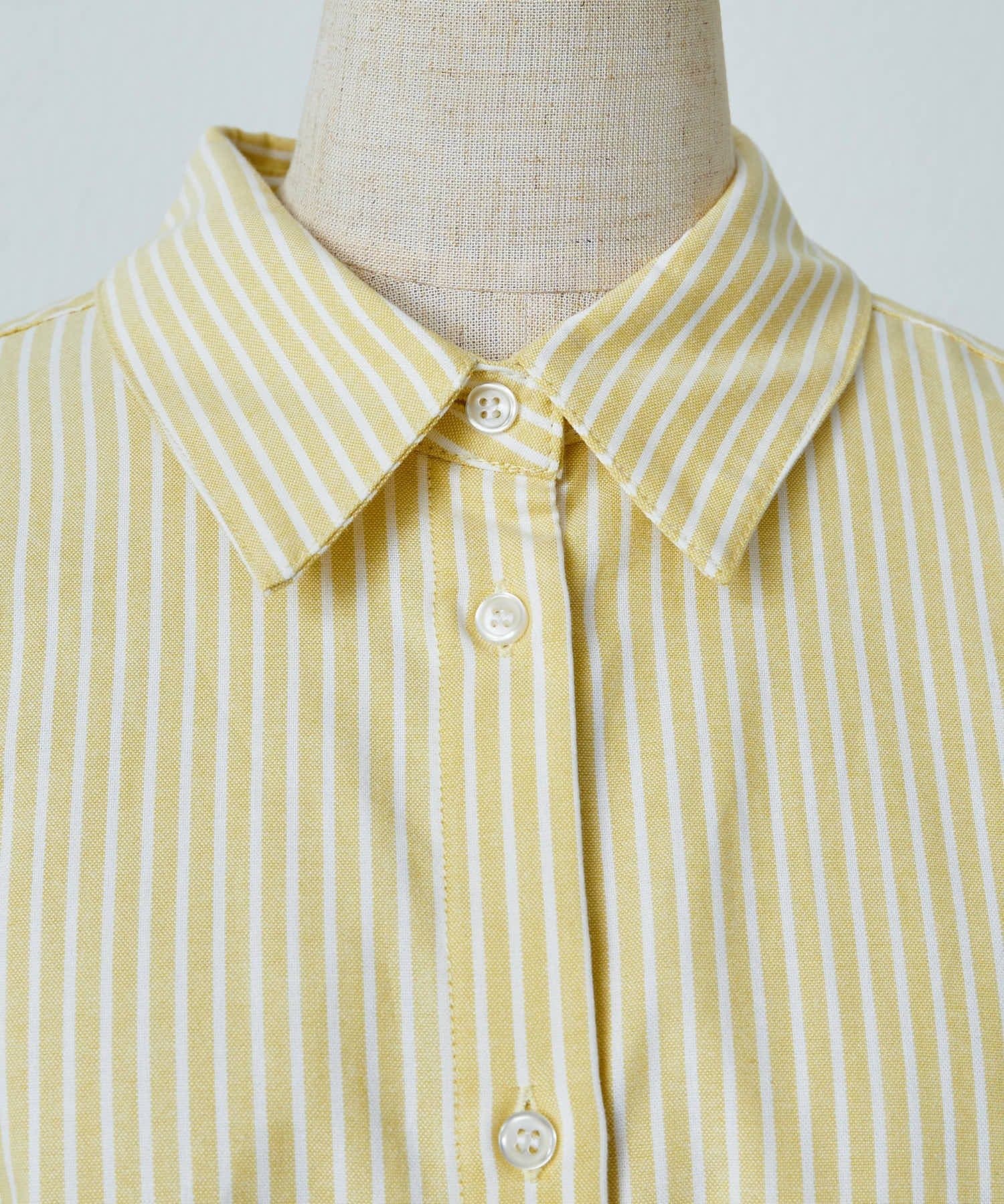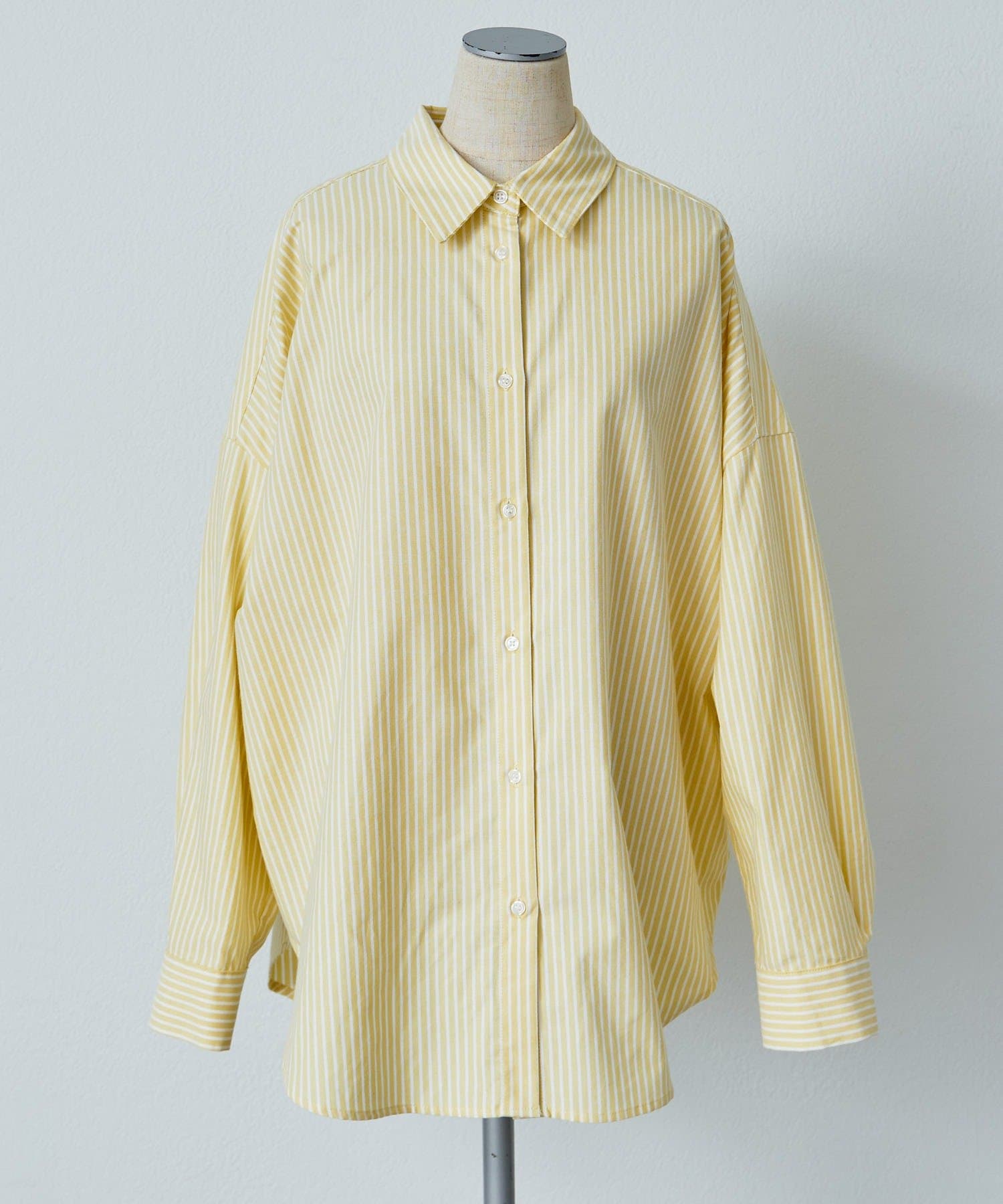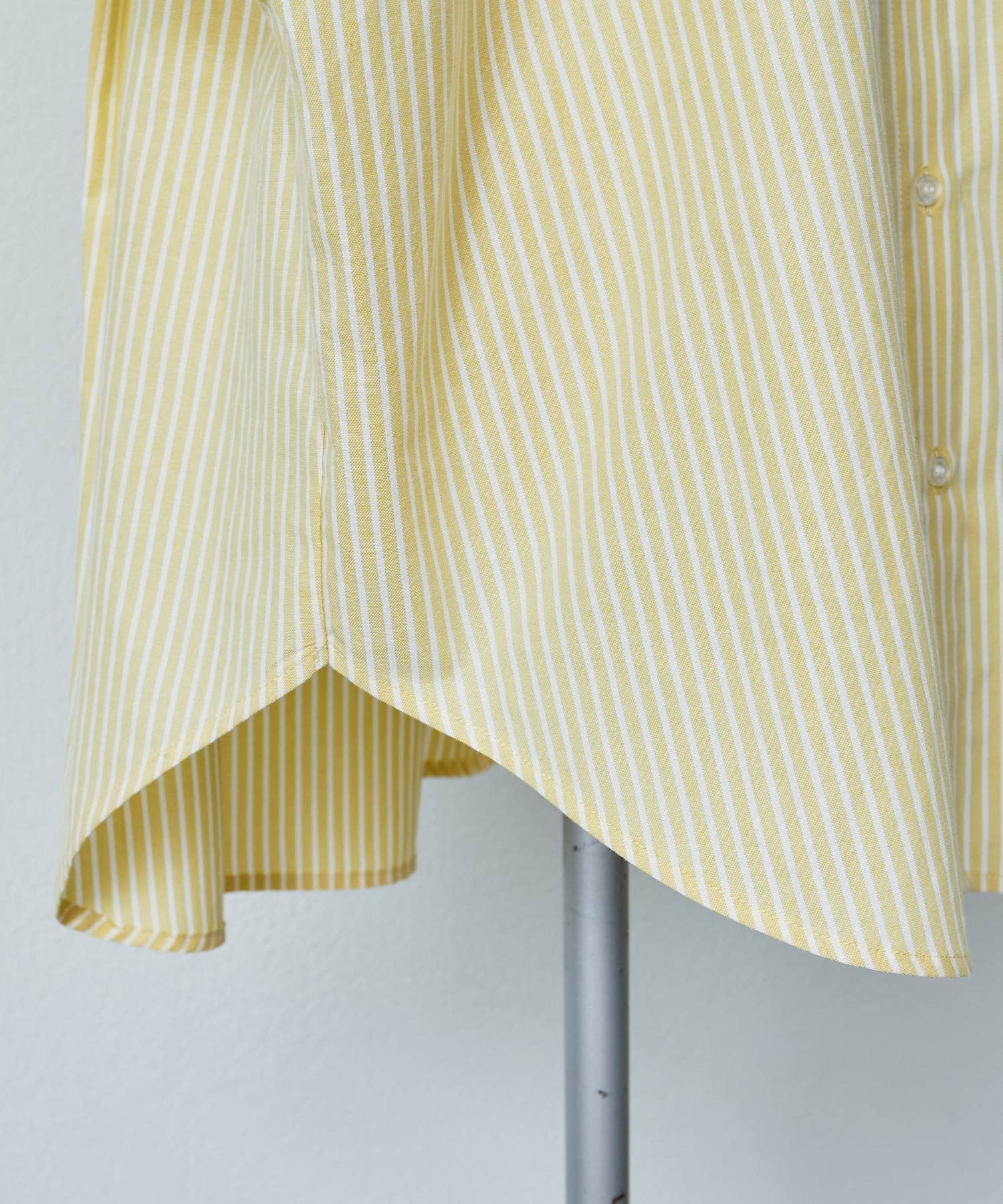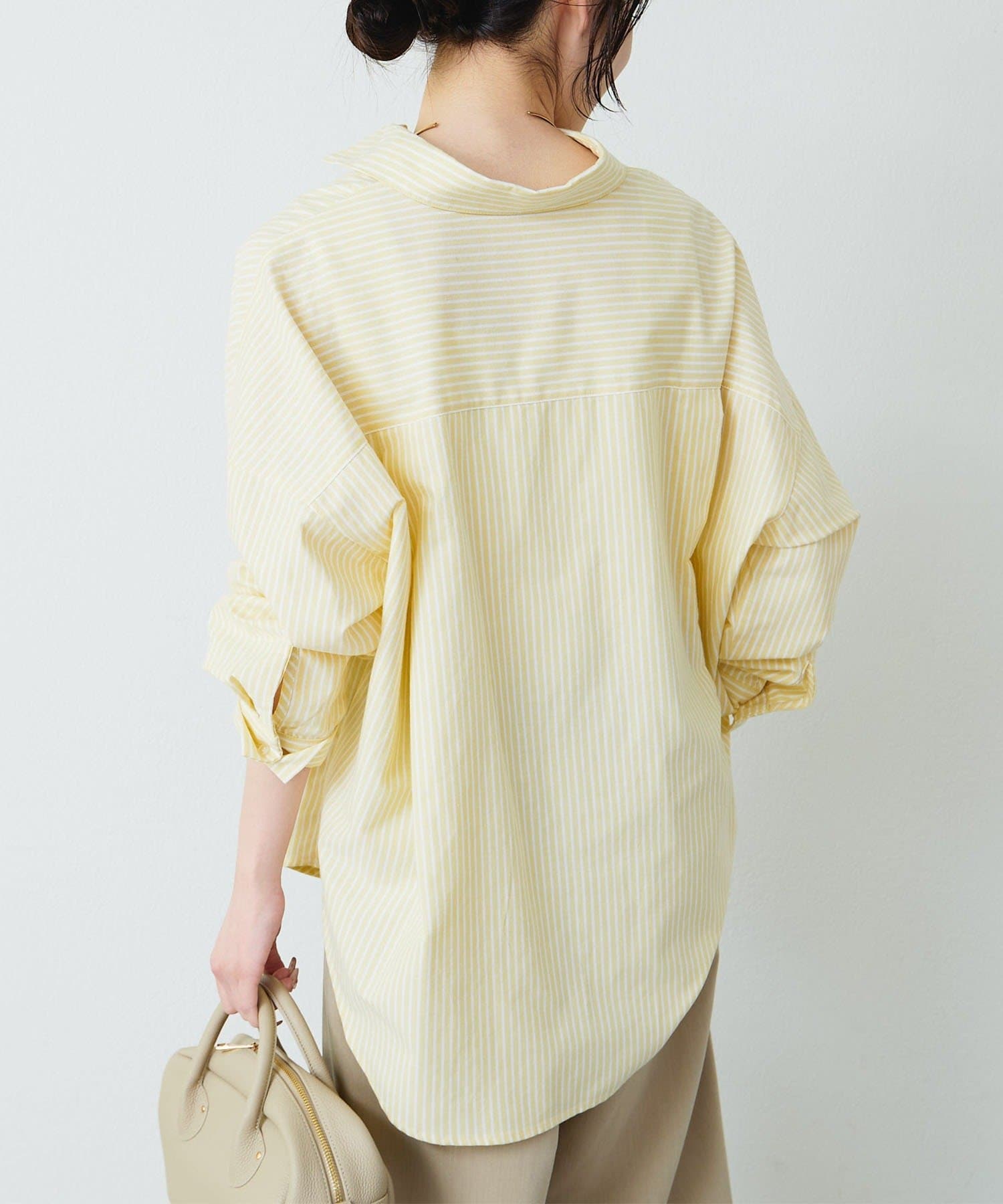 春らしい色合いで、コーディネートに取り入れるだけで気分の上がるストライプシャツ。