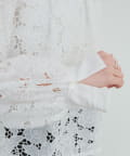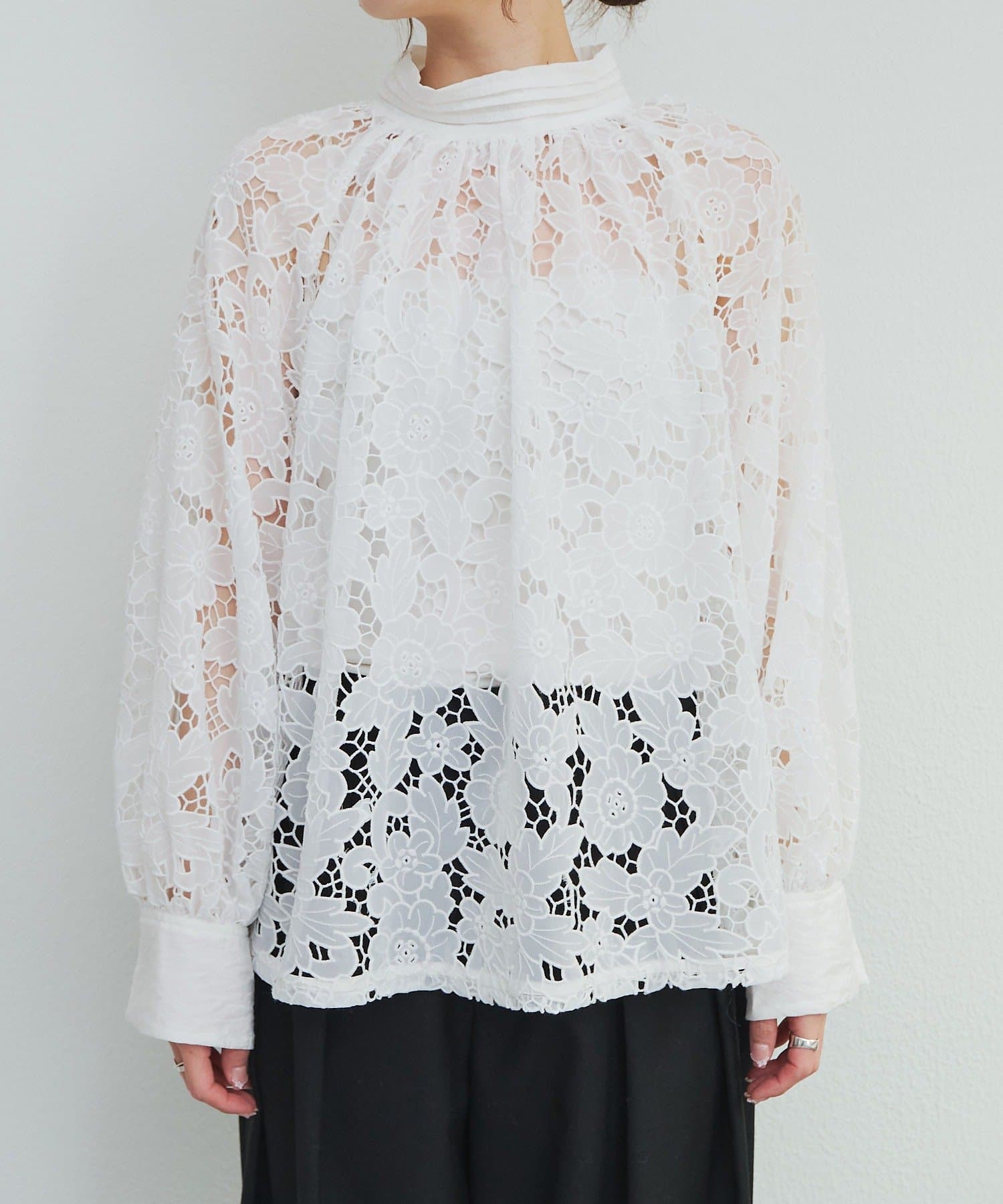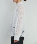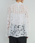 異なる大きさや形の花柄が目を引くレースブラウス。