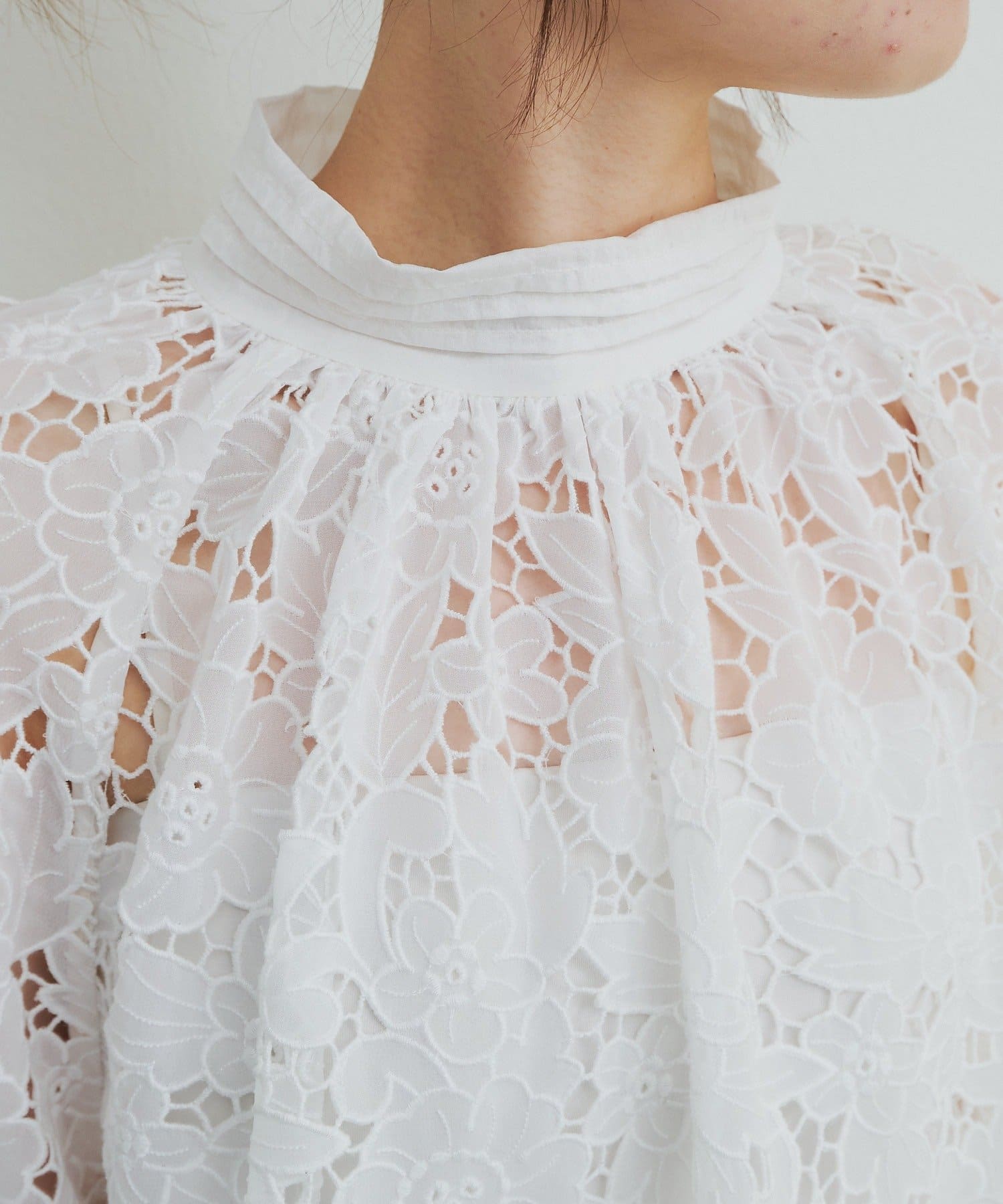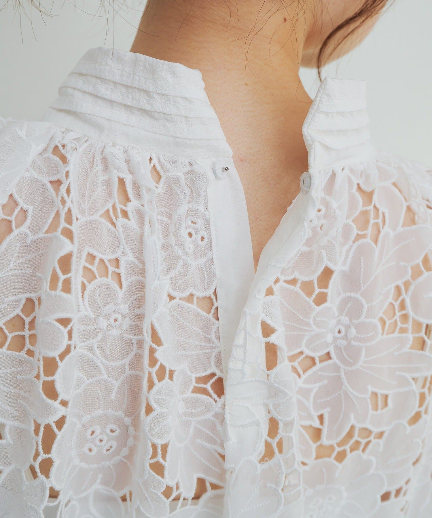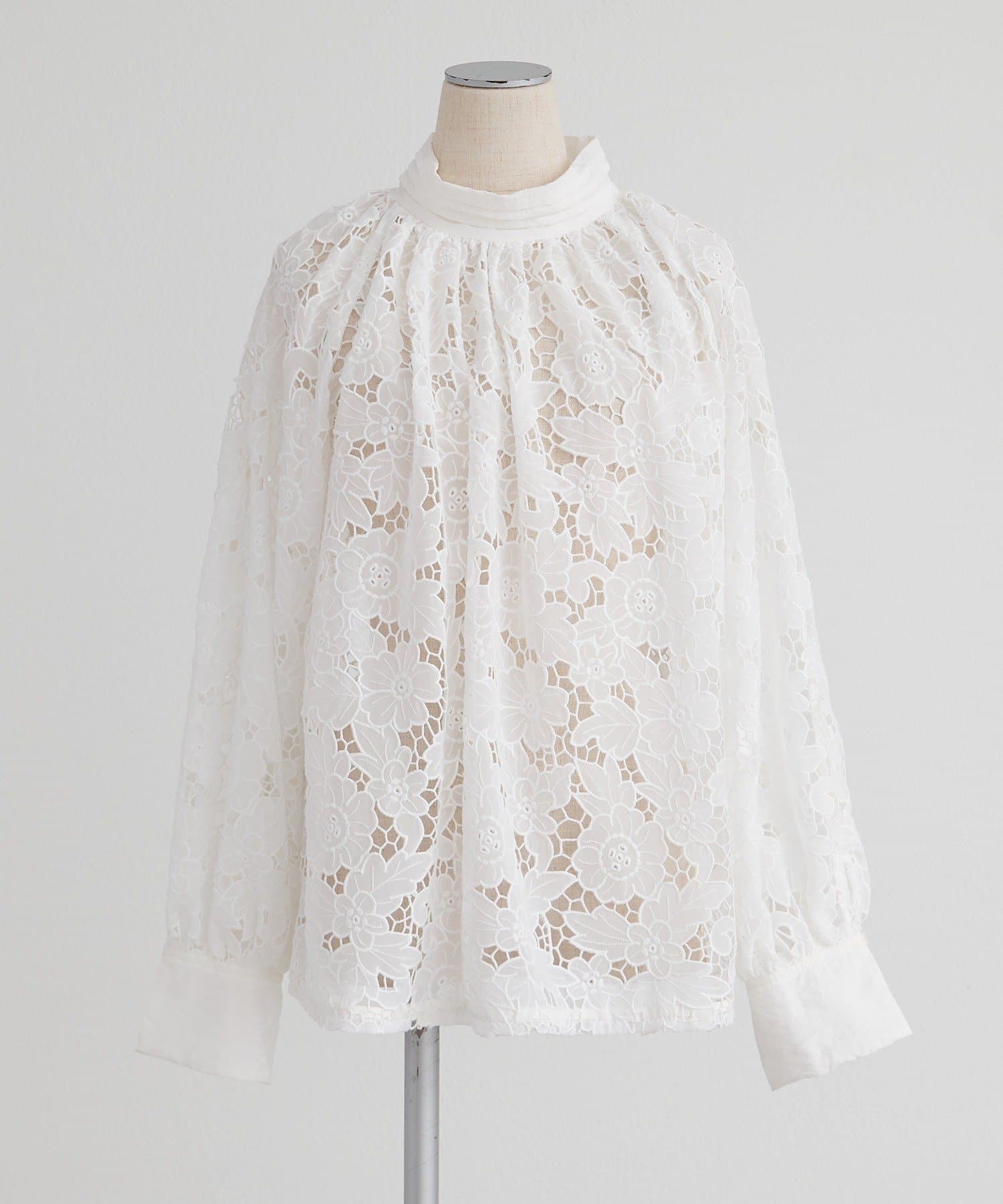 フラワーモチーフカットワークレースブラウス