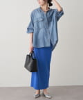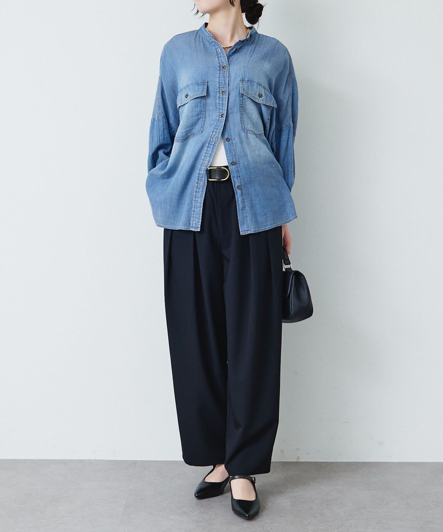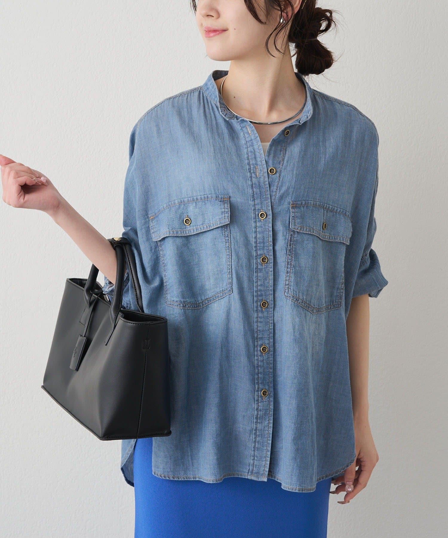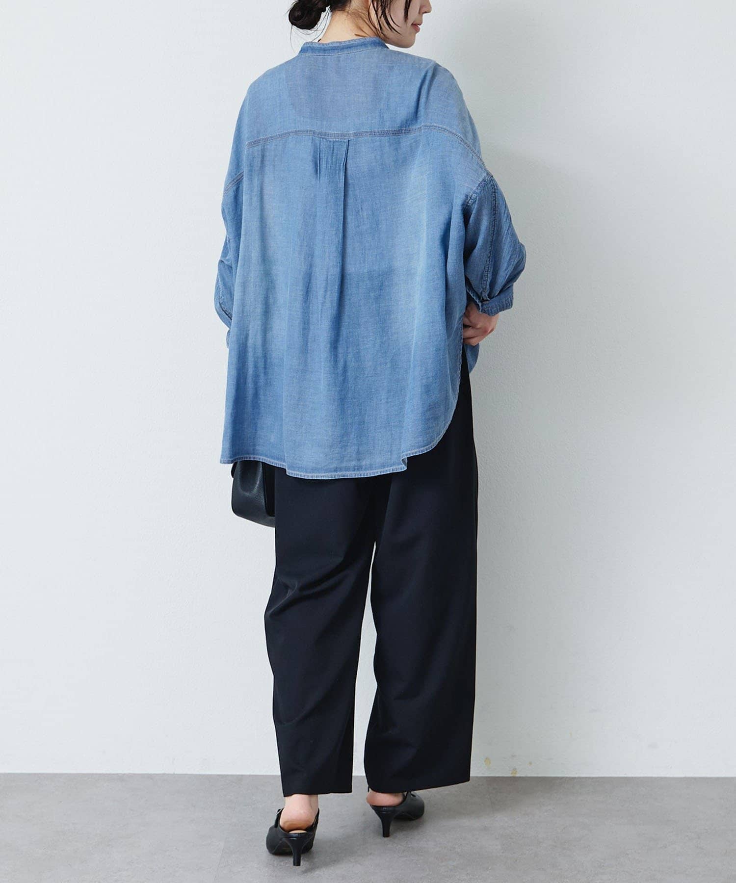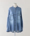 シアーデニムバンドカラーブラウス