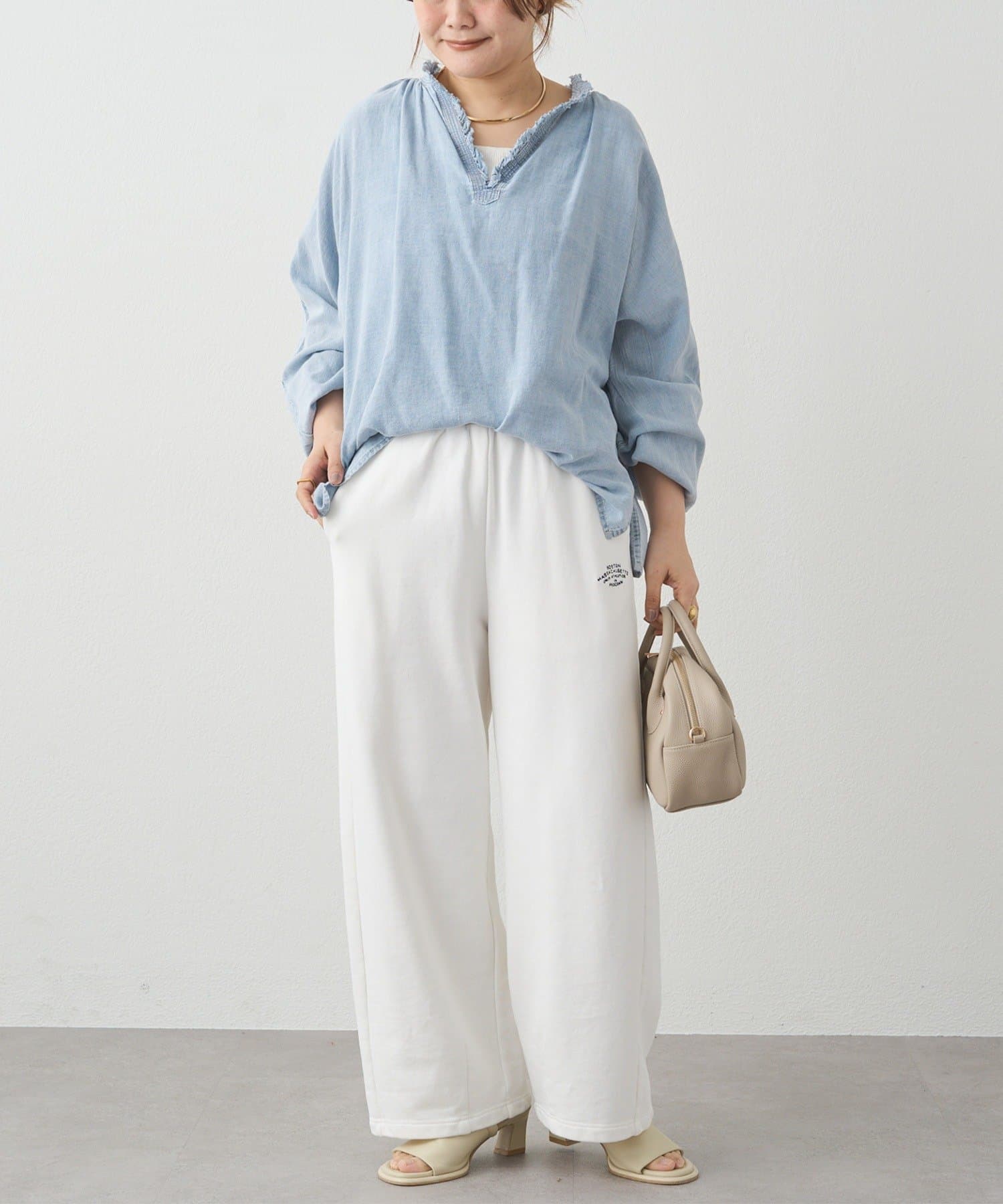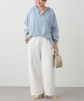 白やキナリのワイドパンツを合わせて