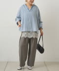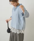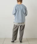 • PUAL CE CIN(ピュアルセシン) 襟元フリルシアーデニムブラウス
