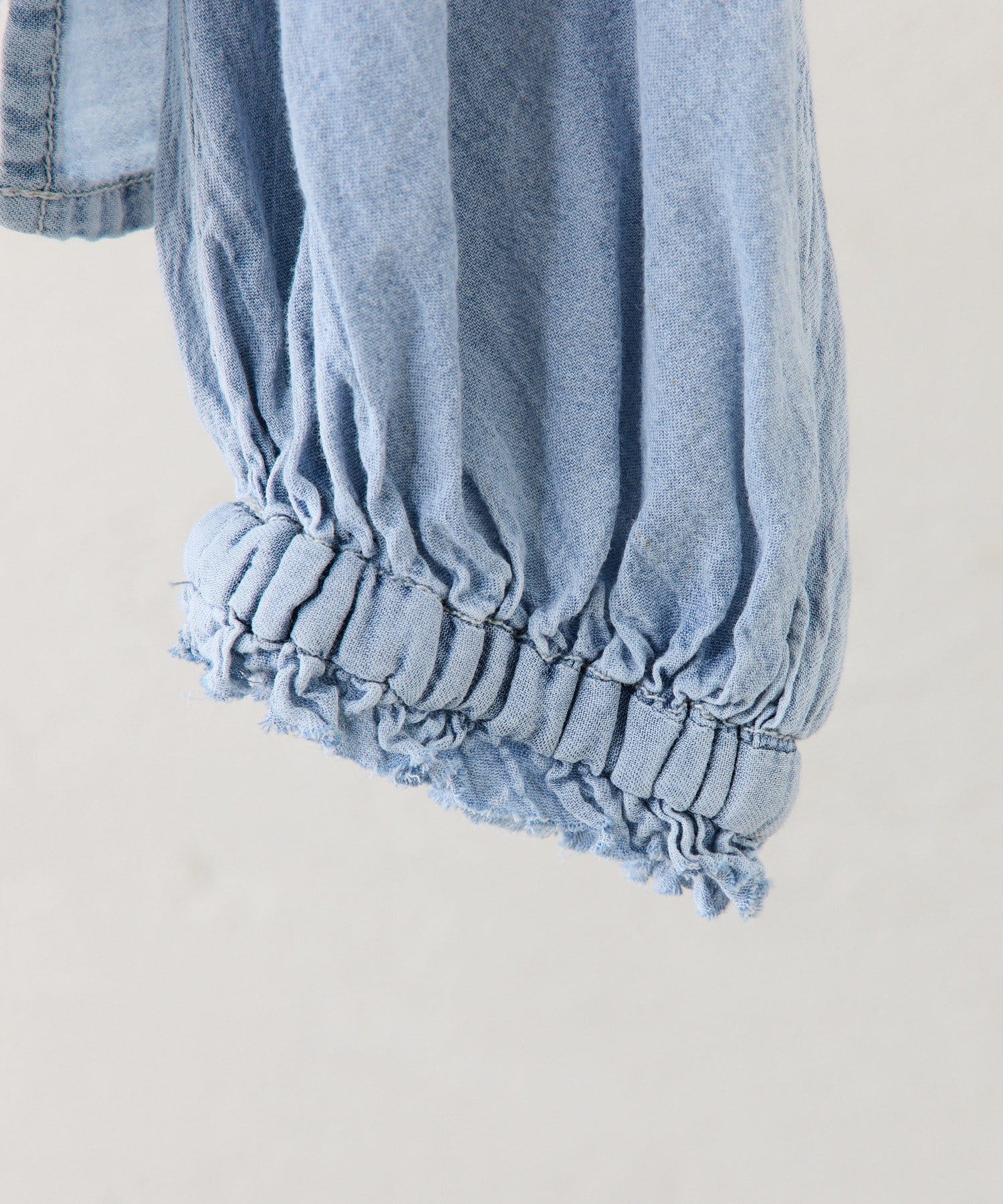 デニム特有の風合いを軽やかに仕上げた薄手の生地。