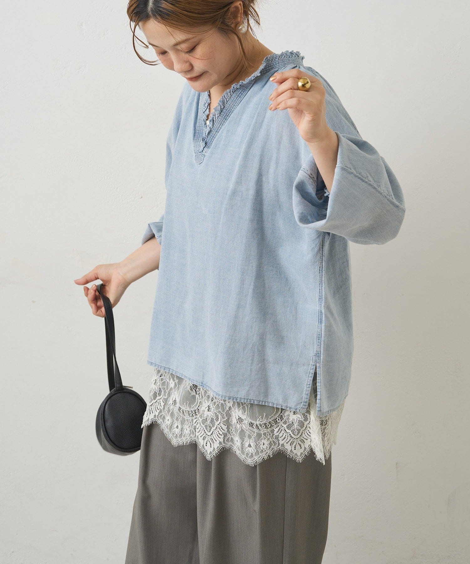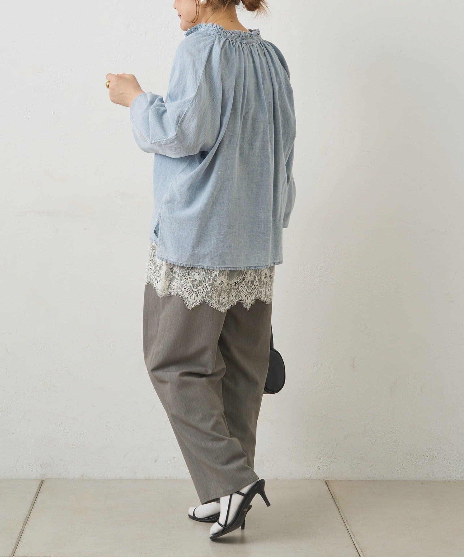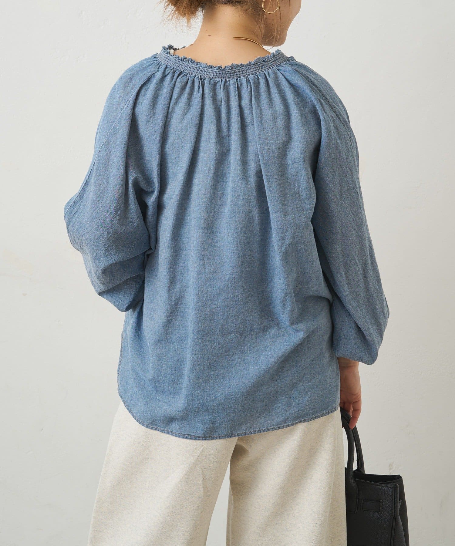 ◇細部のこだわりが光る、着るだけで自然とこなれて見えるシアーデニムブラウス◇