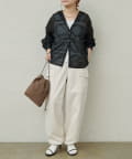 襟付きのキチンと感がありつつ、軽やかな素材が抜けをつくることで、