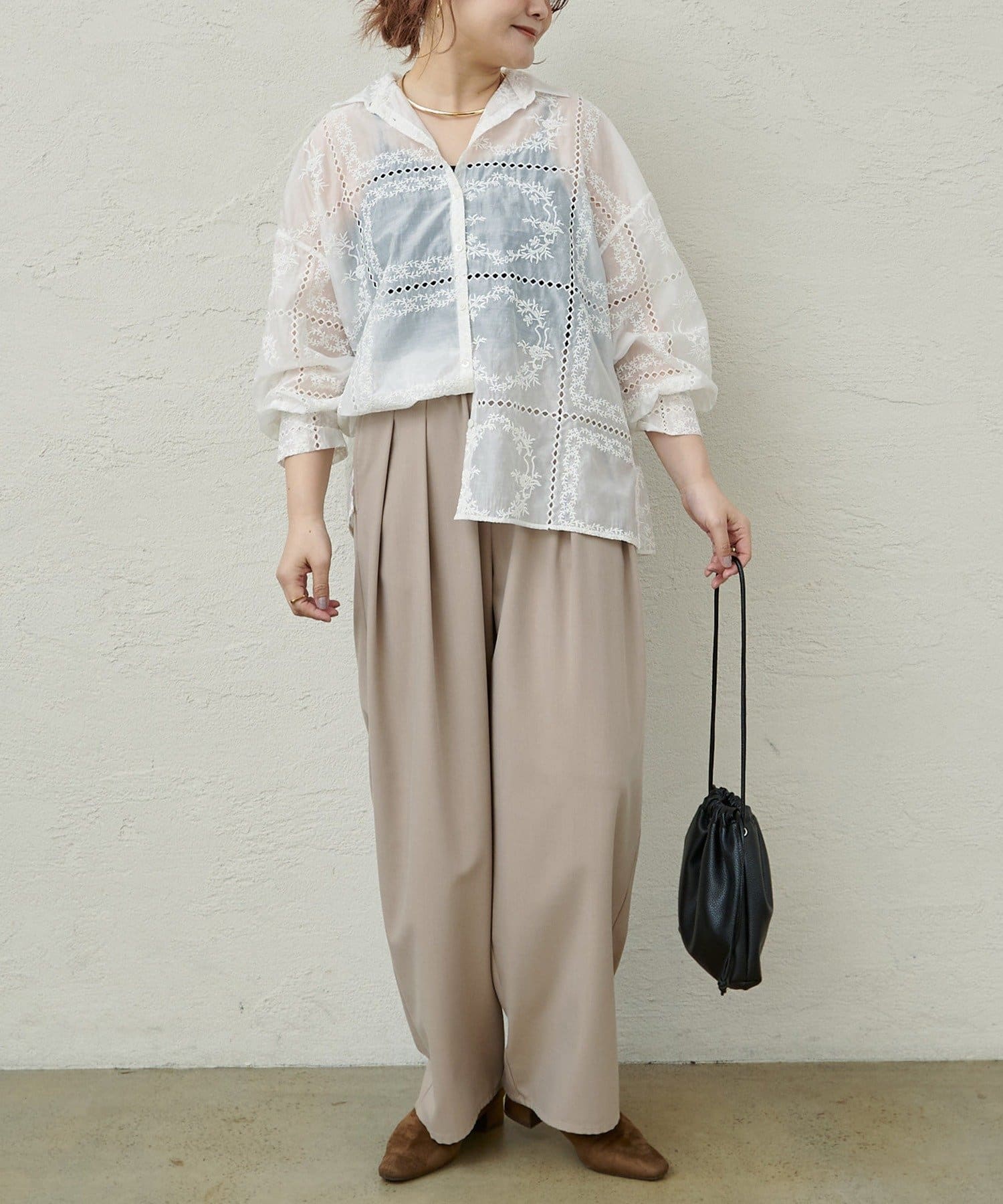 ◇シンプルな着こなしを品よく仕上げる、柔らかな刺繍ブラウス◇