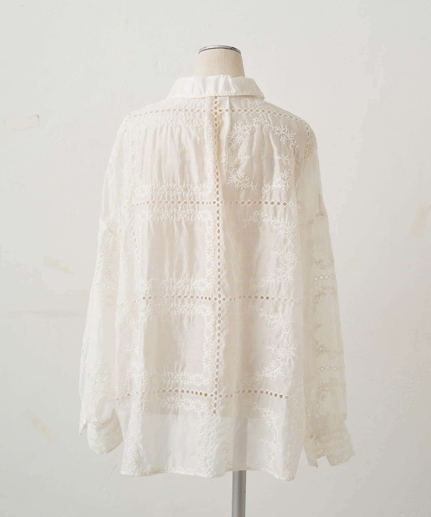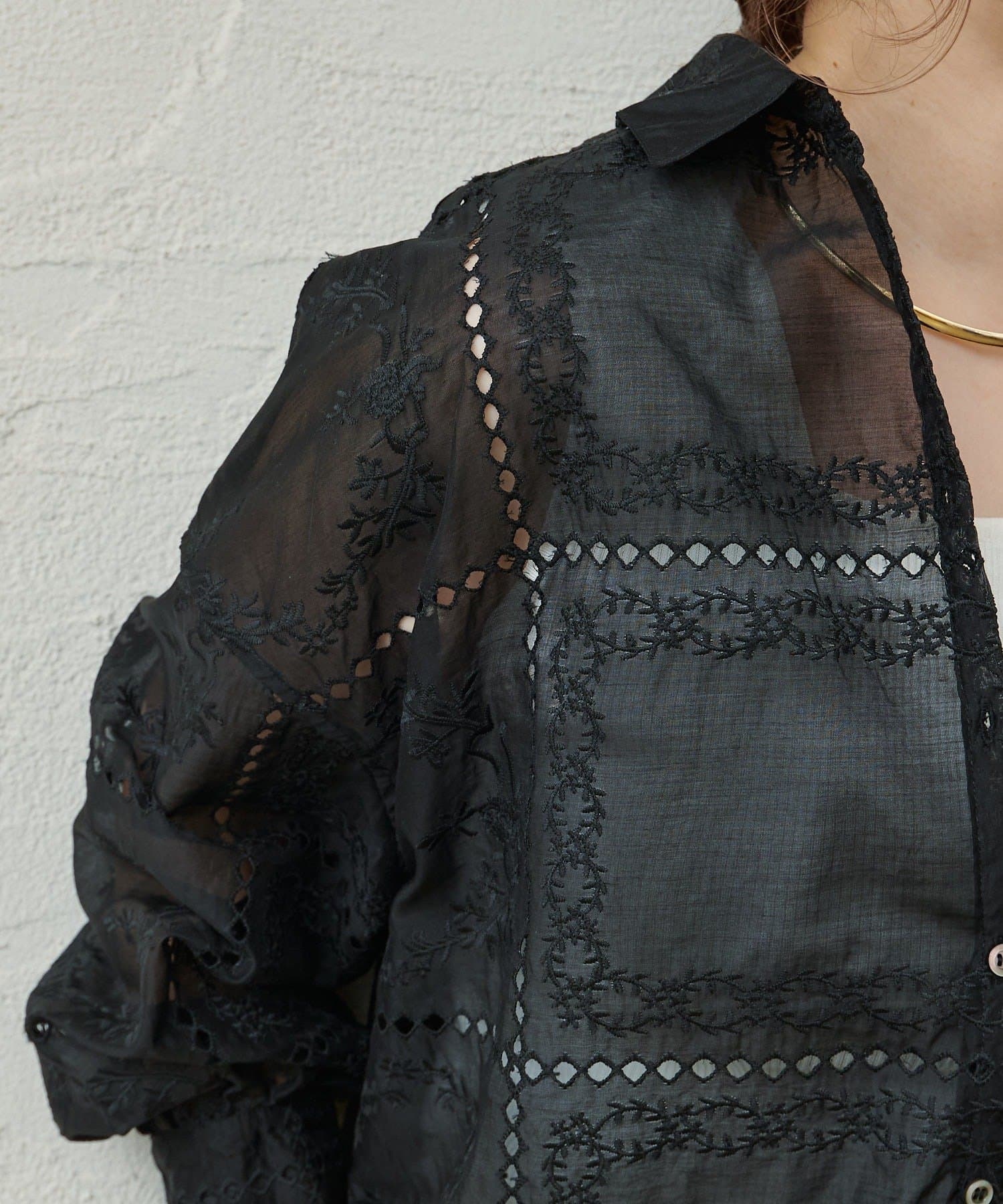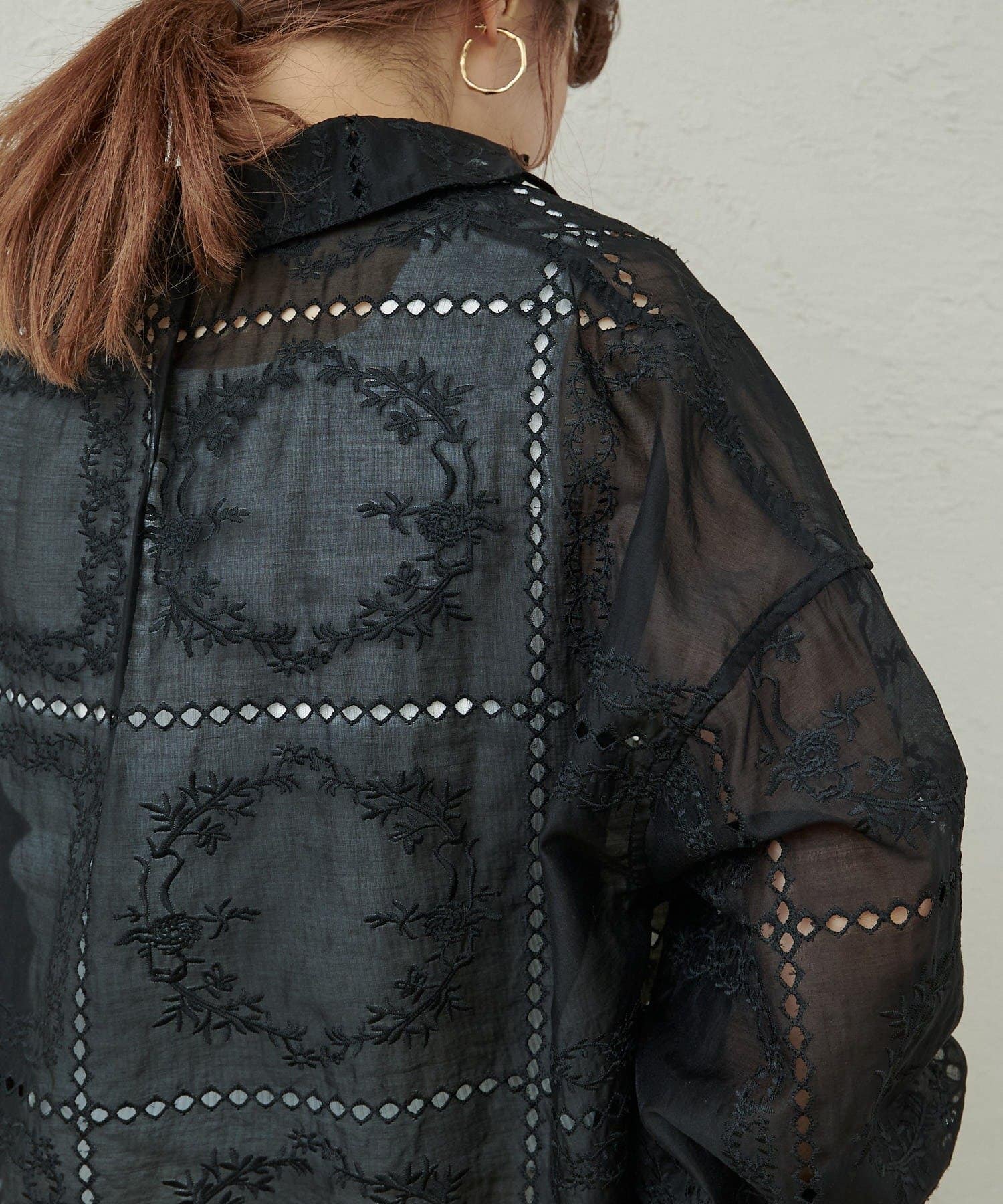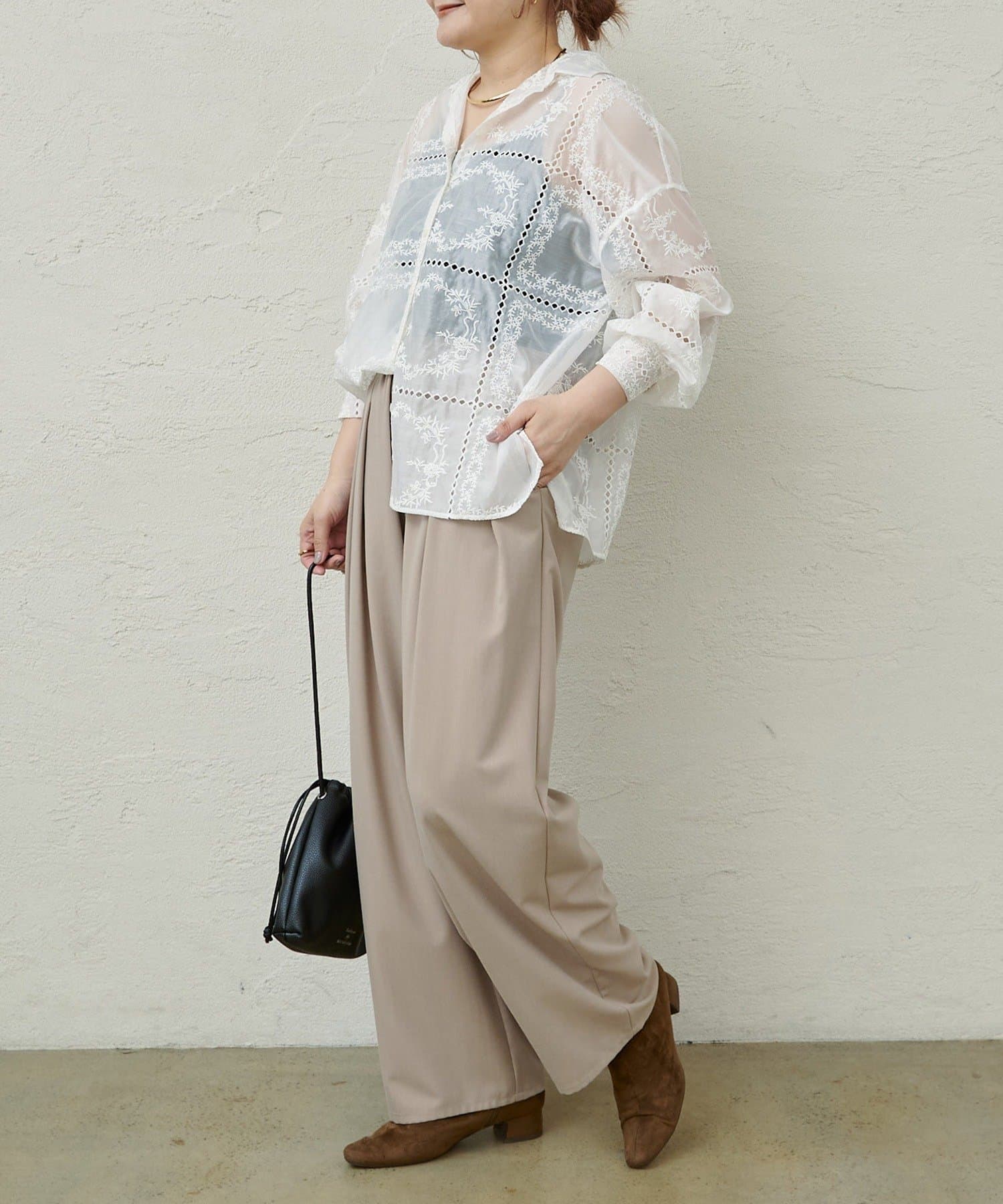 気温差のある時期に頼れる実用性が魅力の刺繍ブラウス。