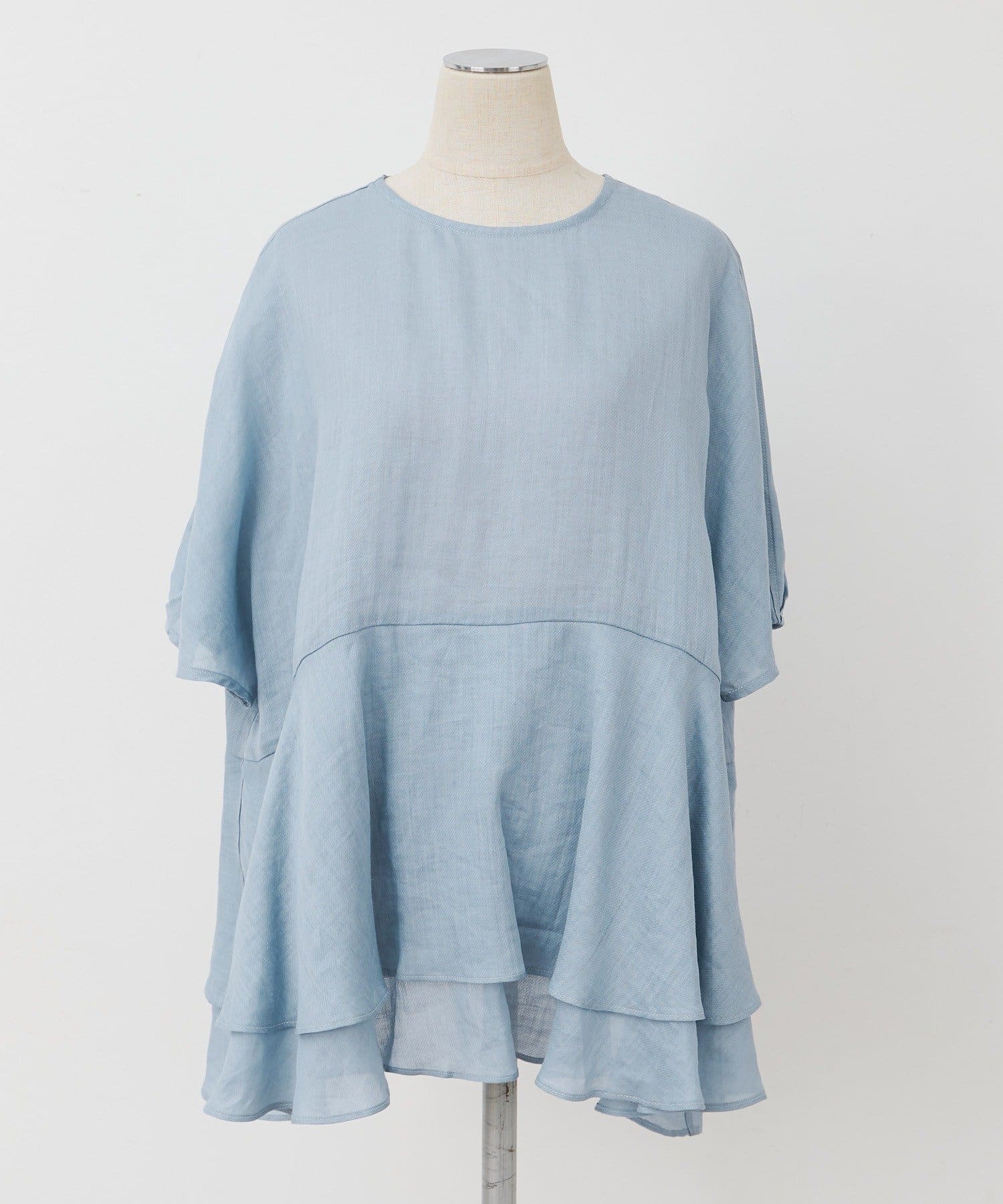 上品なシアー感と2段重ねのペプラムが軽やかな印象のブラウス。