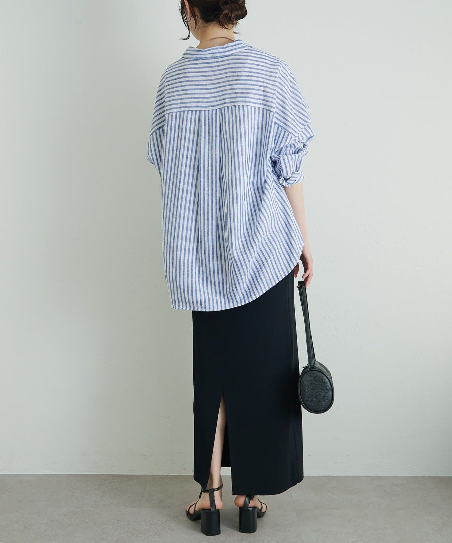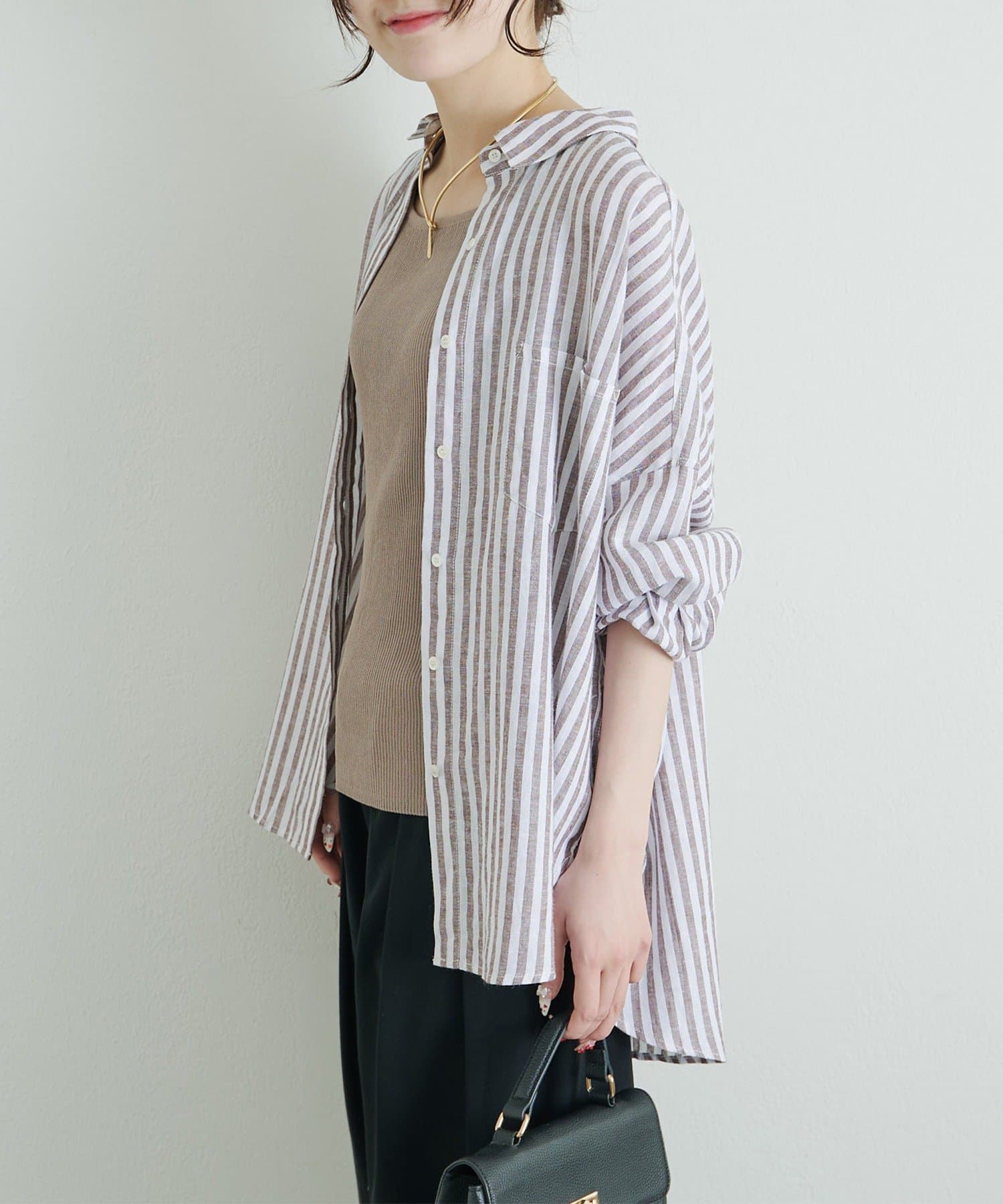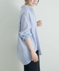 • PUAL CE CIN(ピュアルセシン) 麻レーヨンストライプシャツ