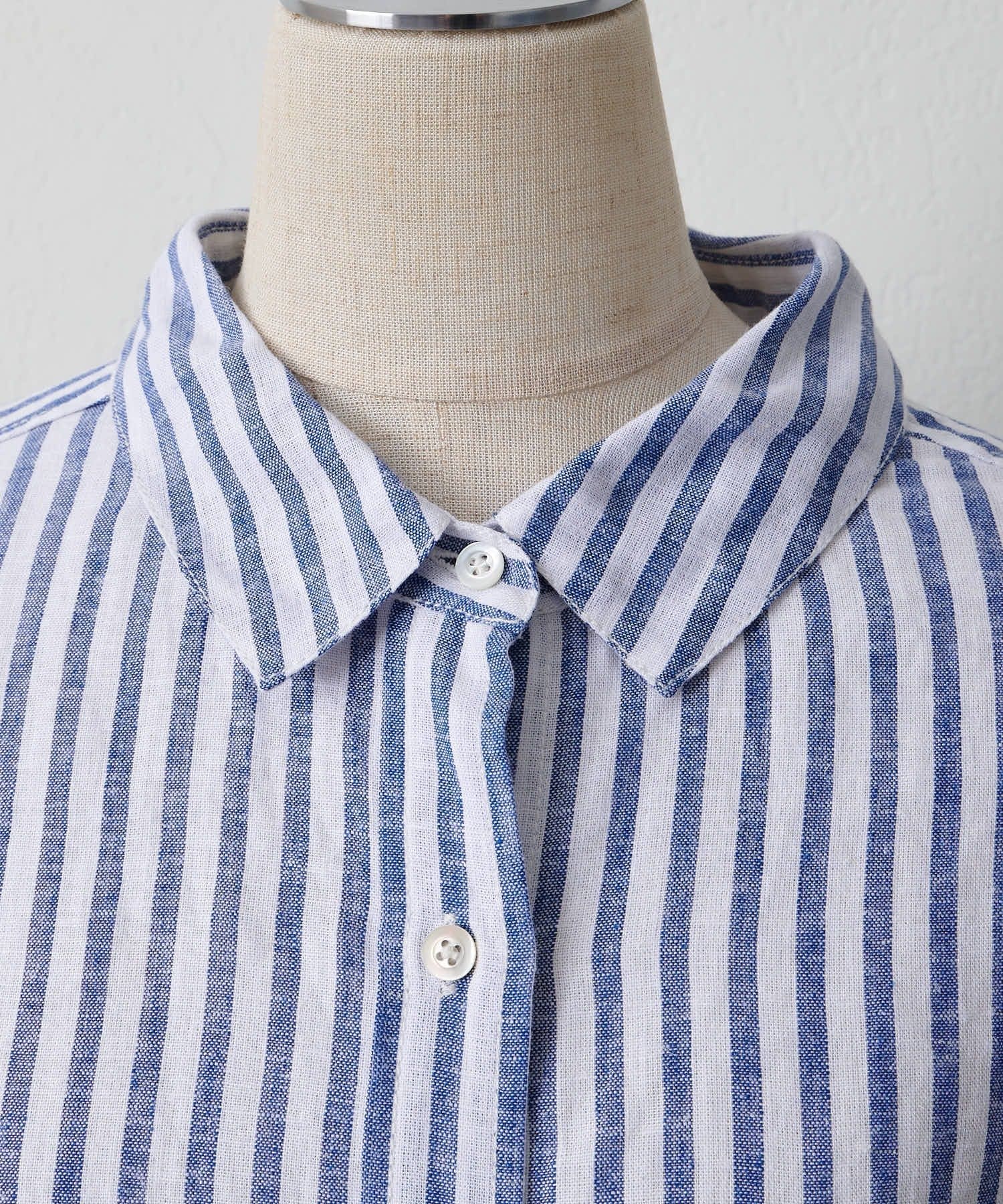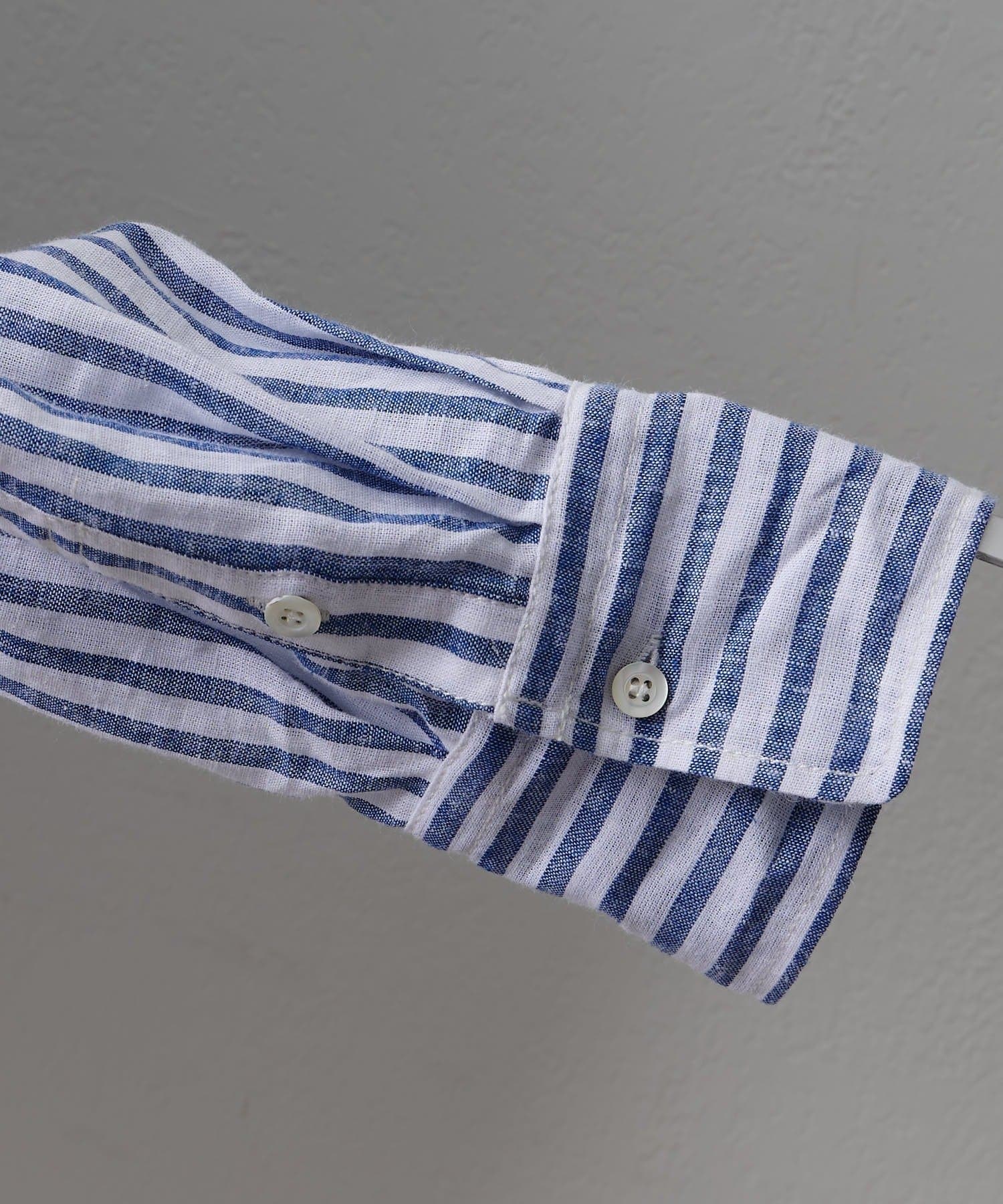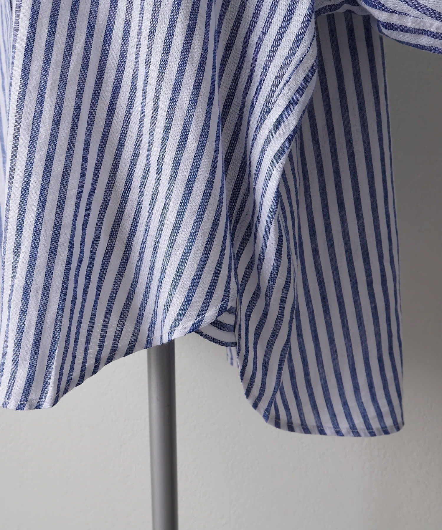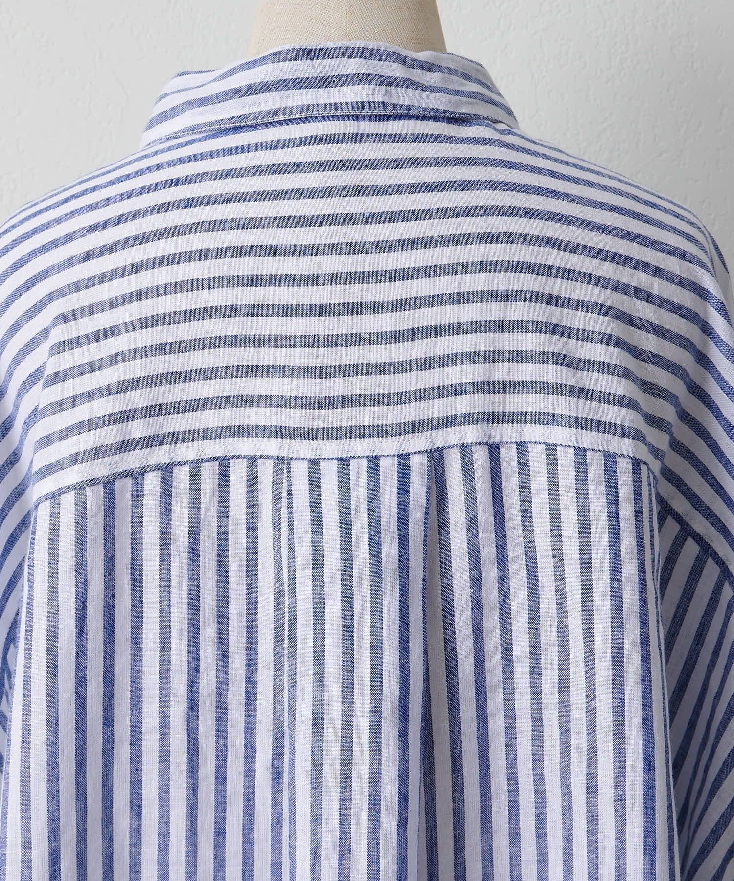麻レーヨンストライプシャツ