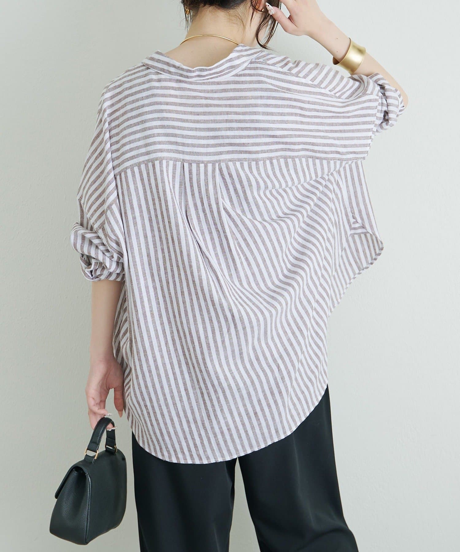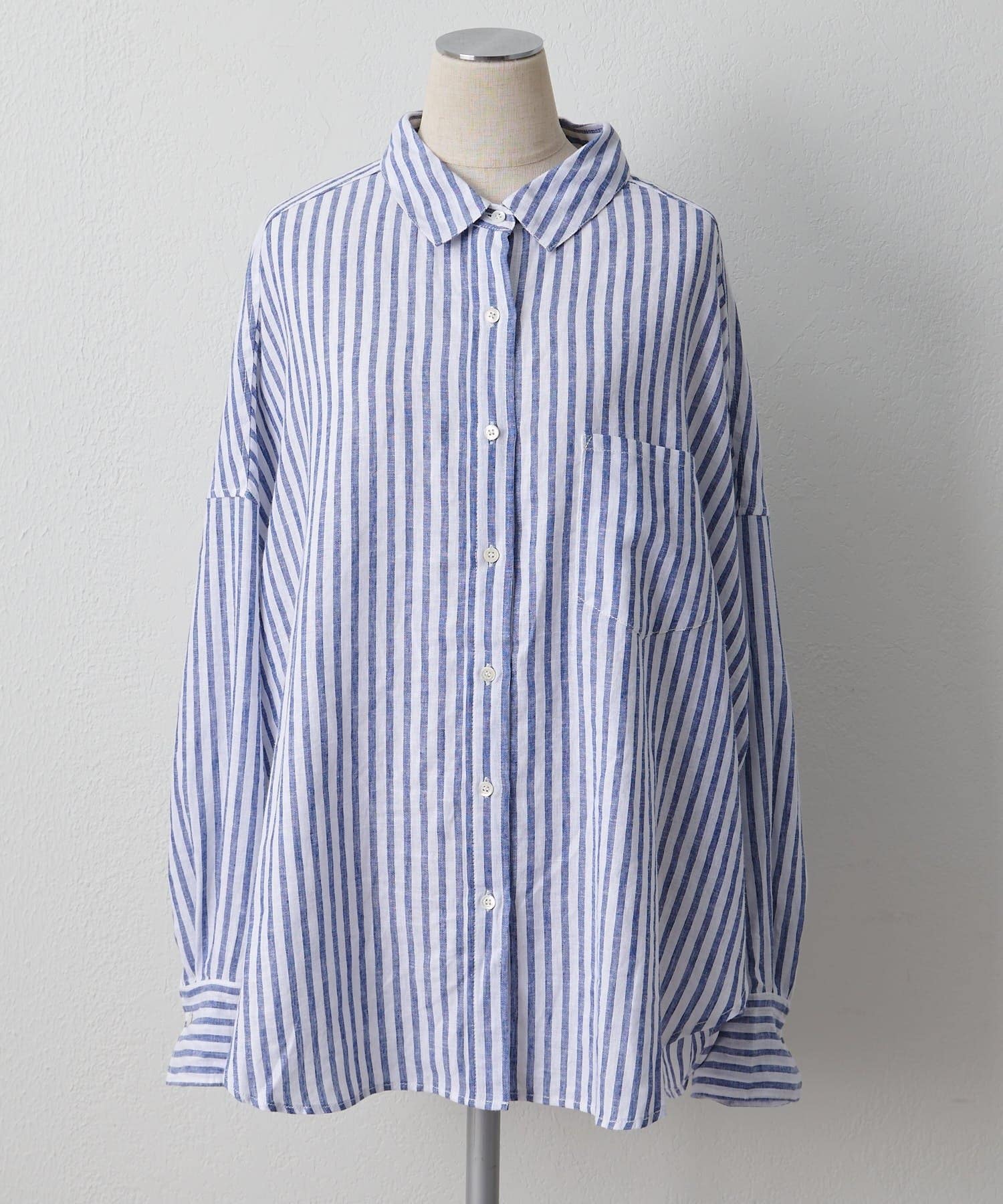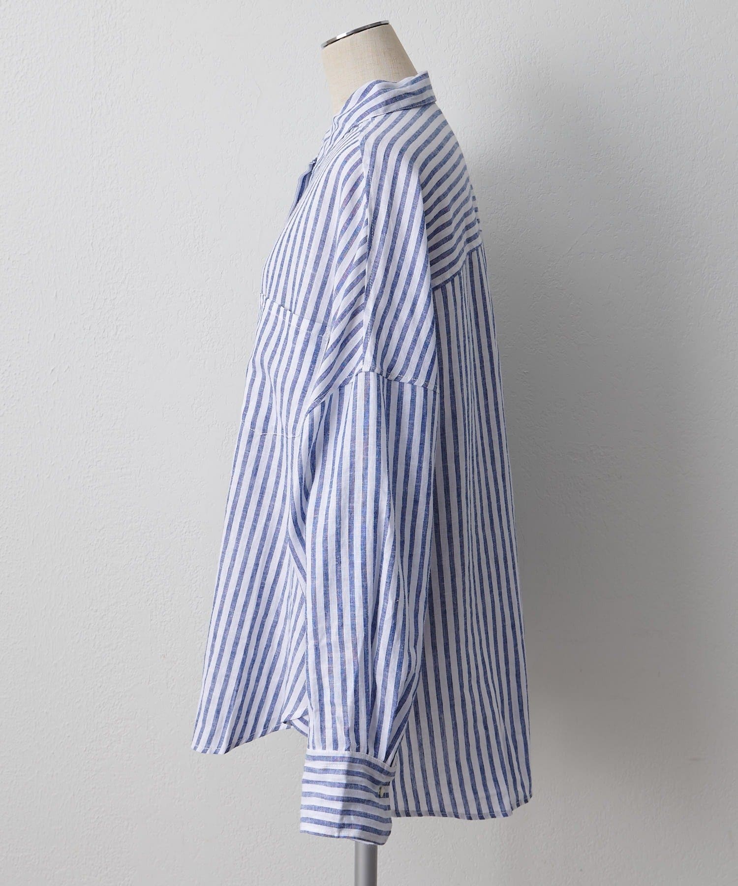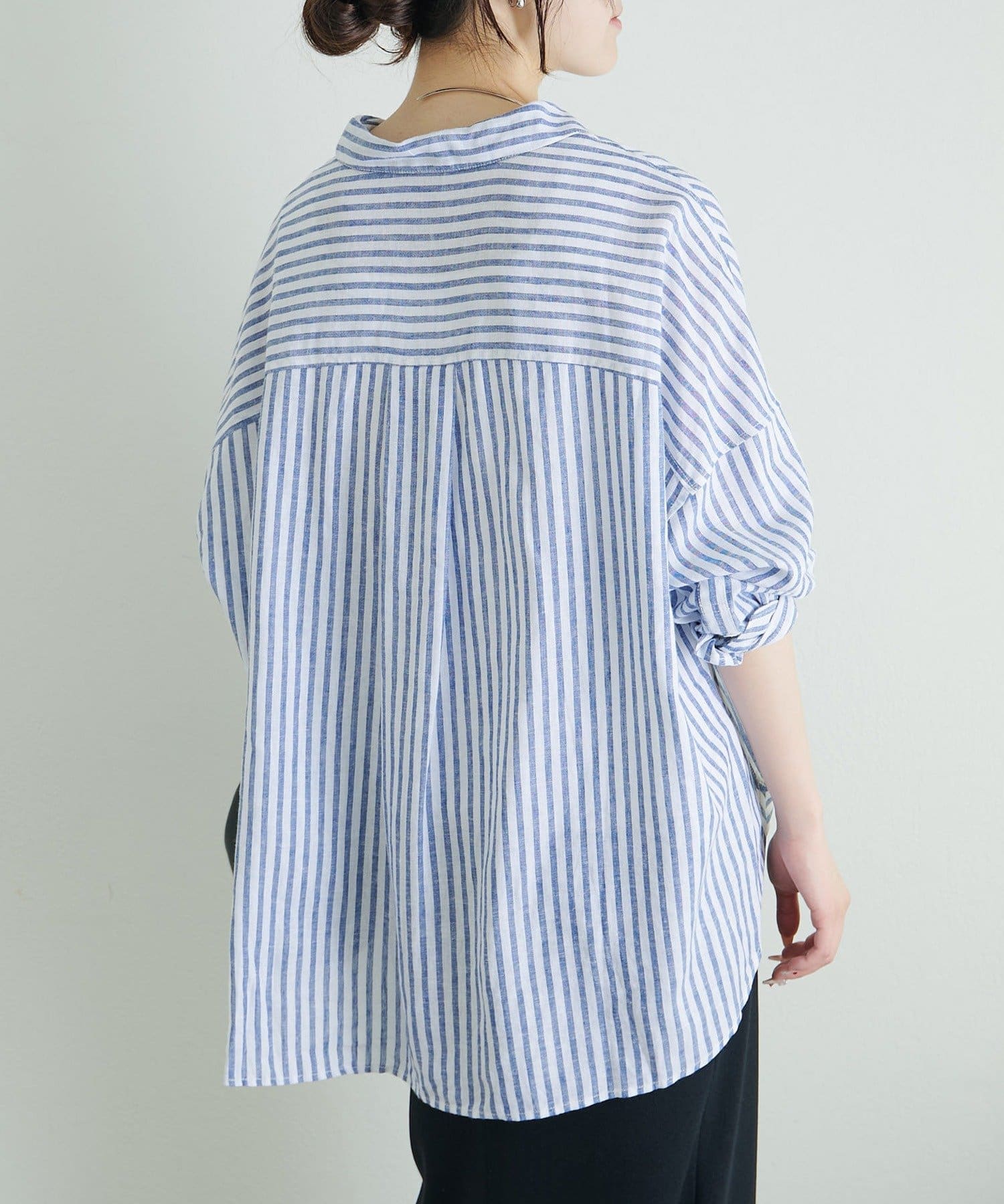 麻レーヨンストライプシャツ