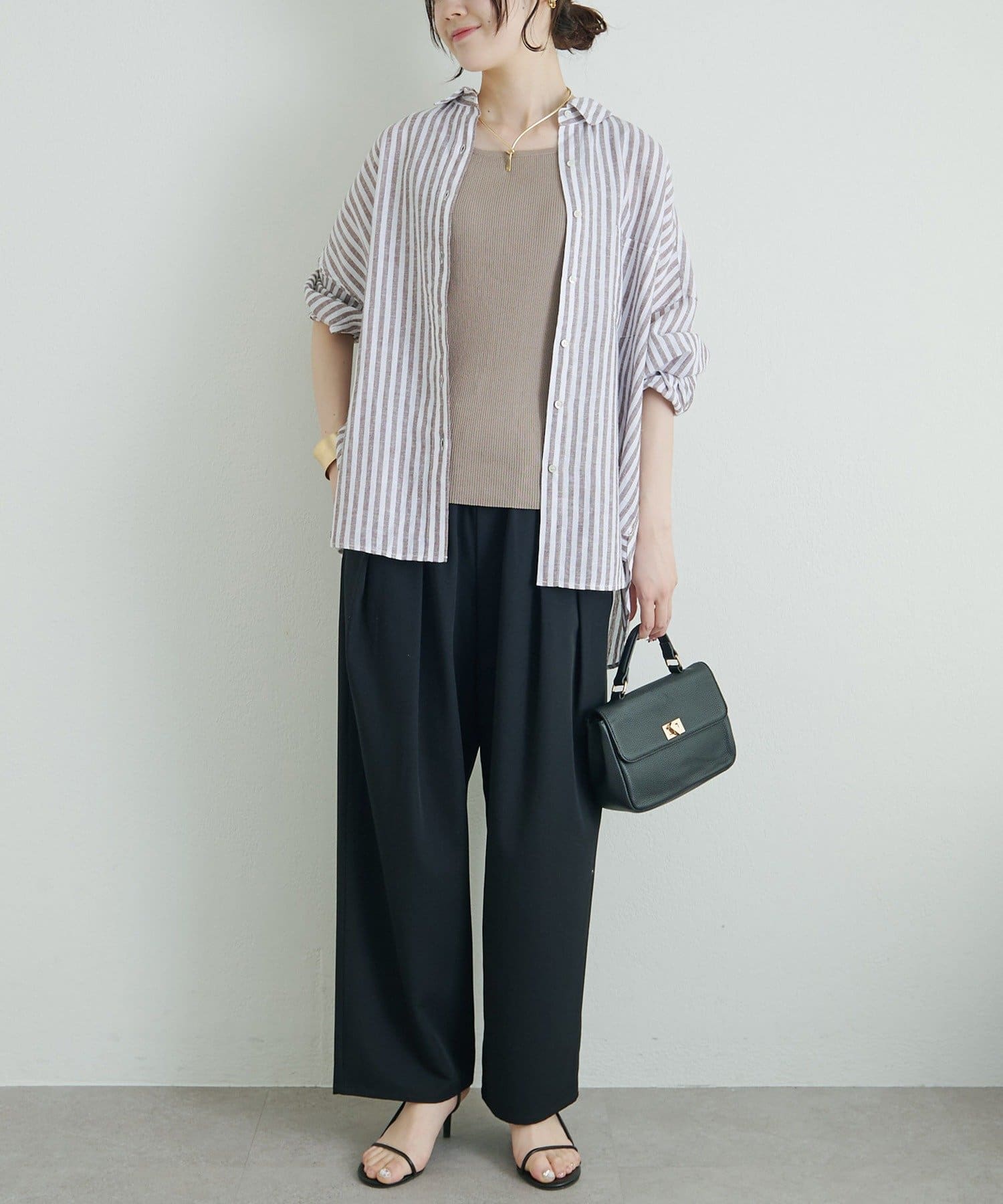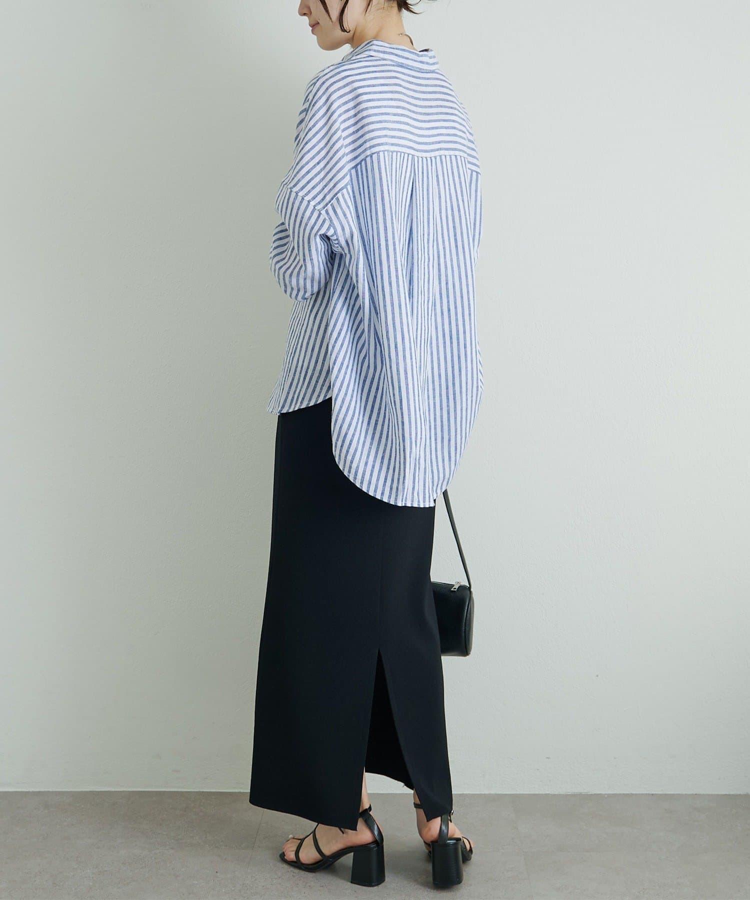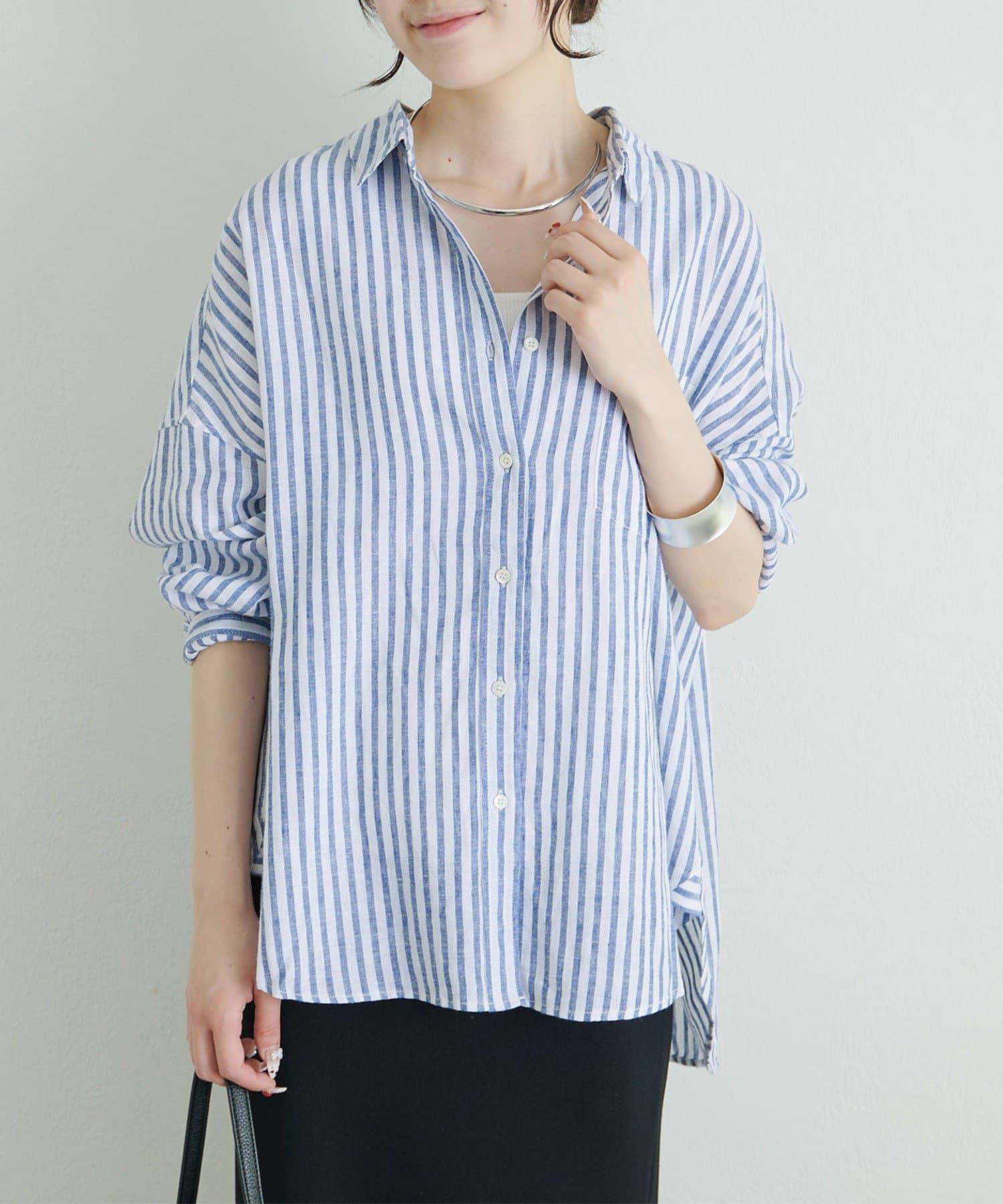 ボタンをしめて1枚で着用すれば、きちんと感のあるミニマルなクリーンルックに。