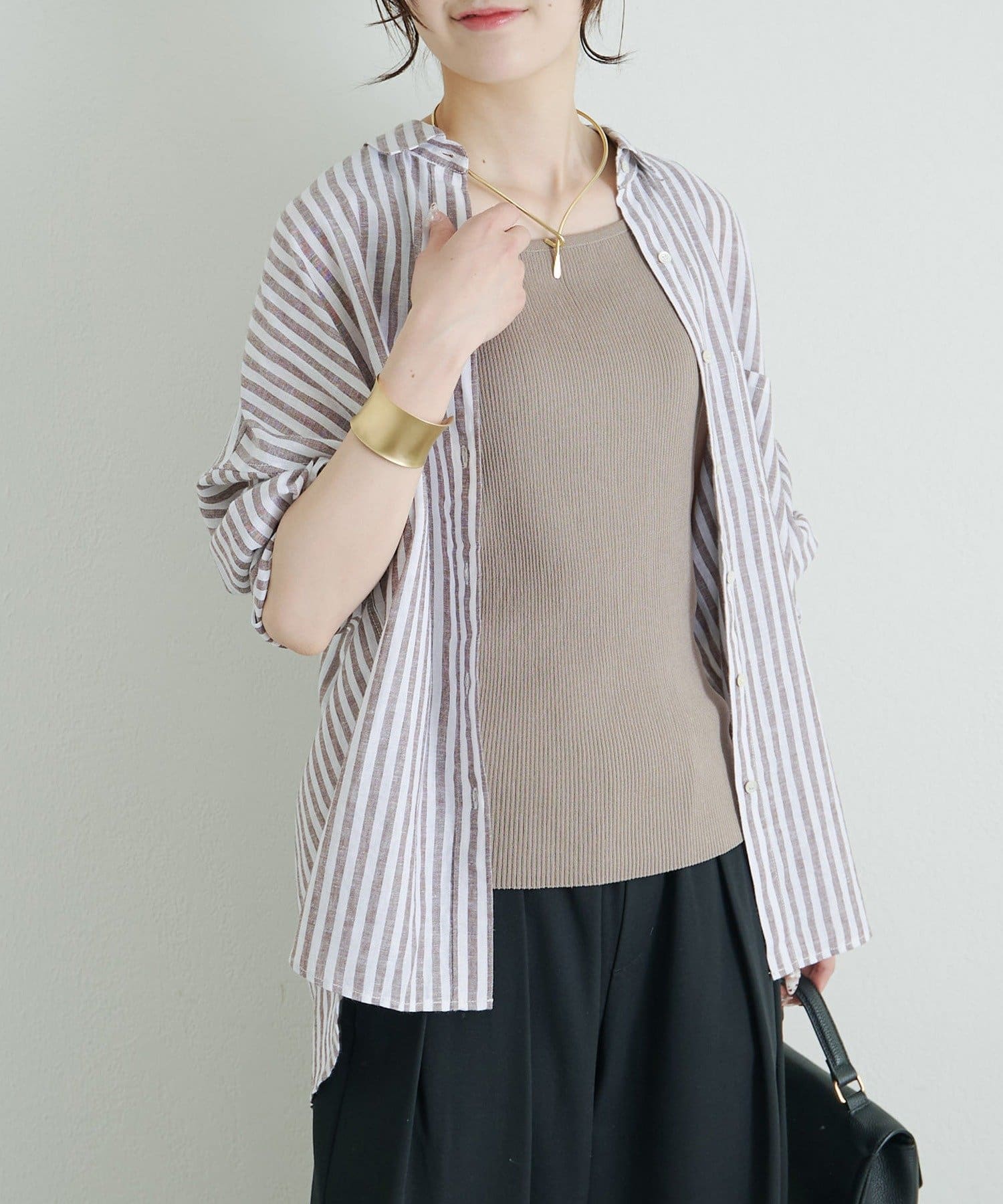 羽織として、Tシャツやタンクトップの上から着るのも程よい抜け感が出ておすすめです。
