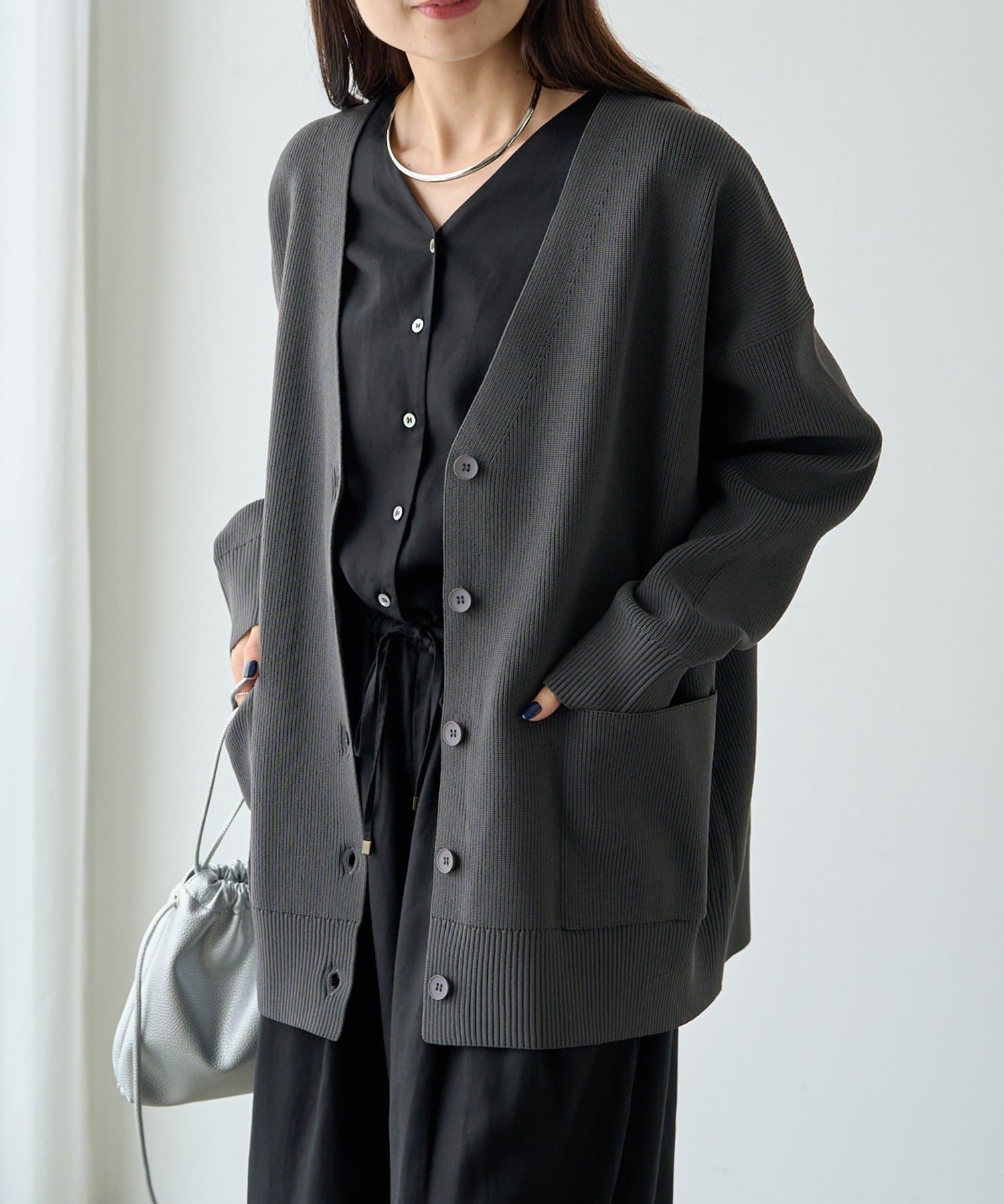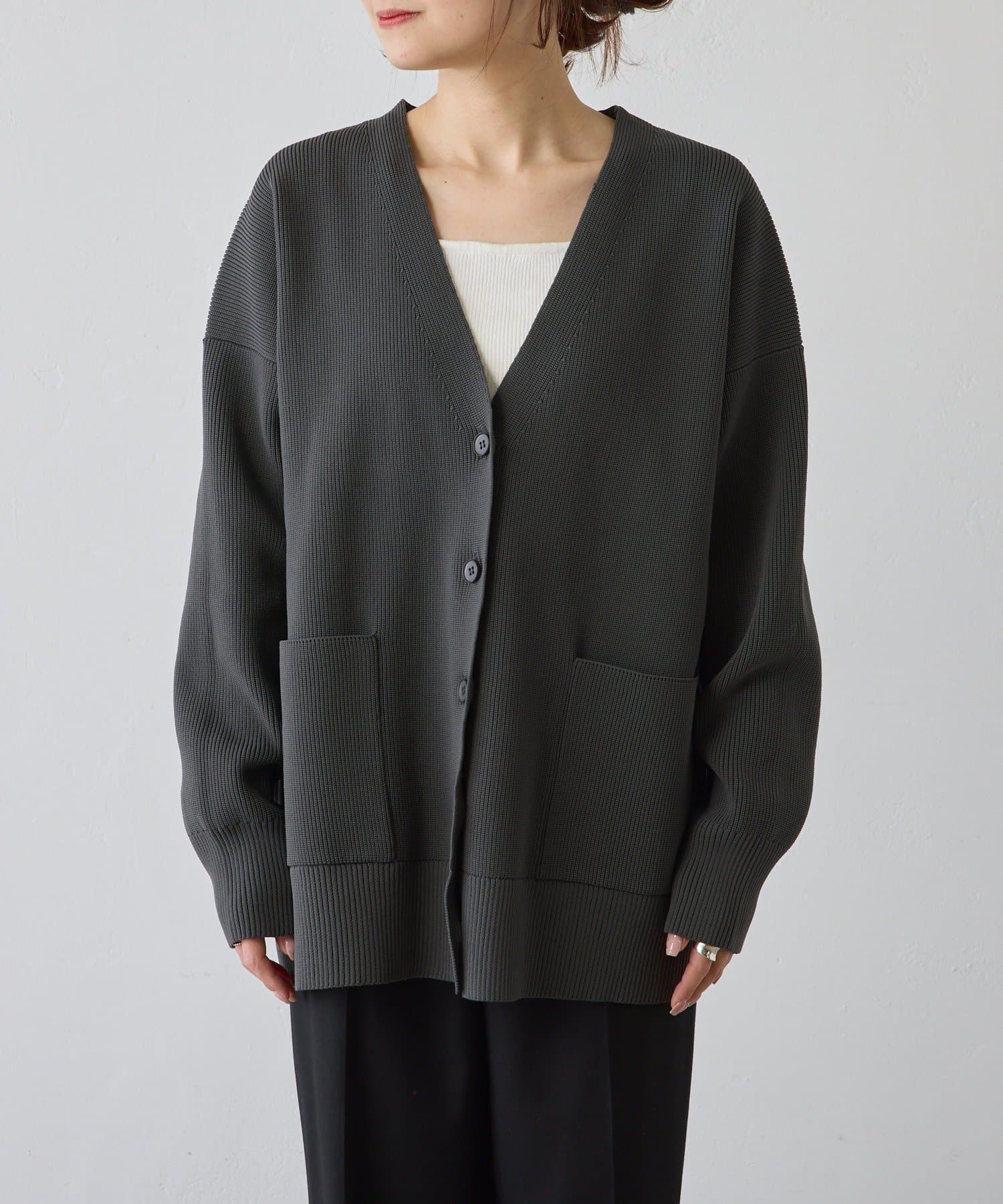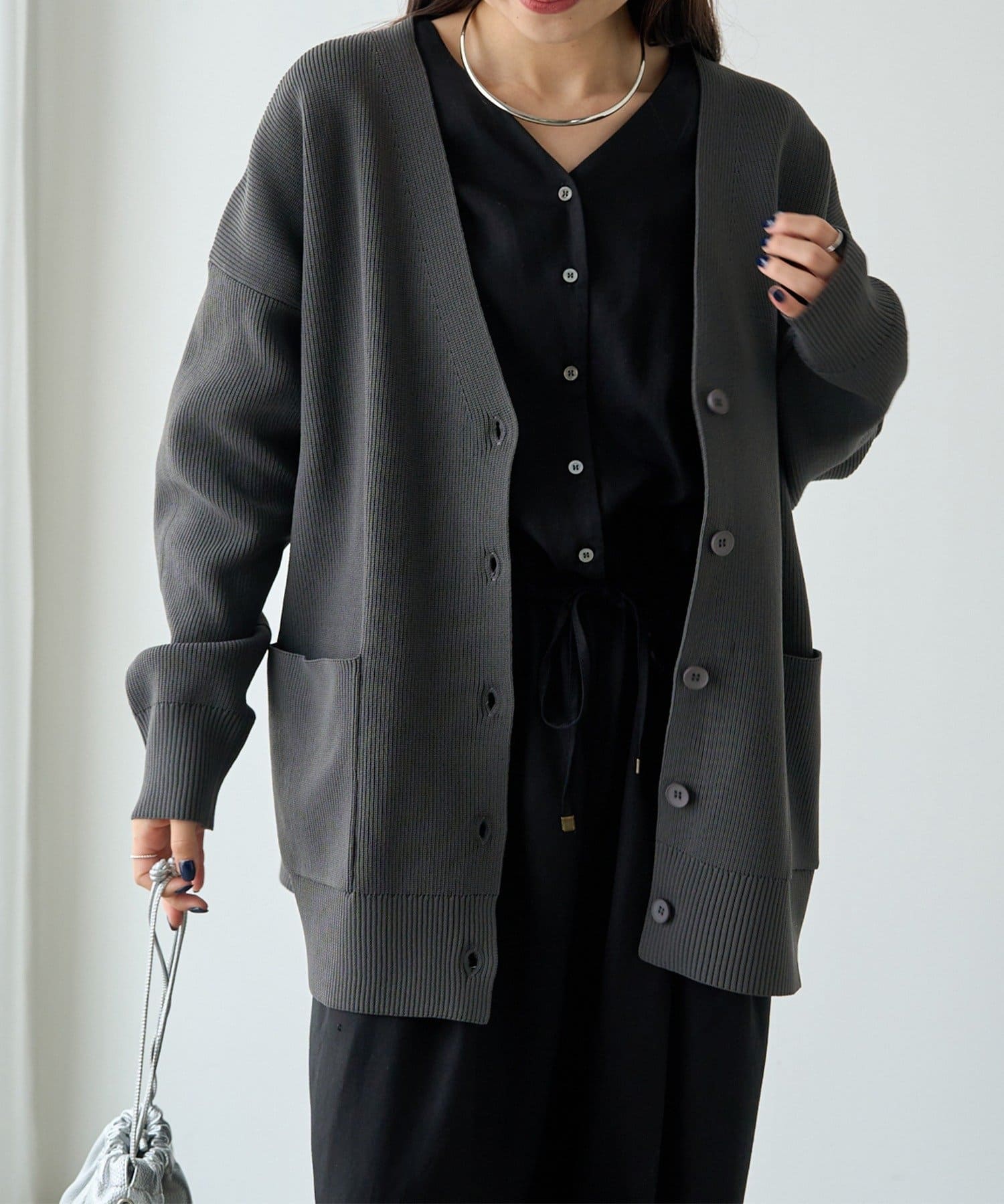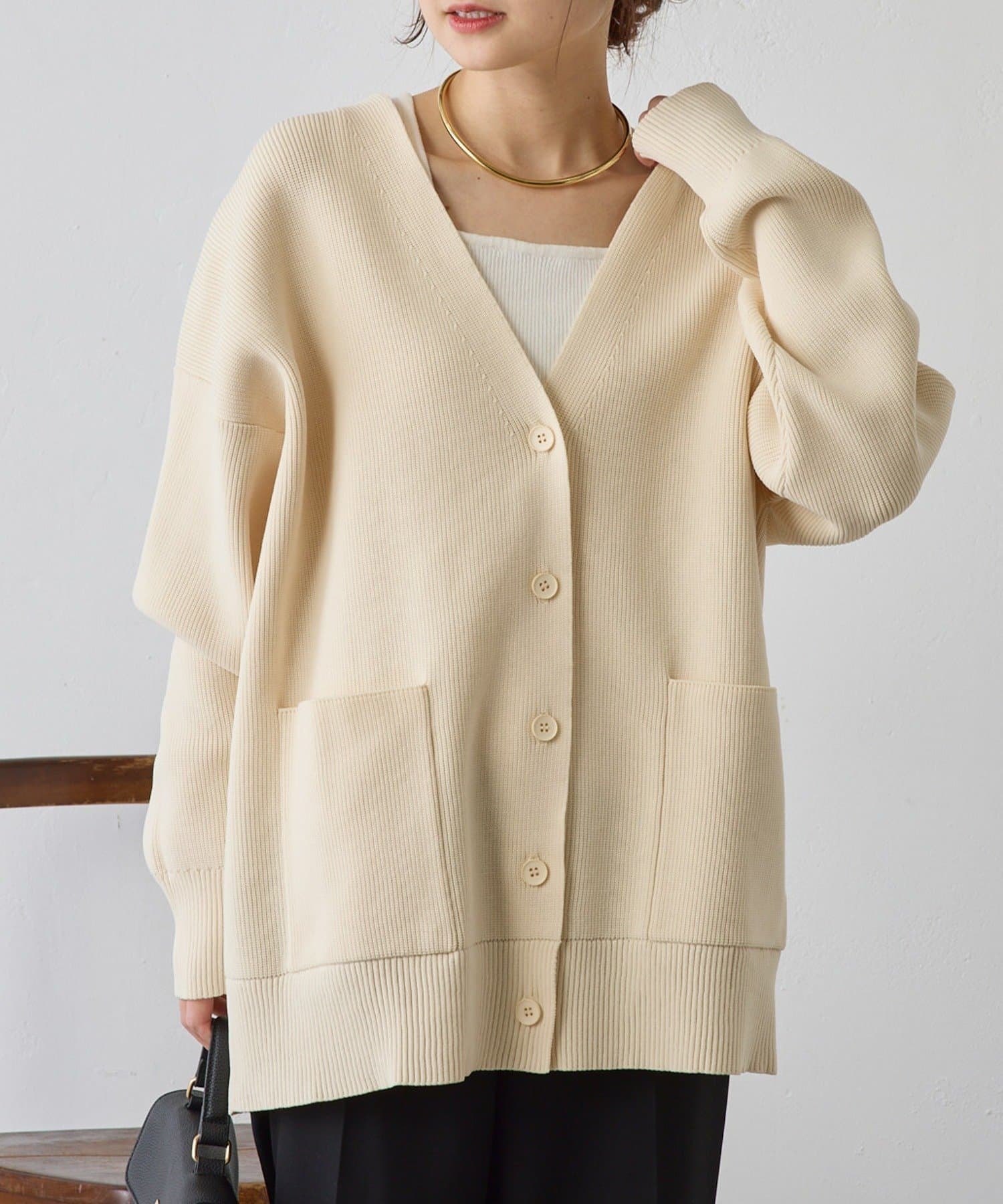 編み地にハリ感があり、フォルムがしっかりキープされるため着映えする主役級カーディガン。