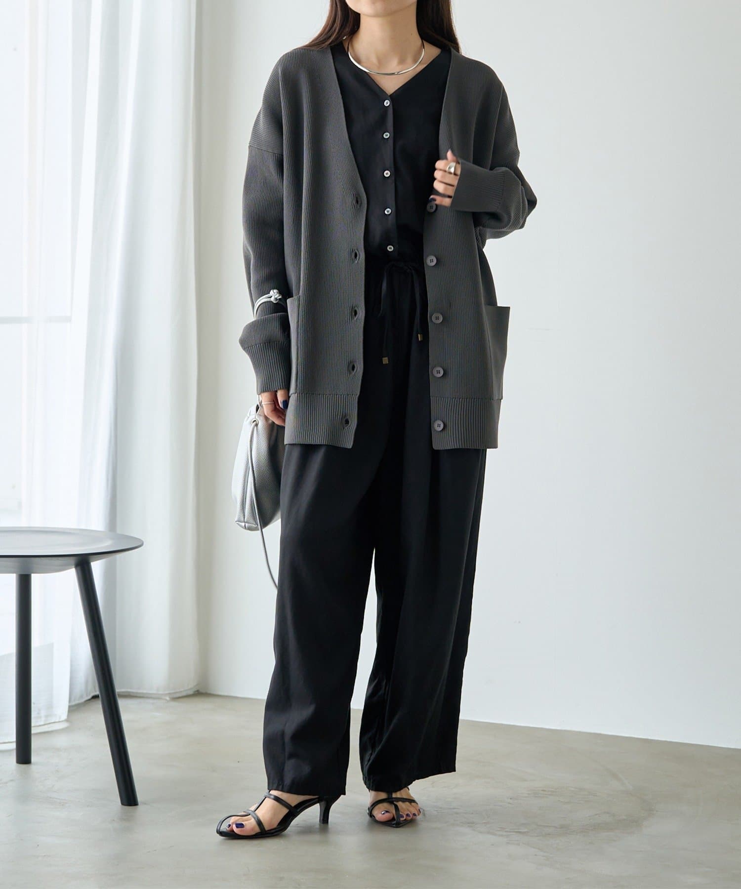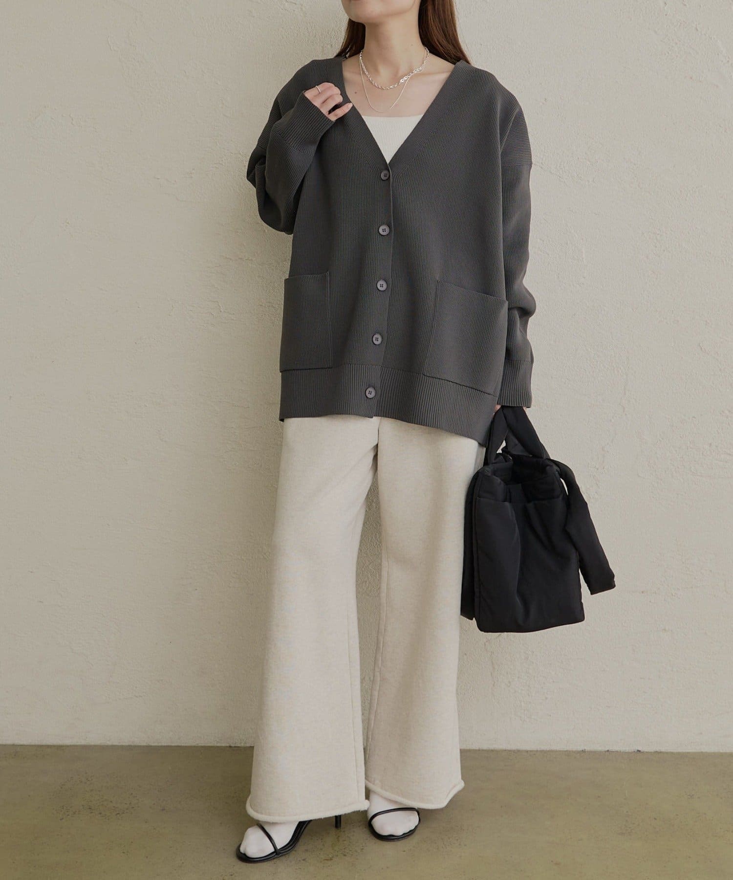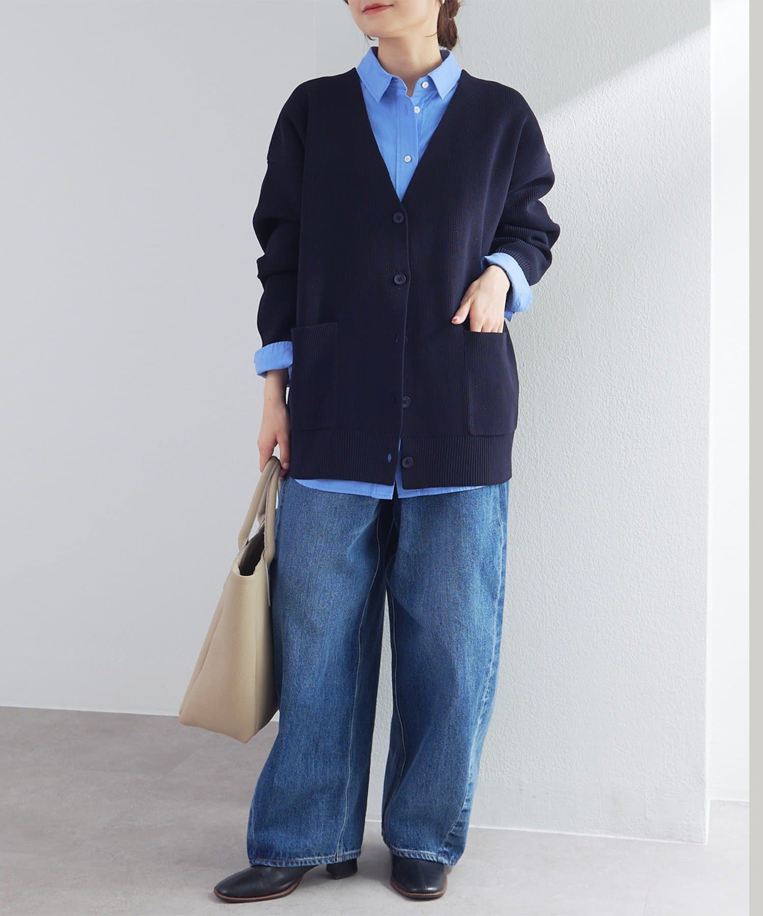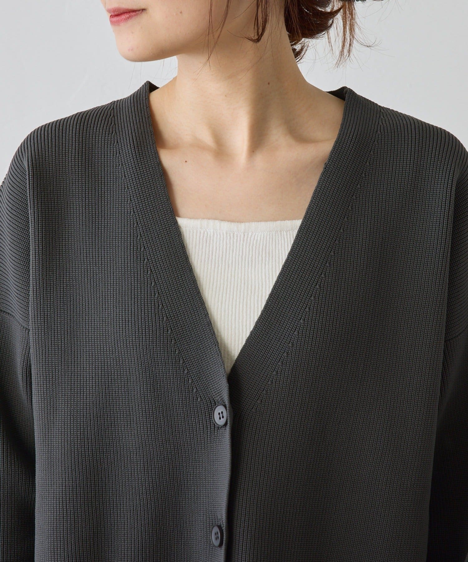 編み地にハリ感があり、フォルムがしっかりキープされるため着映えする主役級カーディガン。