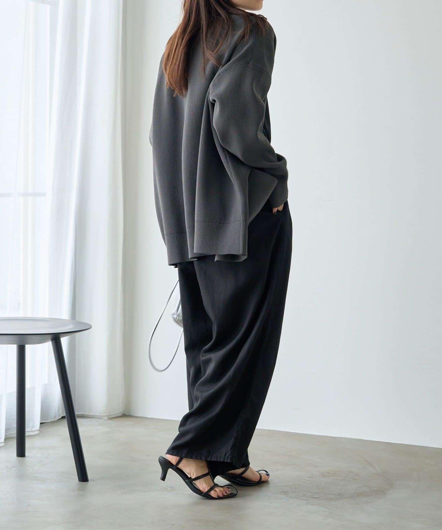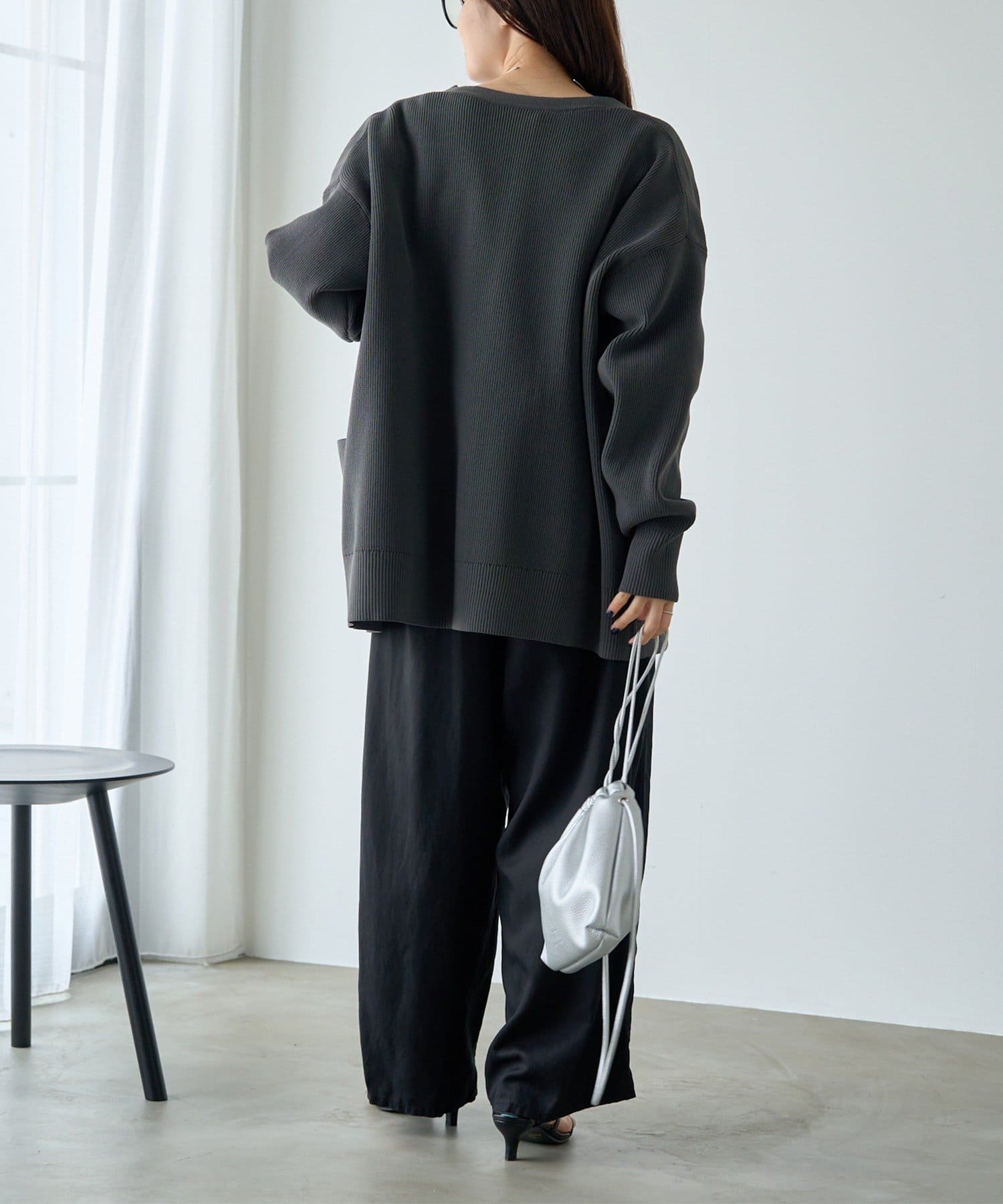ゆとりを持たせた身幅とざっくり開いたVネックデザインがリラックスムードを漂わせます。