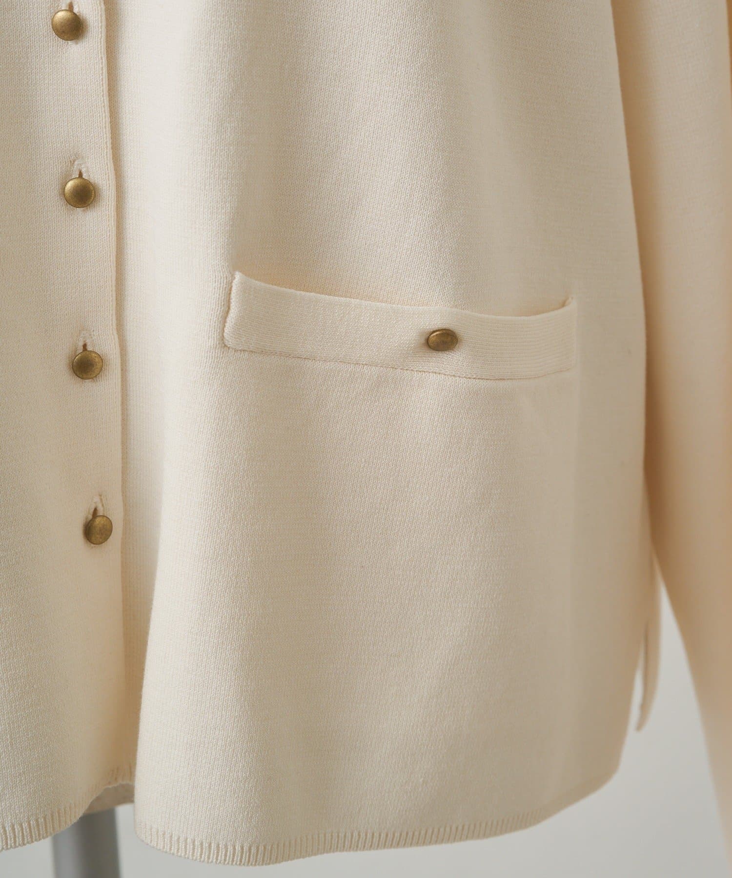 コロンと並んだ小ぶりのマットなゴールドボタンがアクセントになった