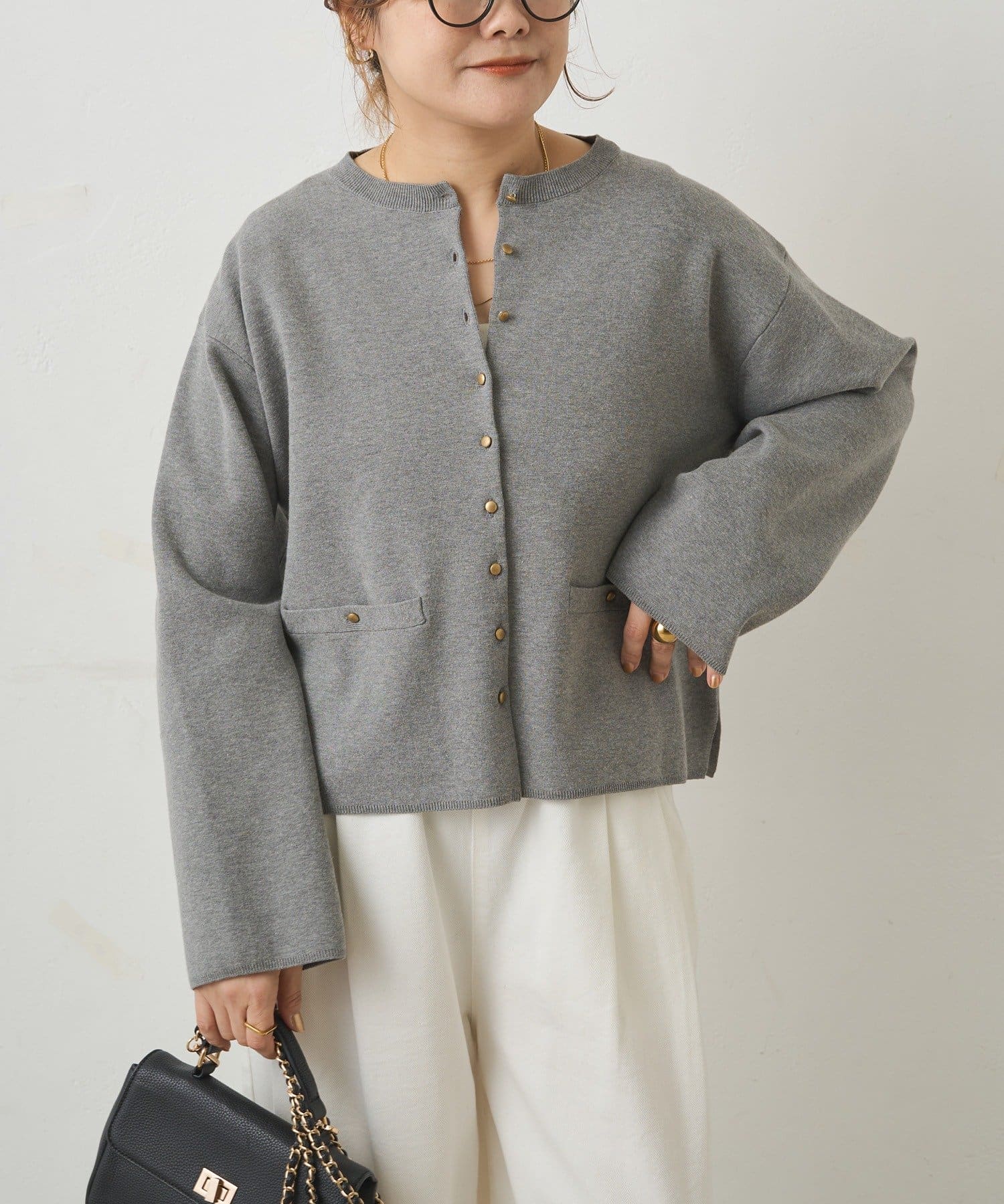 ◇ゴールドボタンがアクセントになった綺麗見えカーディガン◇