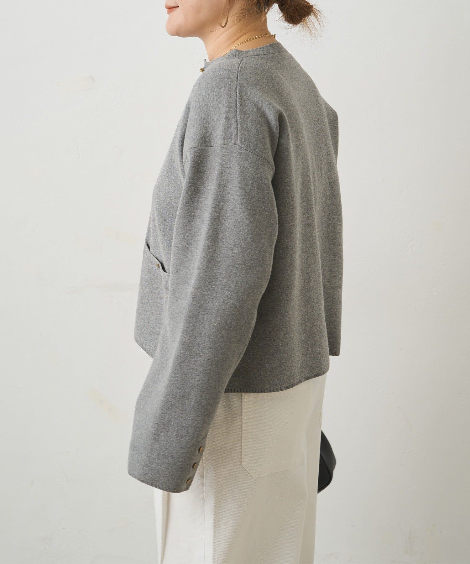 フラットな表面感なのでニット特有のチクチク感もなく、ストレスフリーです。