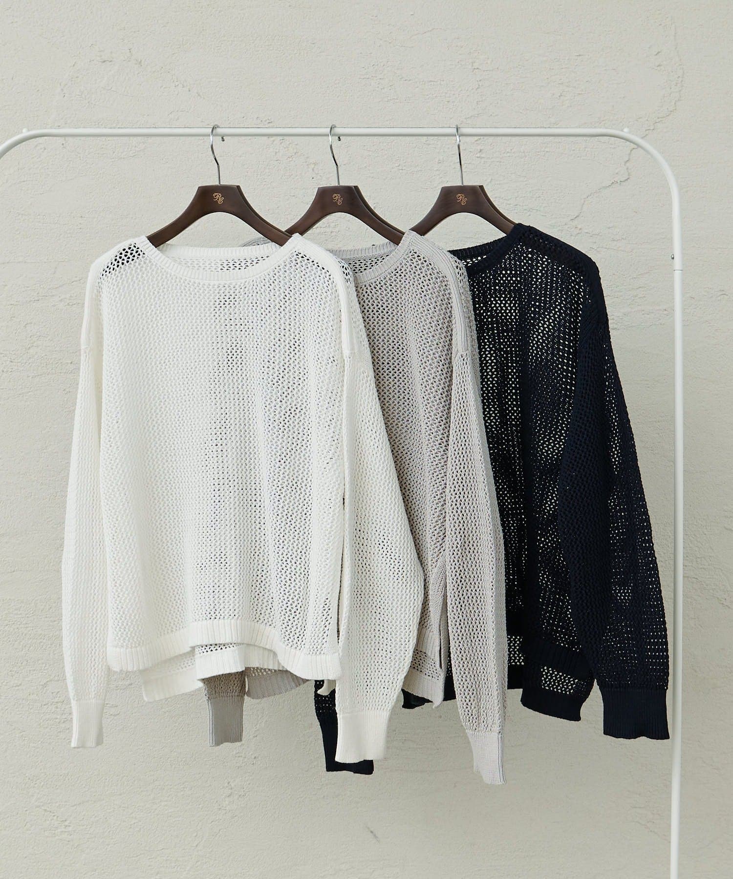 コットンベースでドライタッチな肌触りの良いメッシュ編みの春ニット。