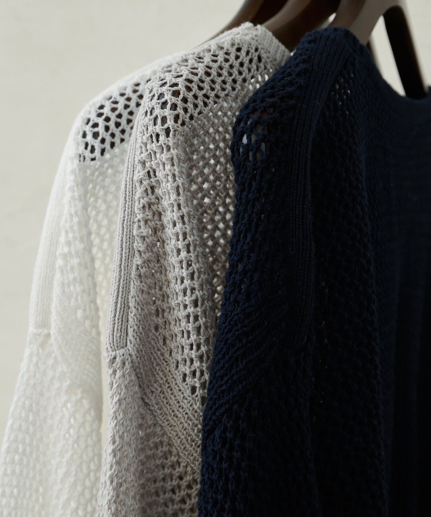 コットンベースでドライタッチな肌触りの良いメッシュ編みの春ニット。