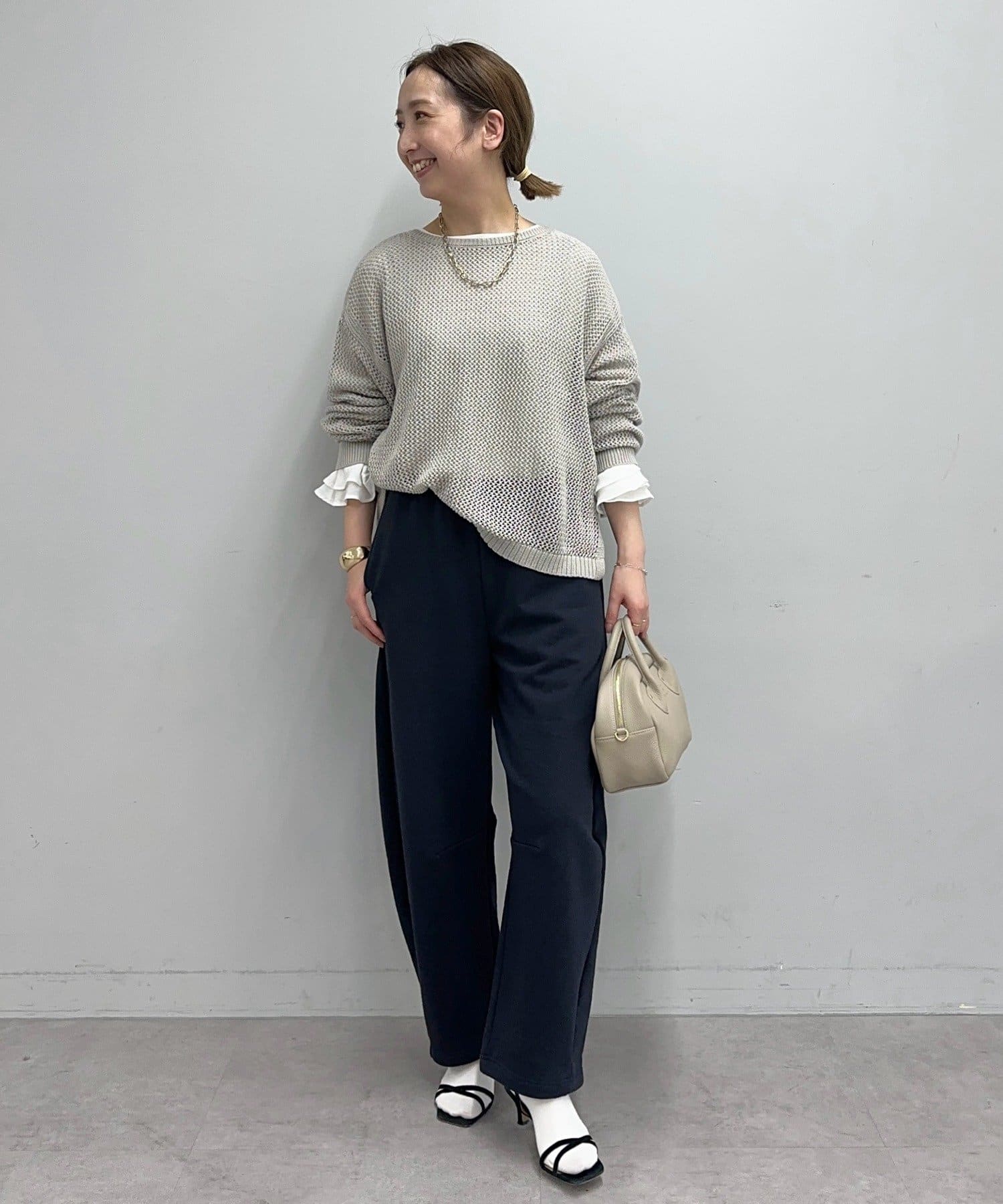 大き過ぎない編み目によるほど良いシアー感は着るだけで大人な抜け感を演出。
