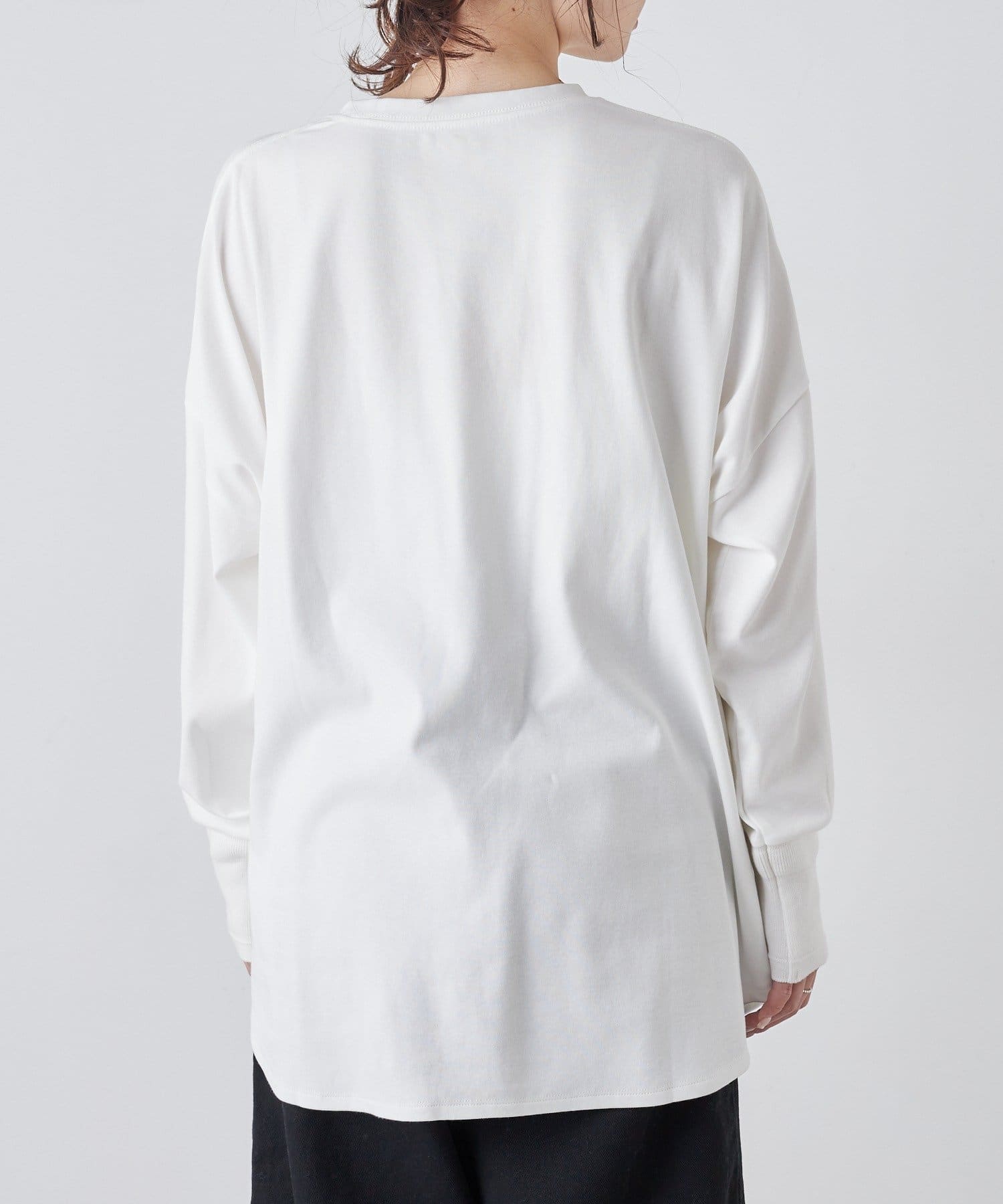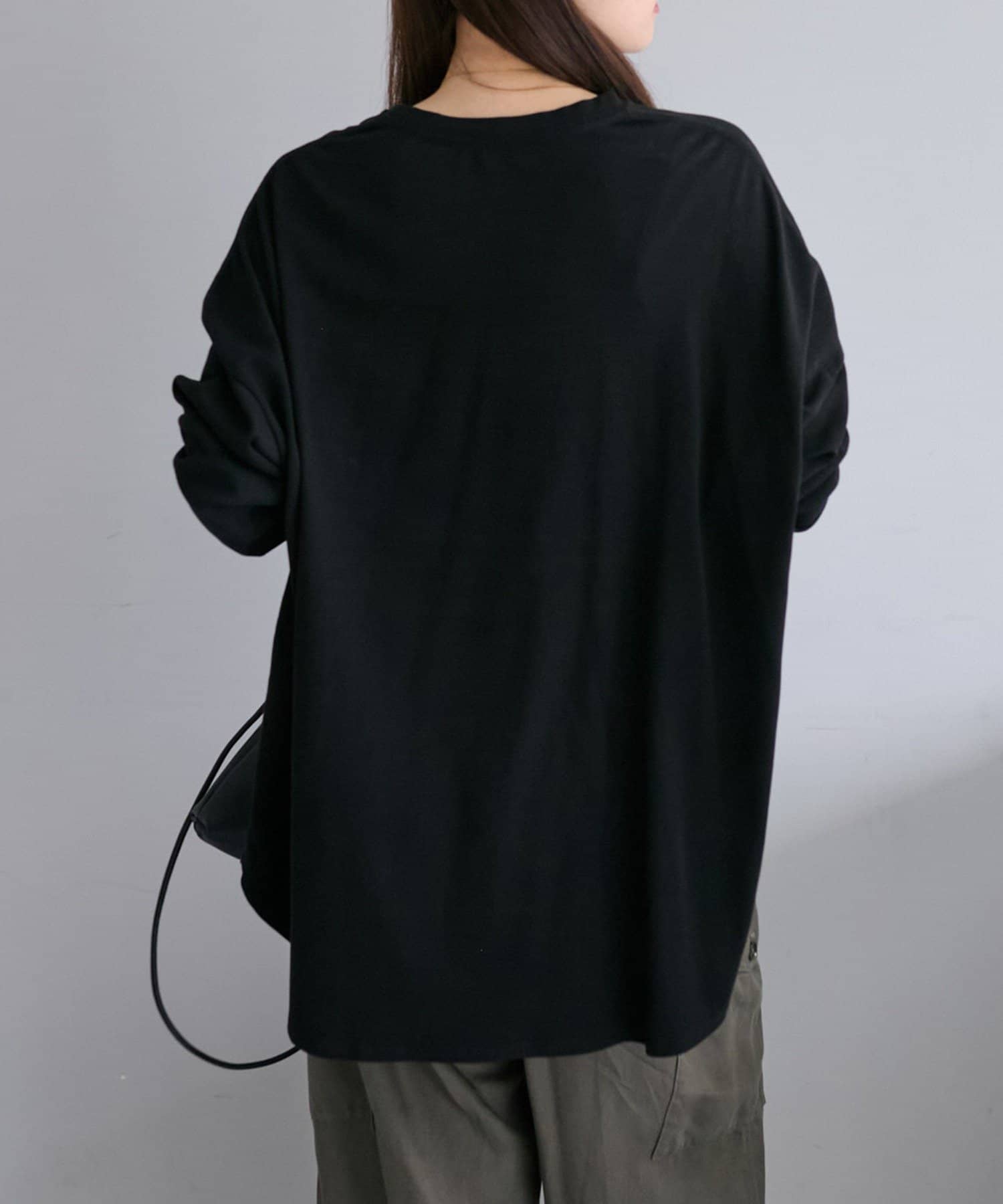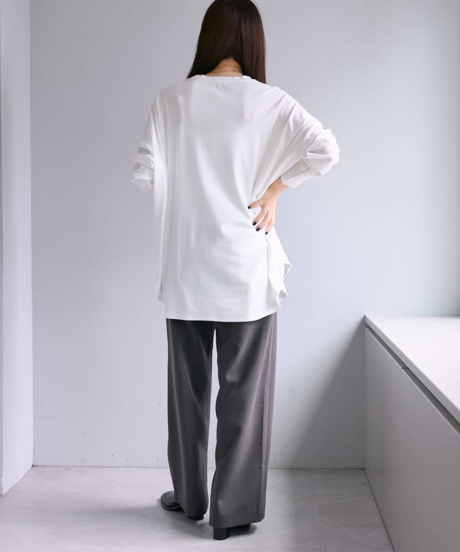 着用感:広めな身幅のオーバーサイズでラフに着られ、滑らかな触り心地で長時間着用しても快適に過ごせます。
