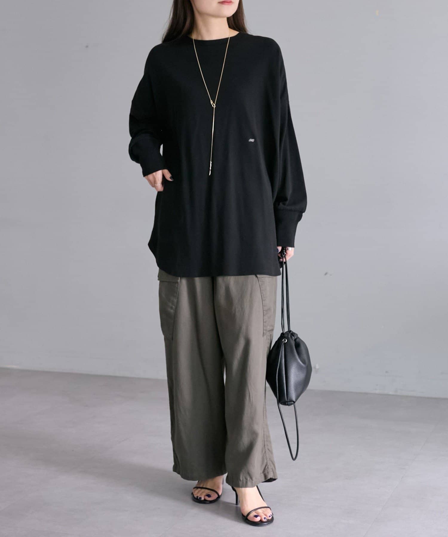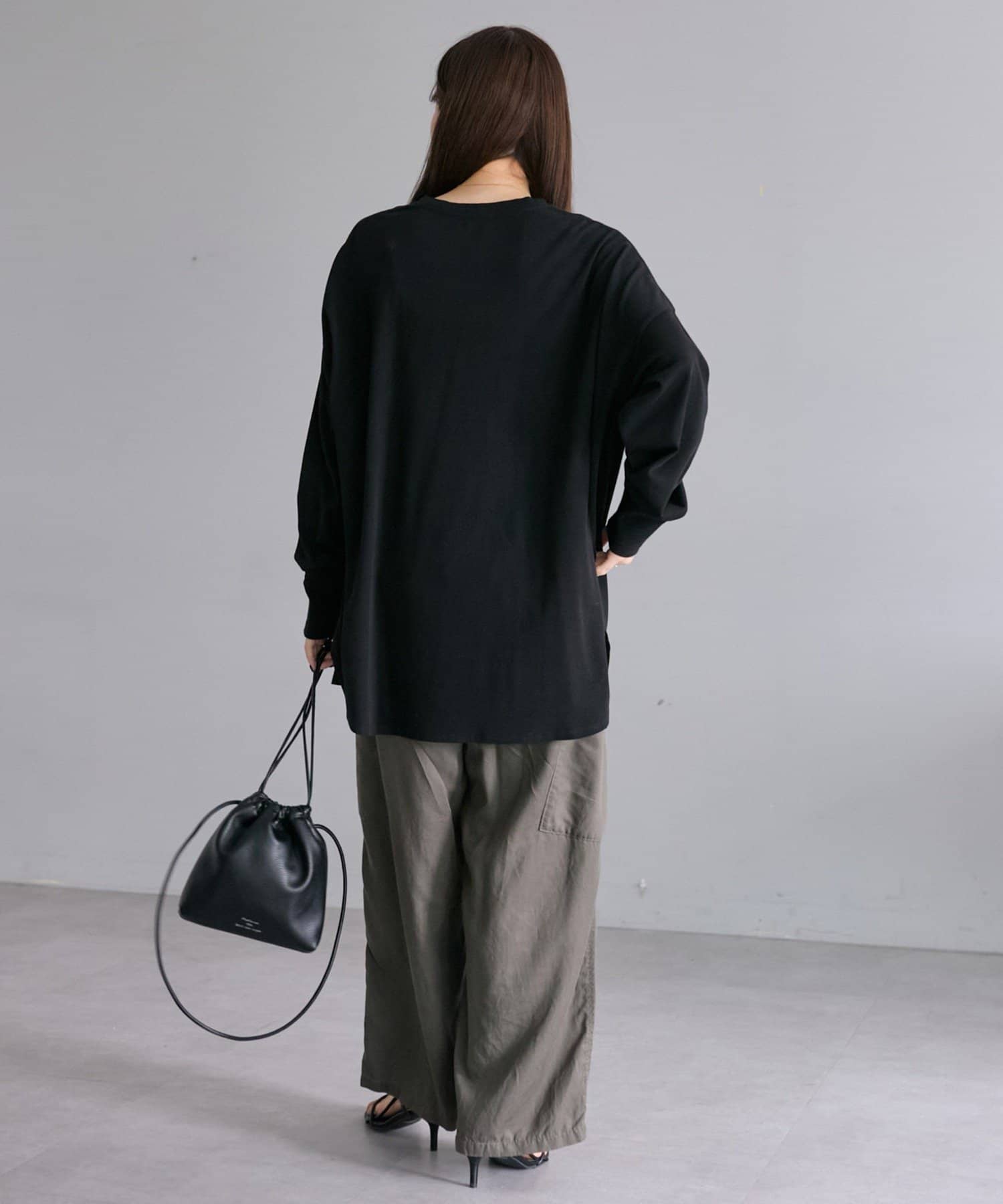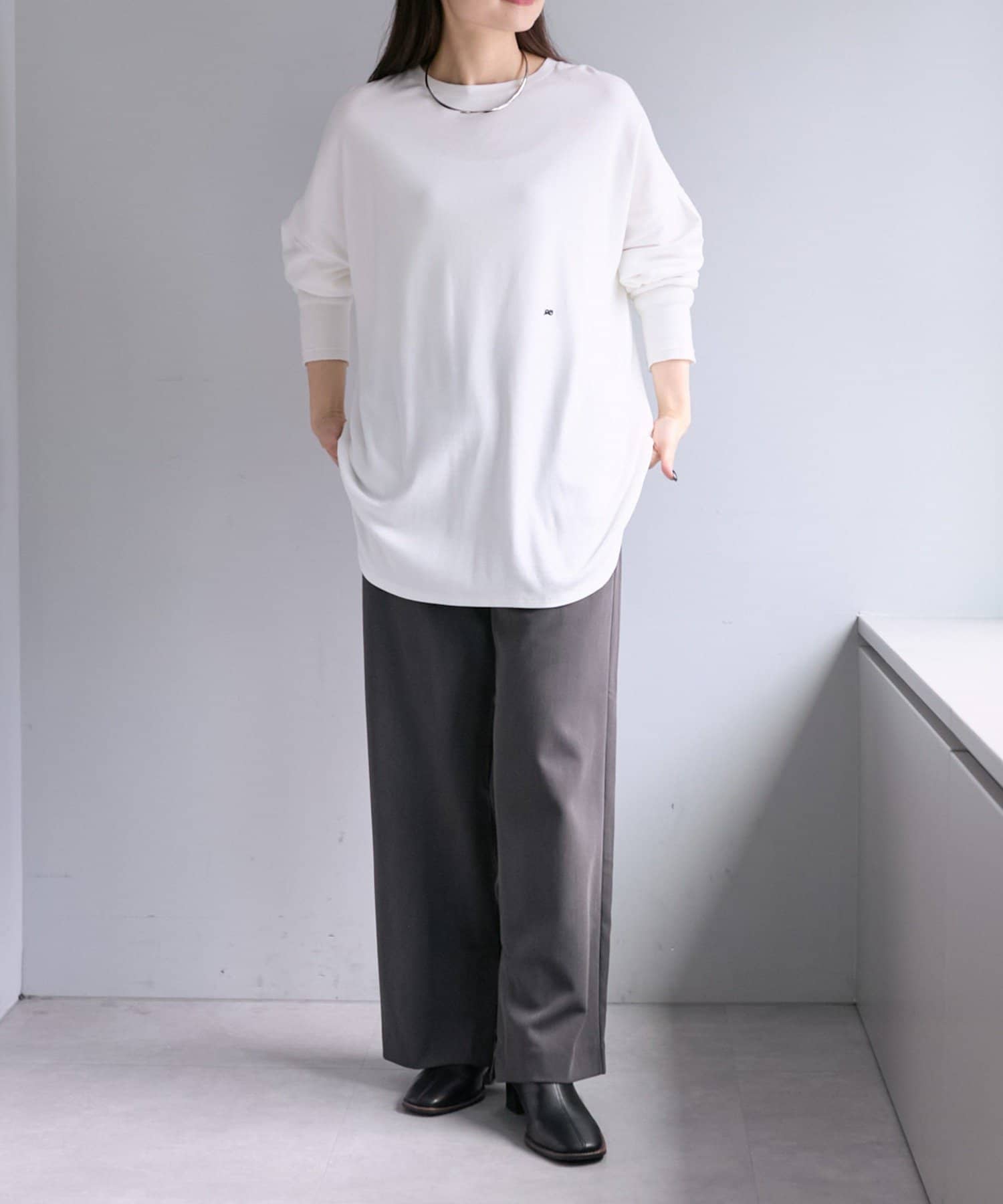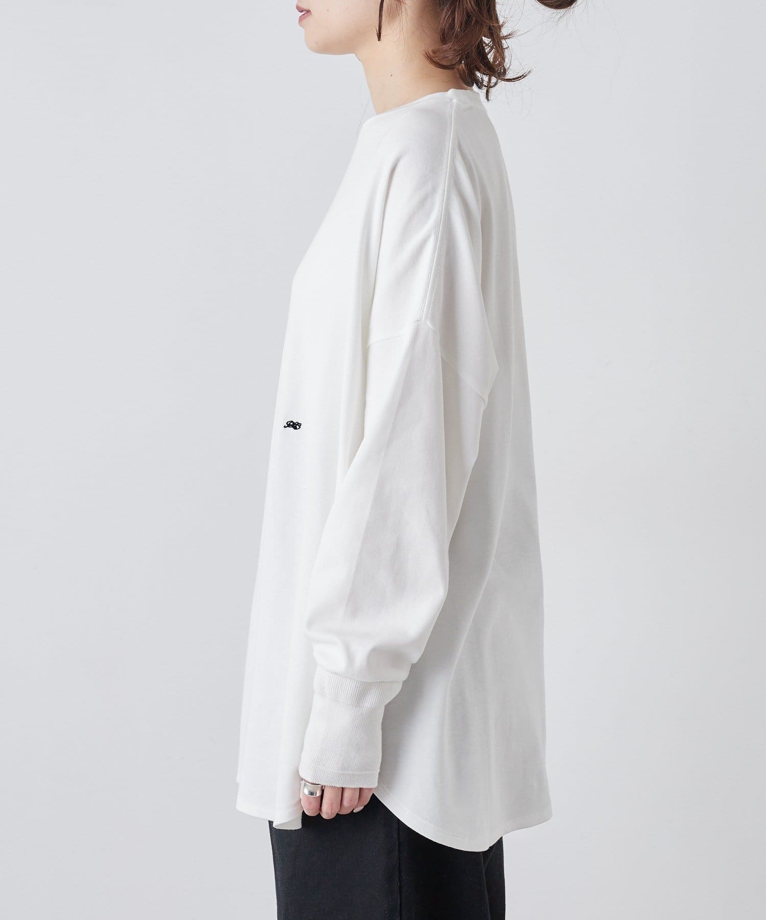 着用感:広めな身幅のオーバーサイズでラフに着られ、滑らかな触り心地で長時間着用しても快適に過ごせます。