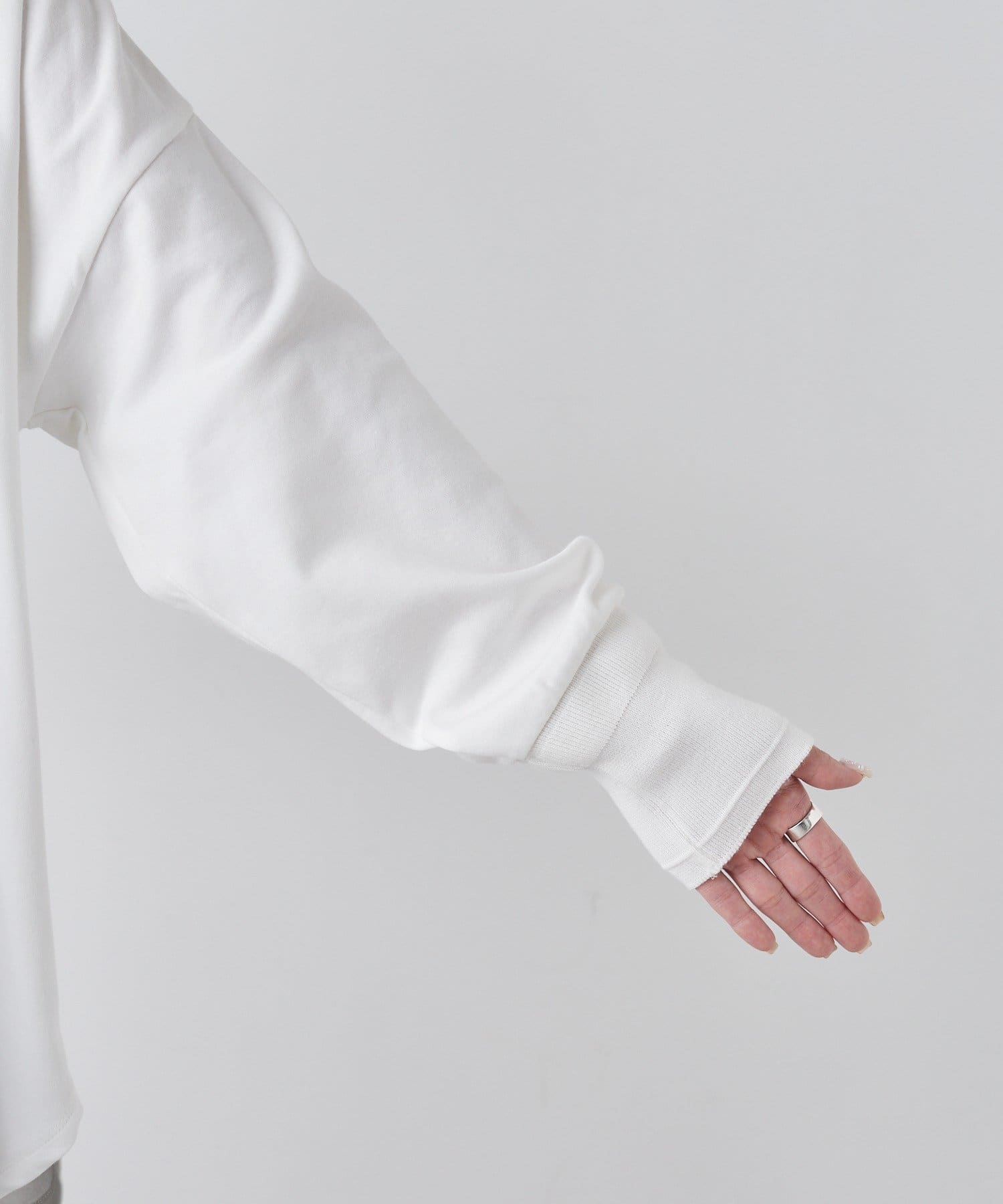 袖口はたくしあげられるようリブ仕様に仕上げ、シルエットのアレンジを楽しめるのも魅力。