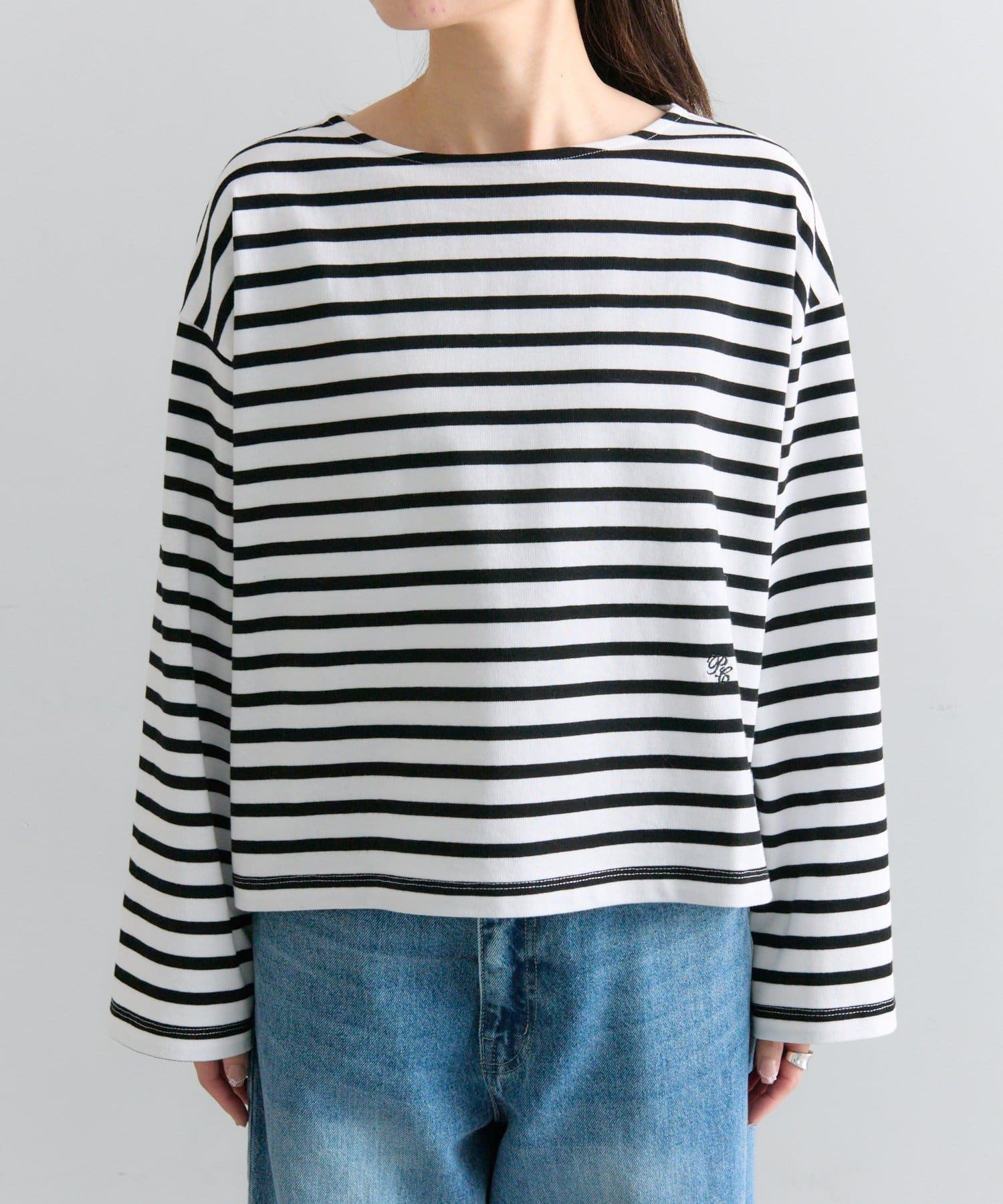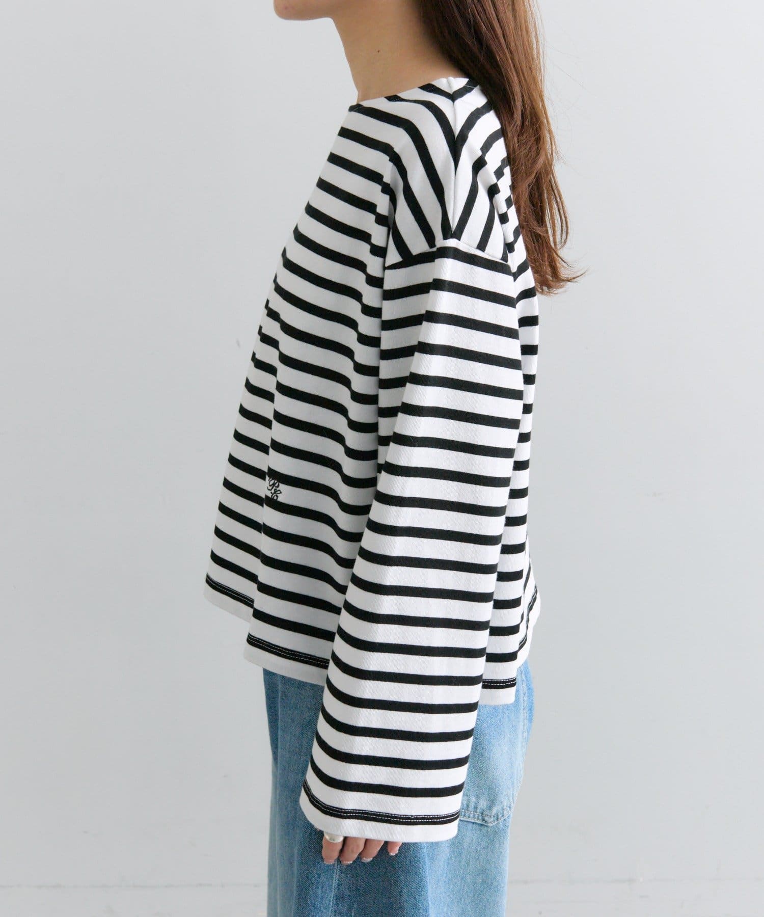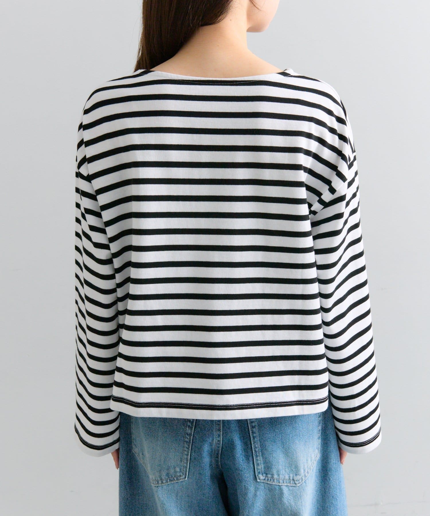 程よく開くボートネックデザインで顔回りがすっきりと、