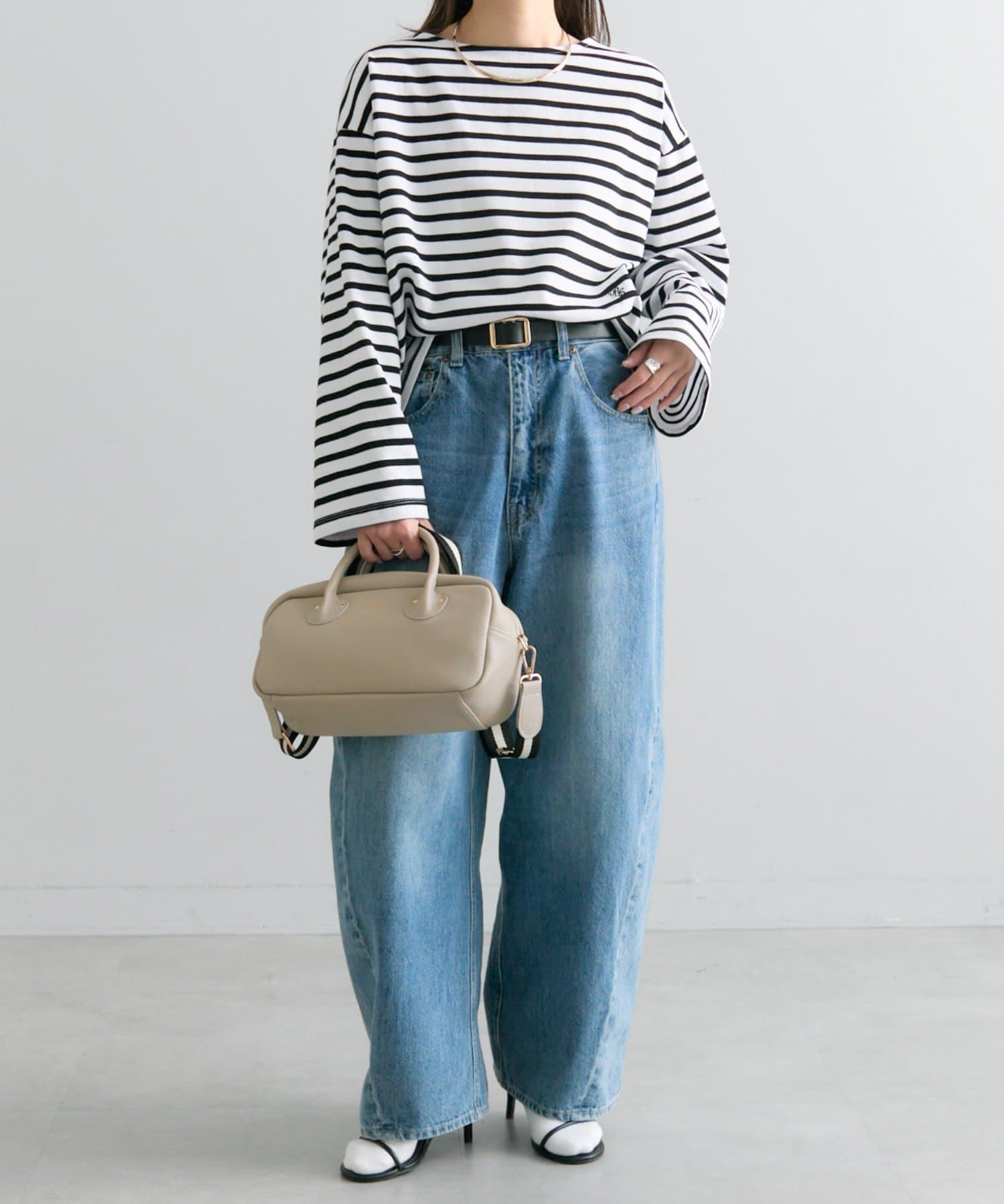 カーブやワイドシルエットのデニムパンツと合わせてカジュアルな着こなしもおすすめです。