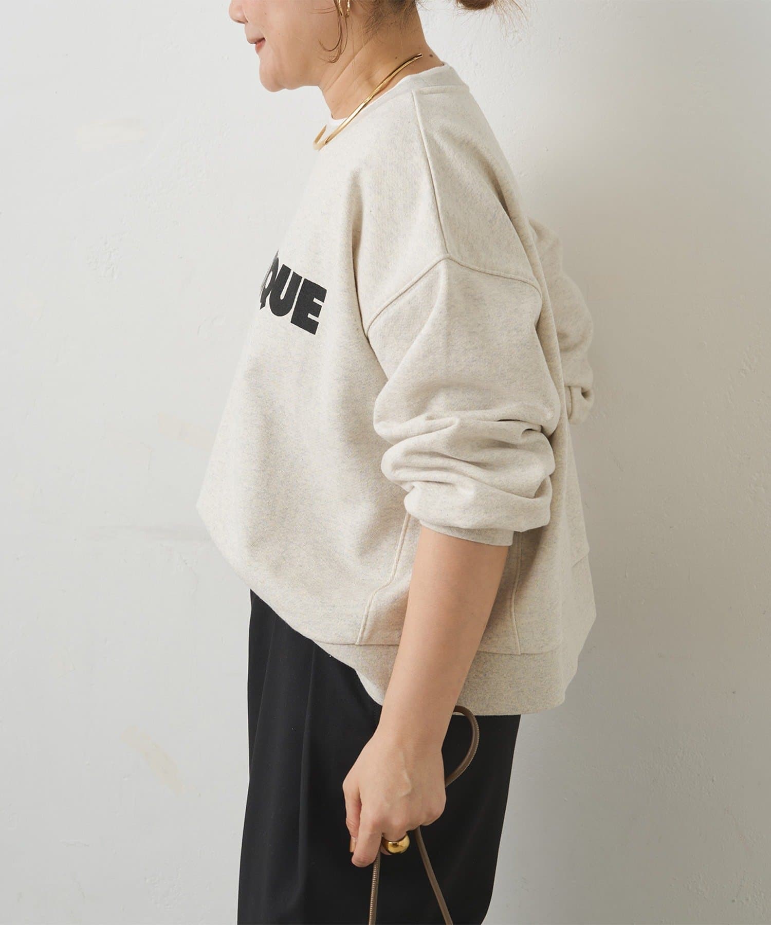 カジュアルムードを底上げするロゴスウェットプルオーバー。