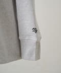 襟元は、クルーネックに直線をMIXした変形リブを沿わせ、
