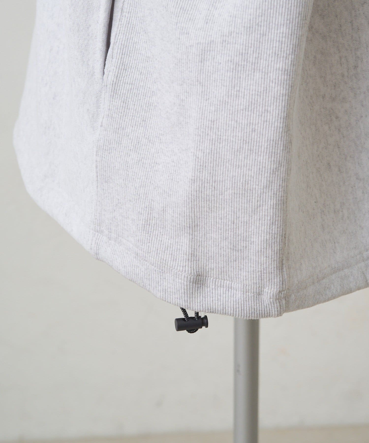 裾にはドローコードを忍ばせ、すっきりとしたボックスシルエットから少し丸みのあるバルーンなシルエットまで、