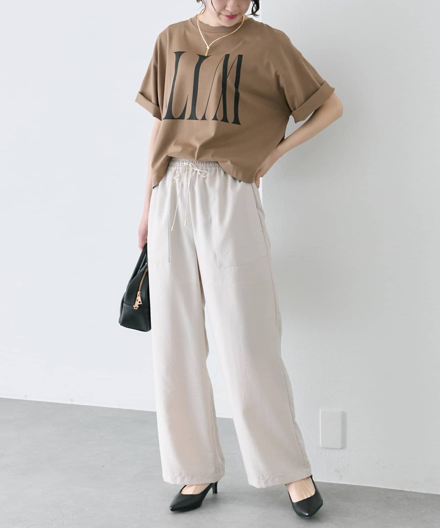夏のスタイリングに取り入れたい大人のロゴTシャツです。