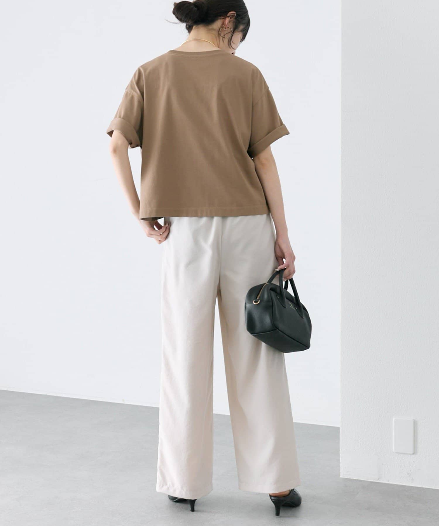 ショート丈なのでゆったりとしたボトムスとの相性も良いです。