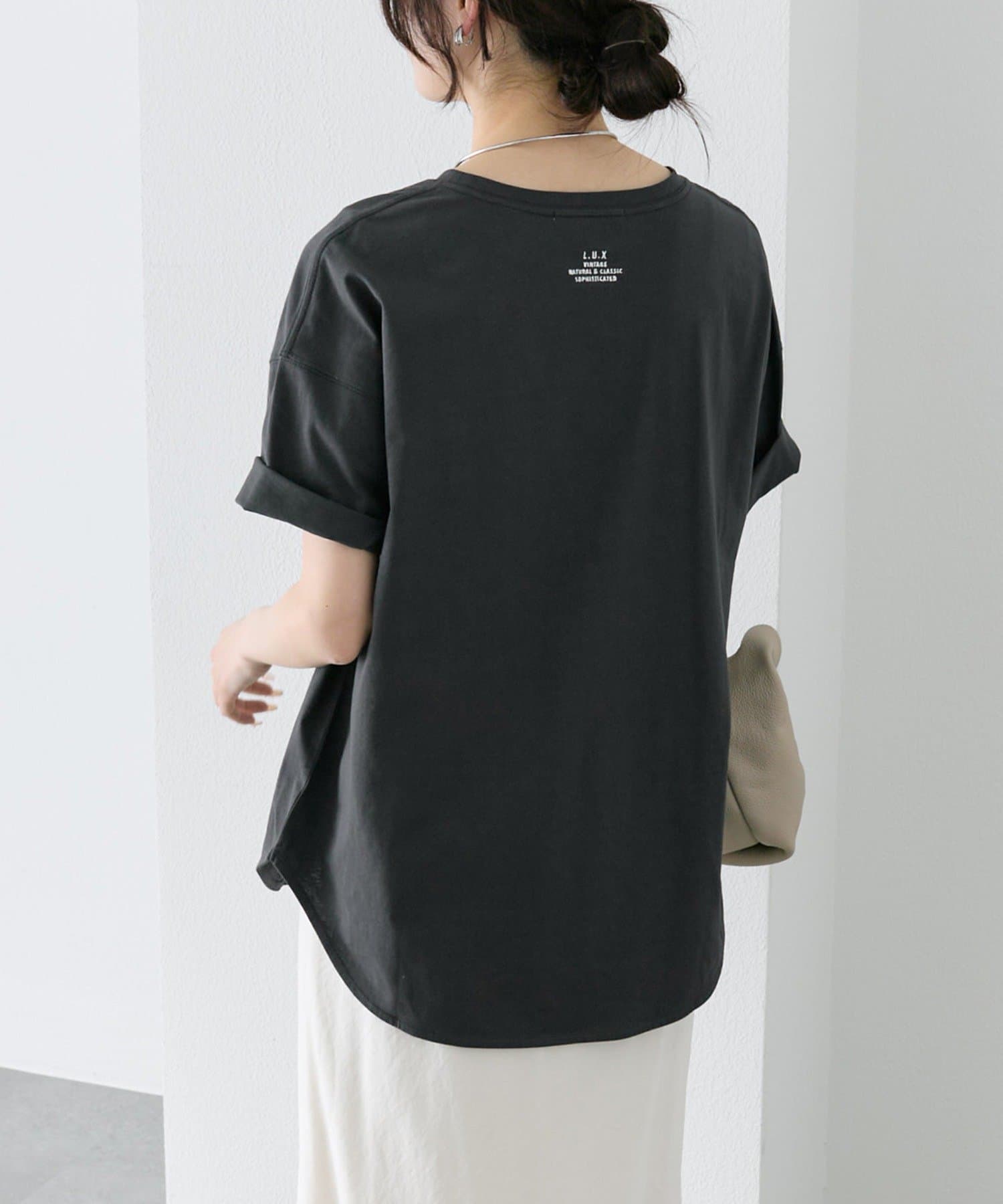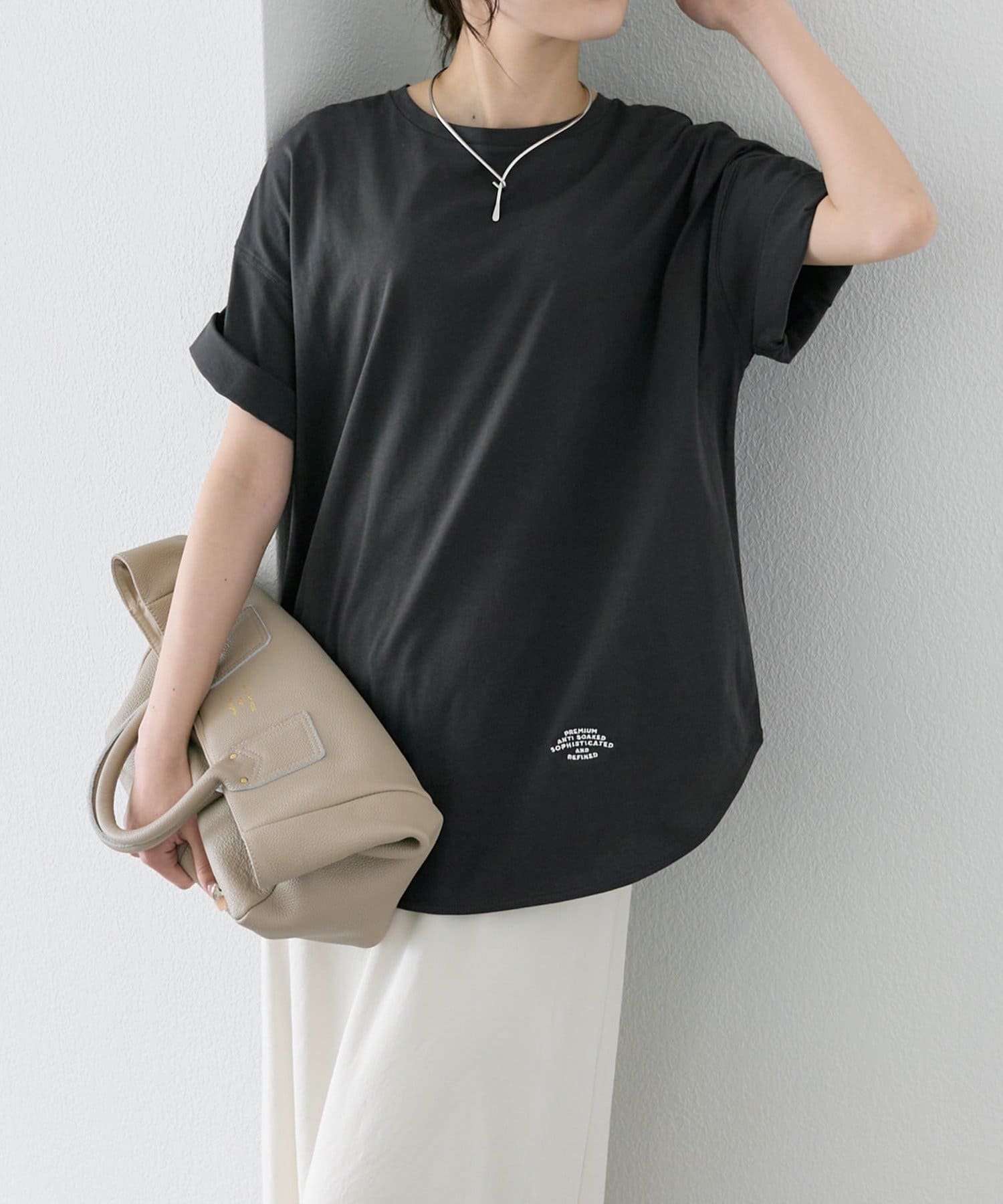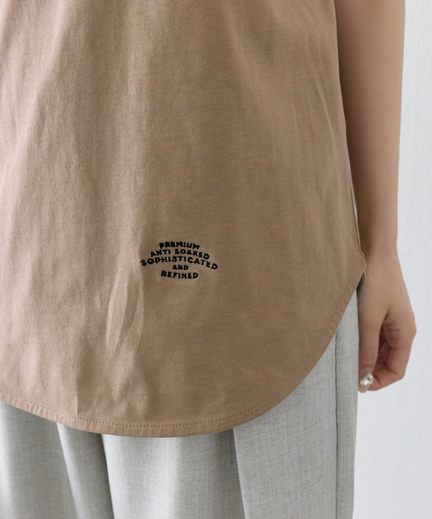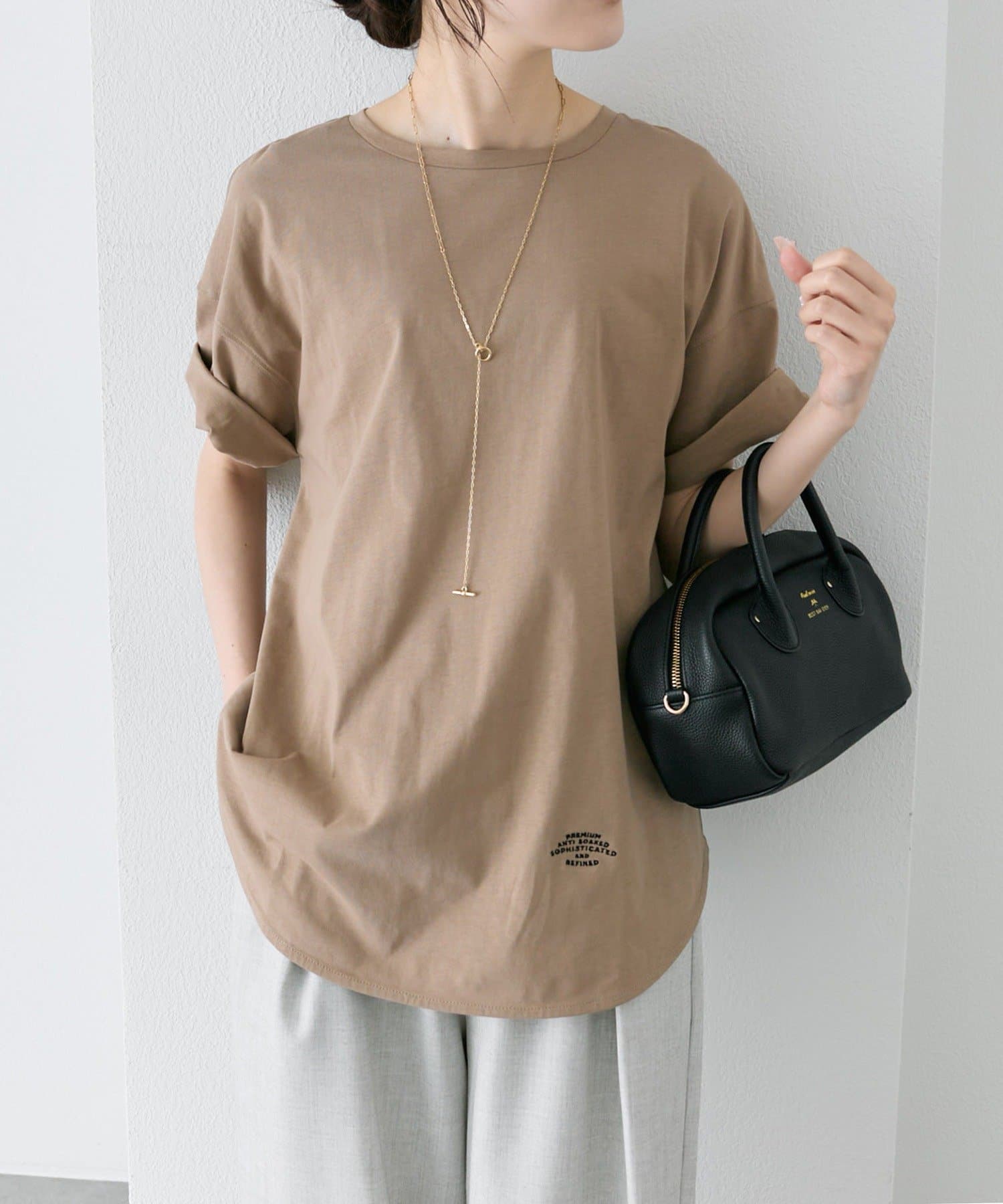 機能性のあるTシャツなので、ジレベストやキャミワンピースのインナーにもオススメです。