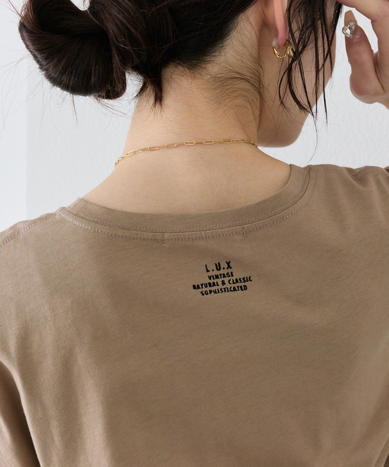 腰元と首後ろにロゴプリントがデザインされておりワンポイントに。