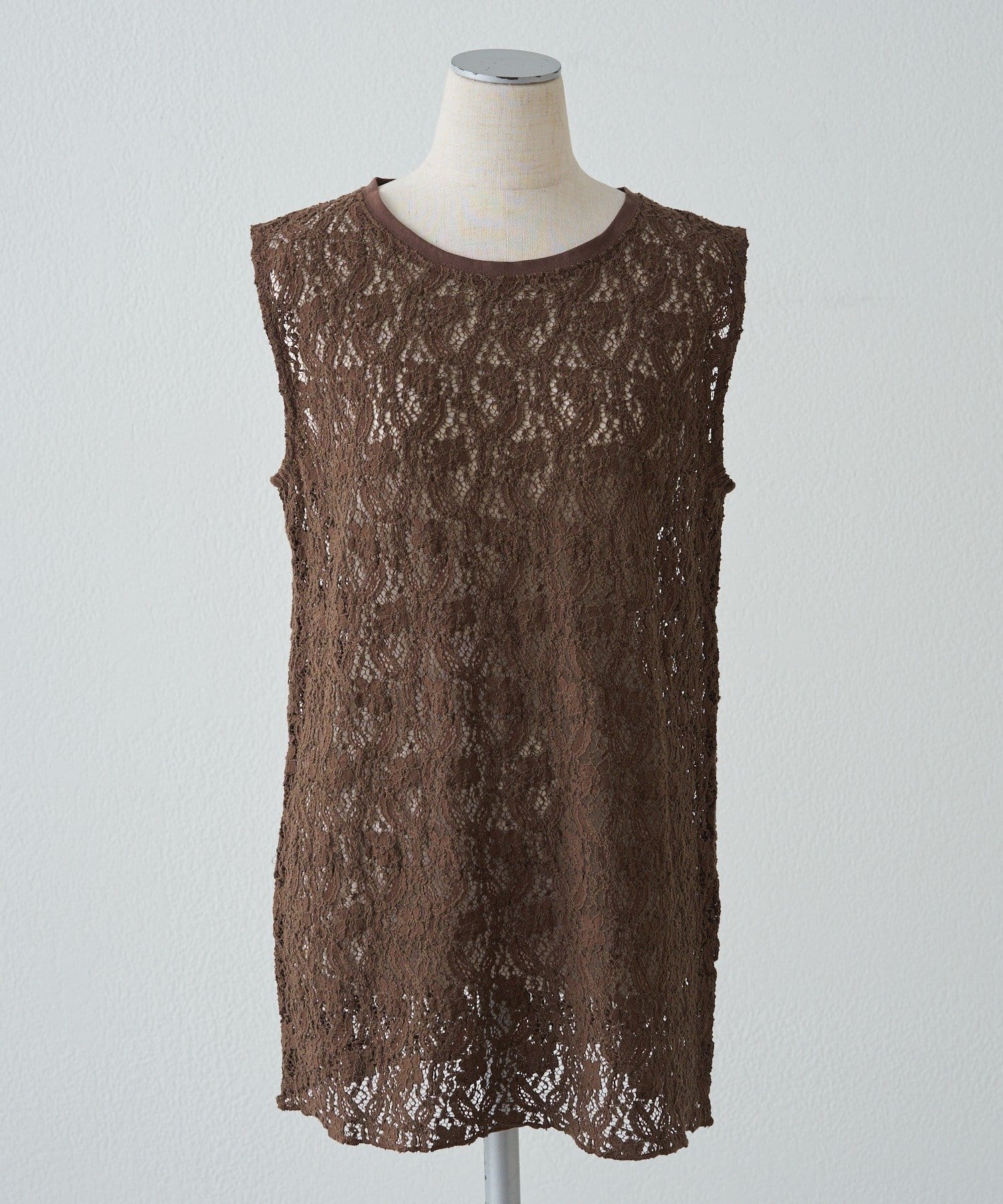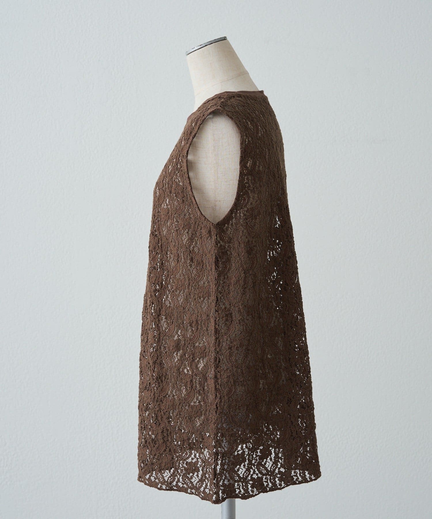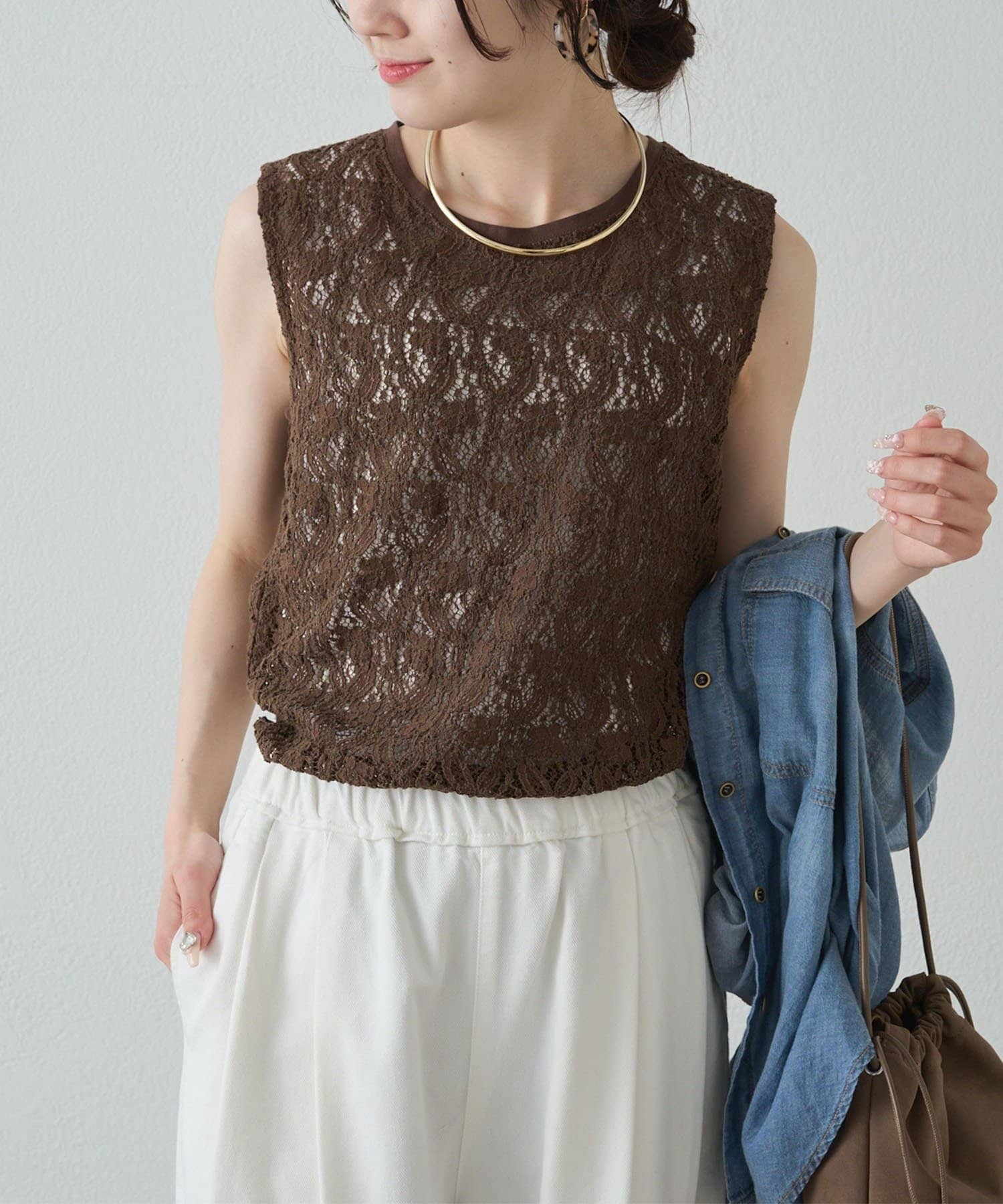華やかなレースを贅沢に使用した、着映えするノースリーブレーストップス。