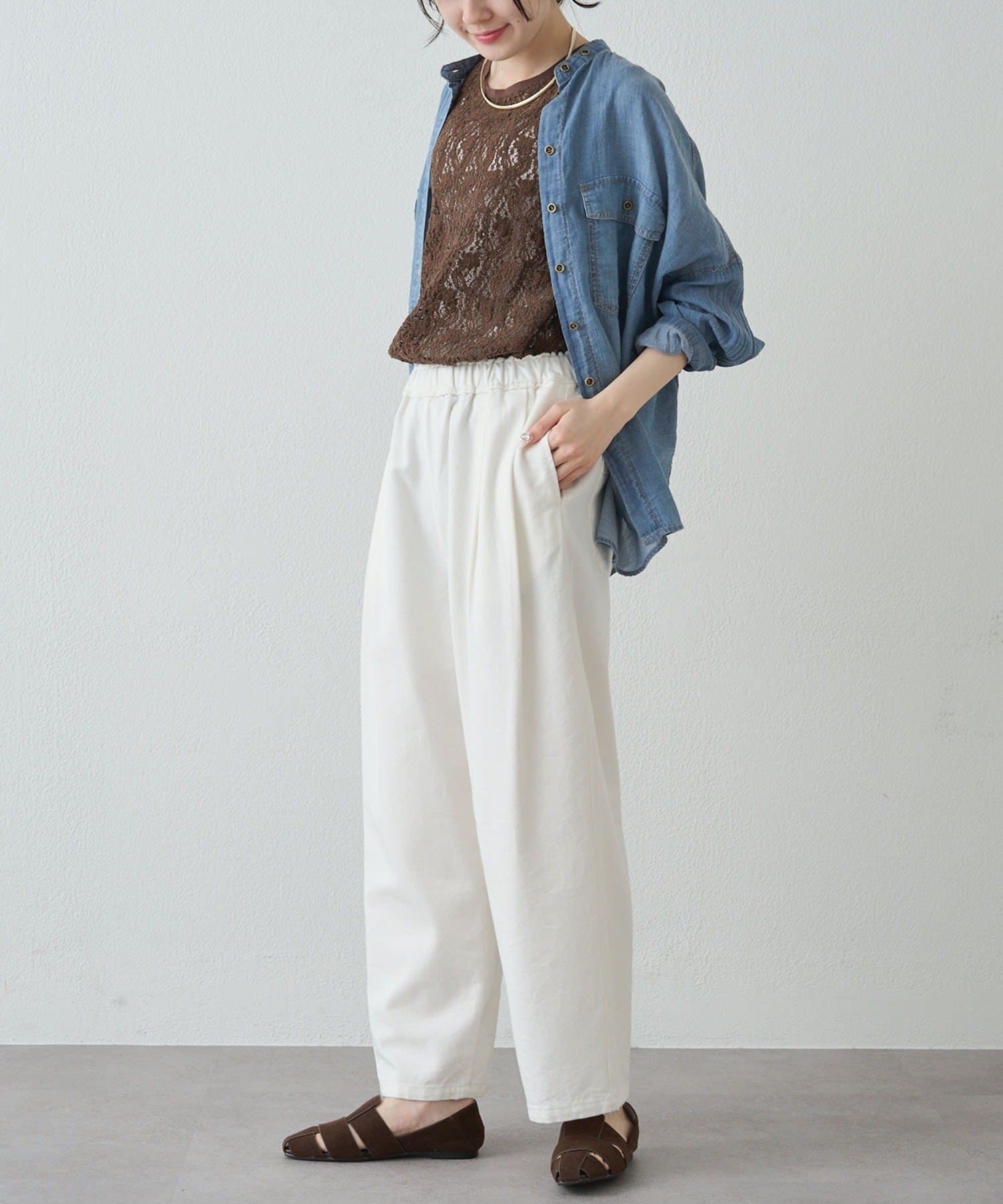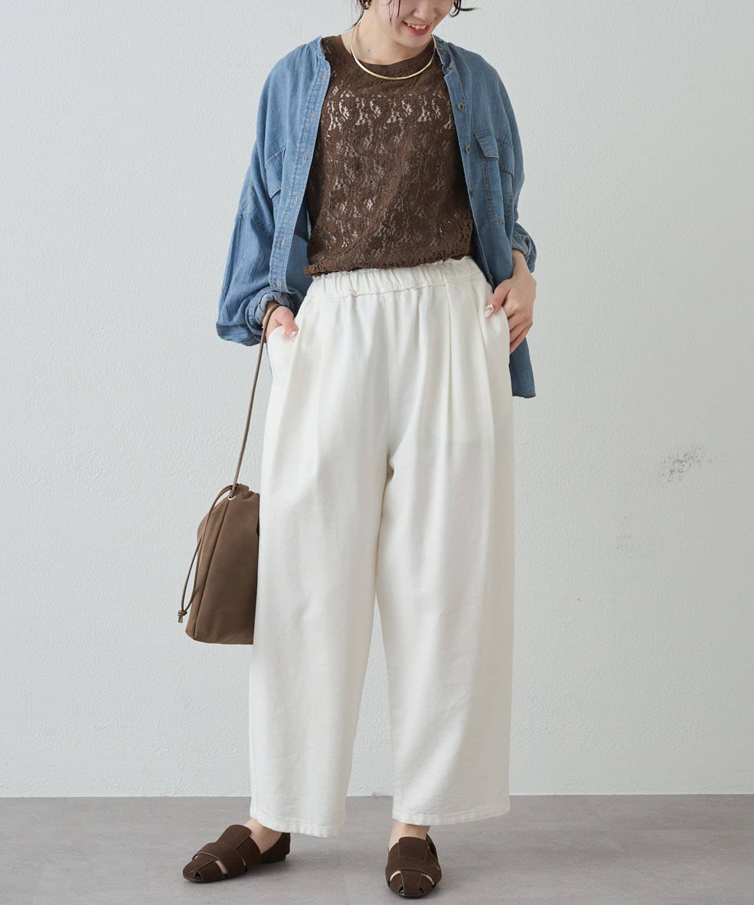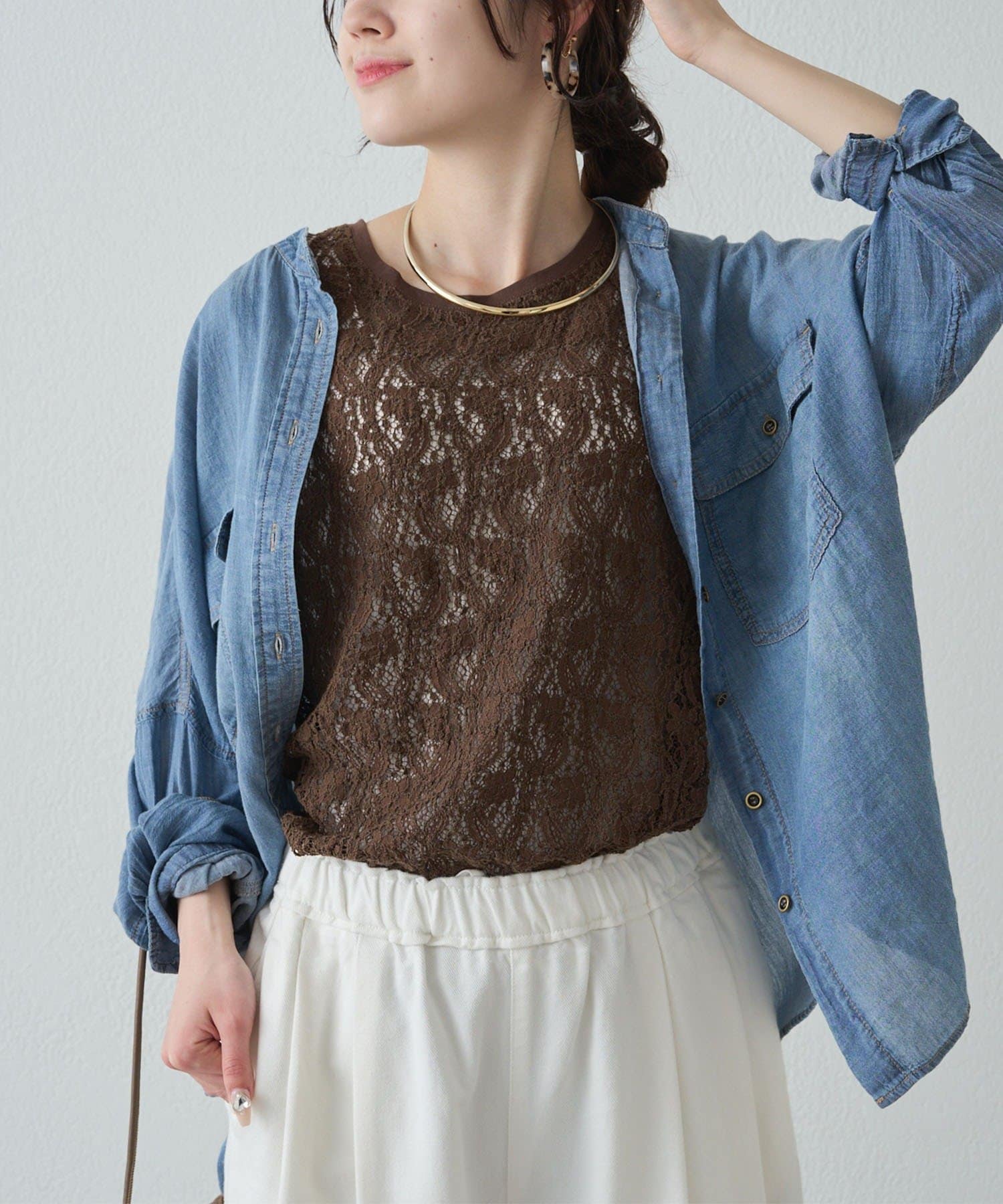 程よく肌が透けるレースならではの透け具合が、自然と透明感を生みエフォートレスな自然体な姿を演出。