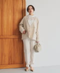 トップスをコンパクトにまとめて、ボトムスをスラックスにすればマニッシュな中にも華やかさを感じるスタイルに昇華。