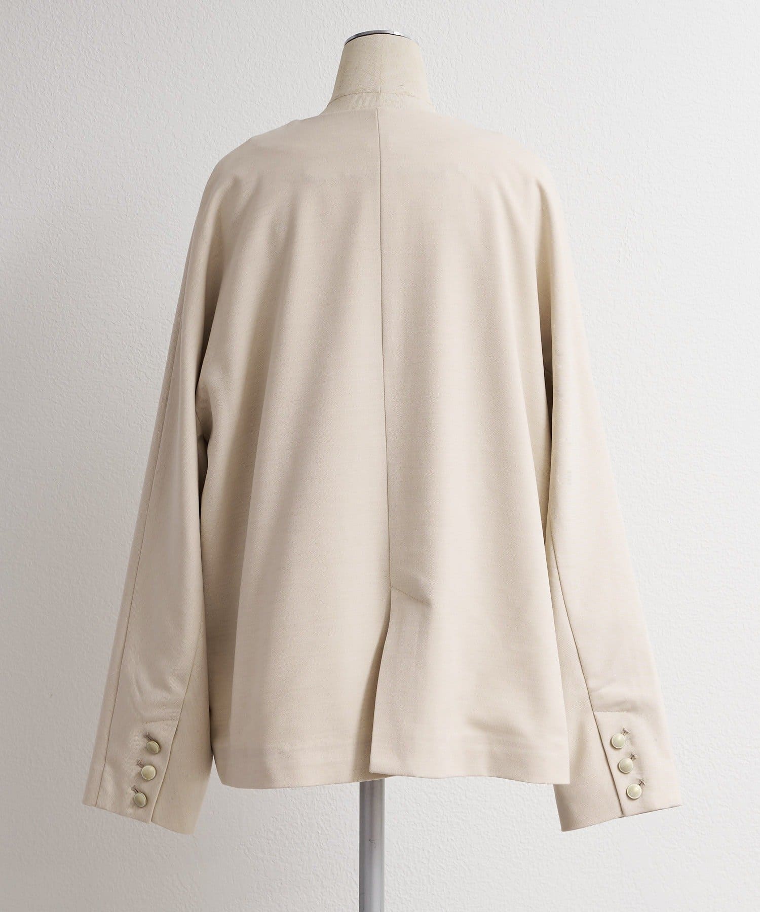 シルエットにこだわり抜いたラペルレスジャケット。