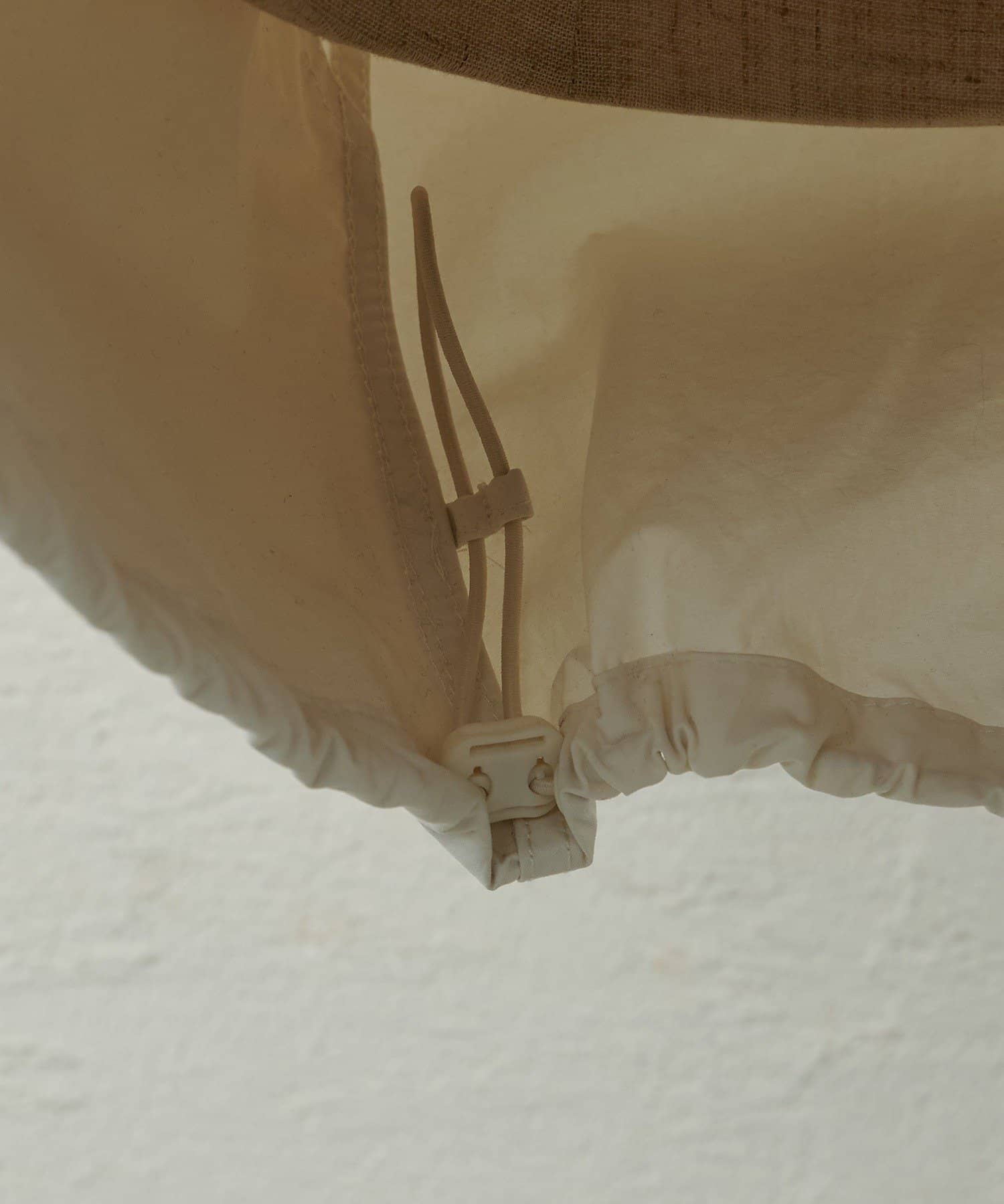 フードには、柔らかいワイヤーを入れ立体的な形をキープ。