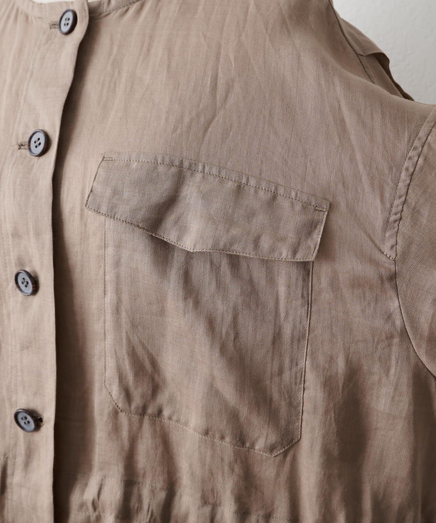 程よい透け感が上品で軽やかなラミー素材は、着ていくうちに肌に馴染みます。