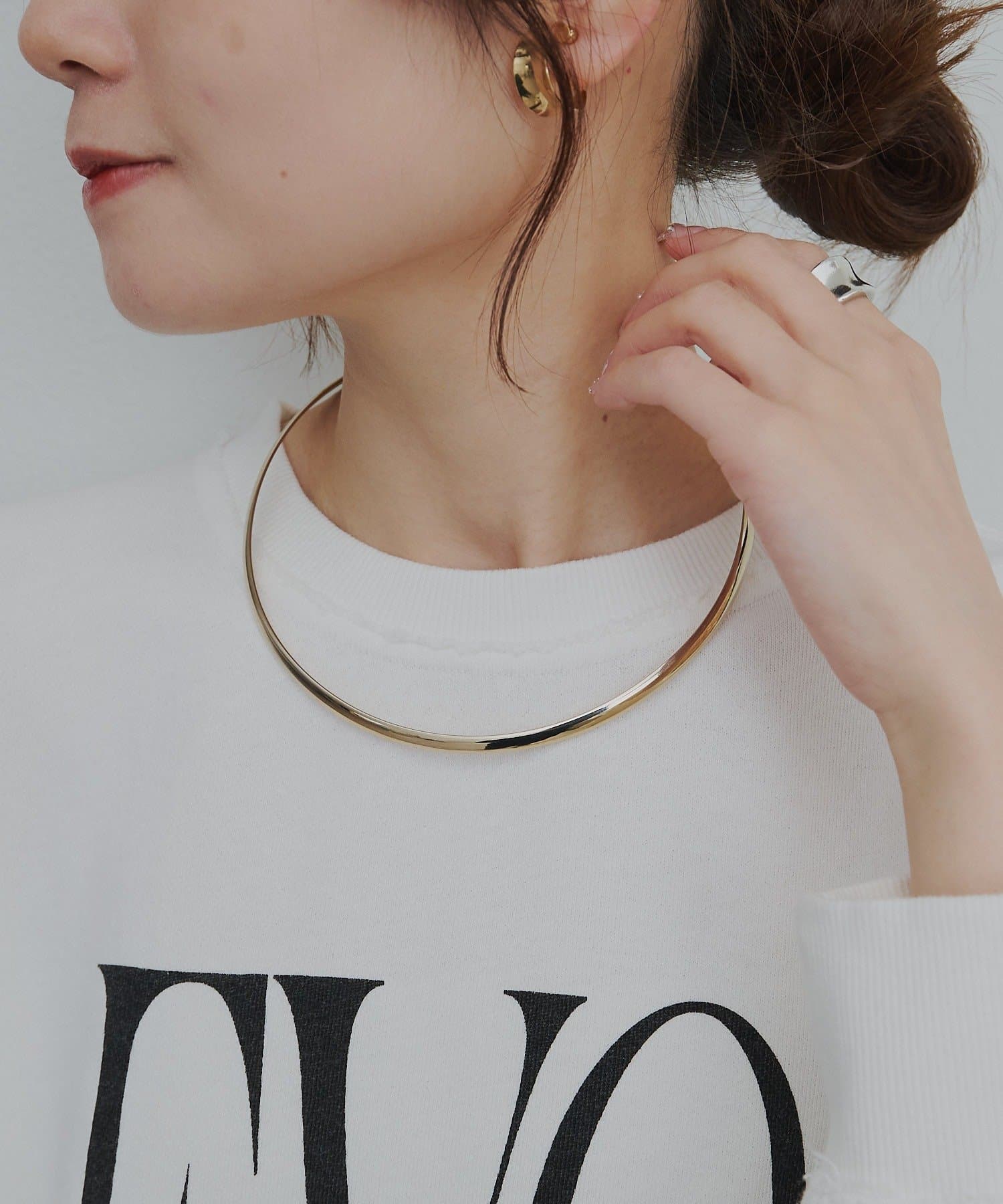 シンプルながら存在感を放つメタルチョーカー。