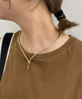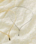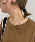 トレンドのメタルチョーカーにY字のラインを加えたことでコーディネートの鮮度を高め、