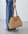 ハンドルやハイピングにフェイクレザーを組み合わせることで、カジュアル過ぎない見た目に仕上げました。