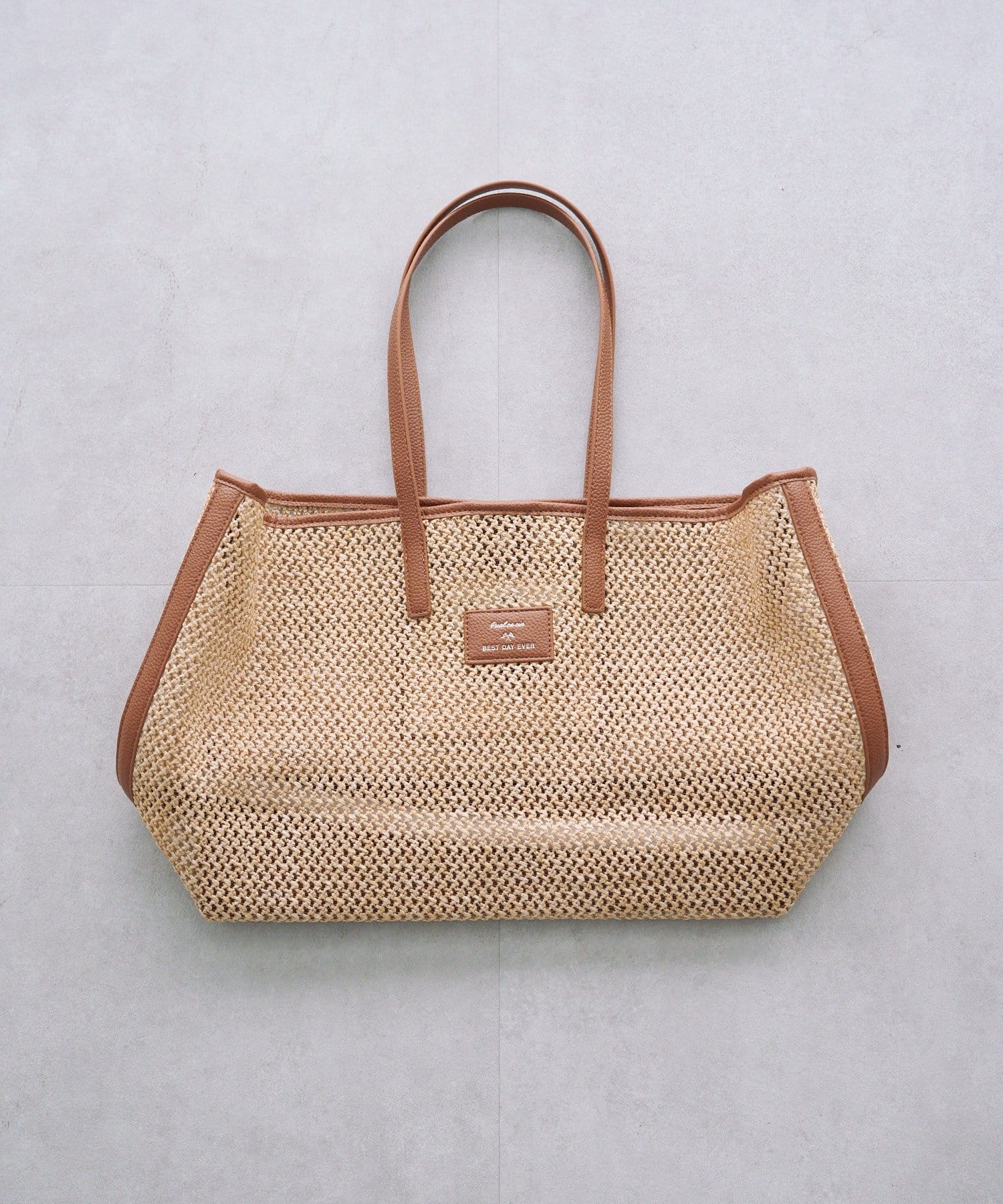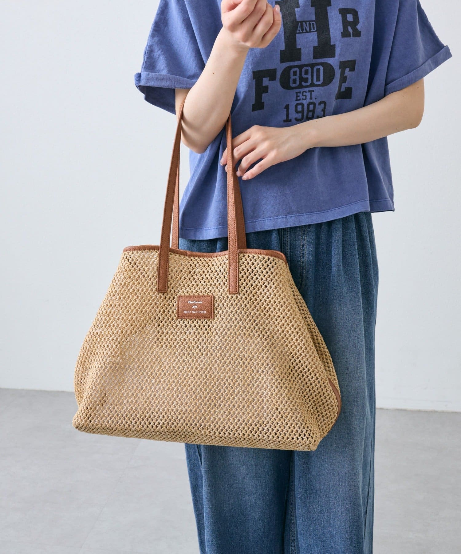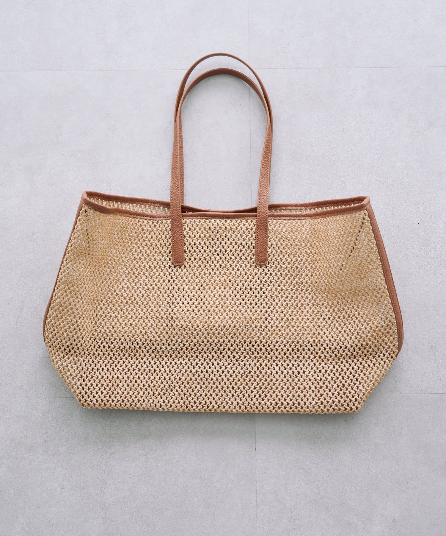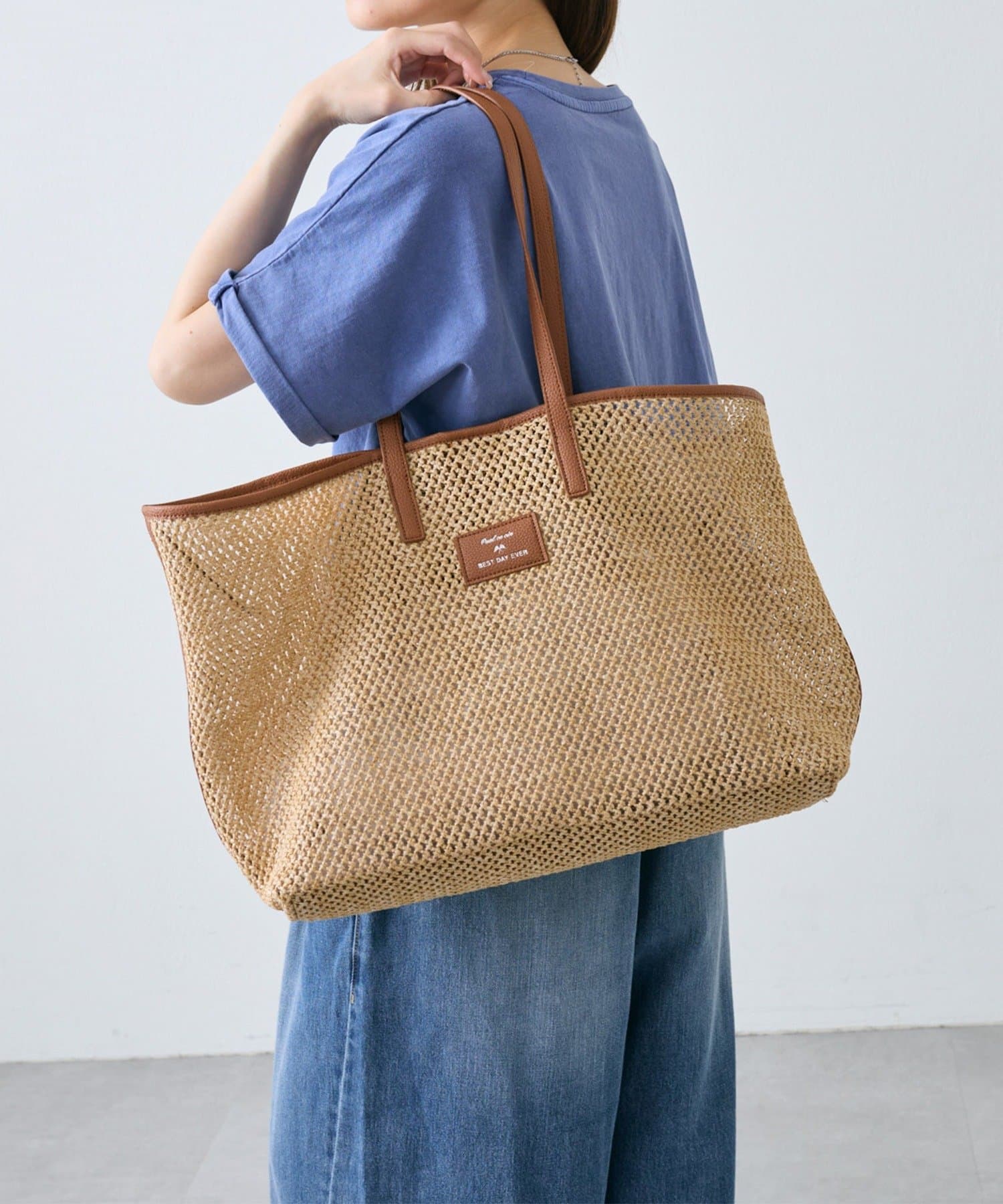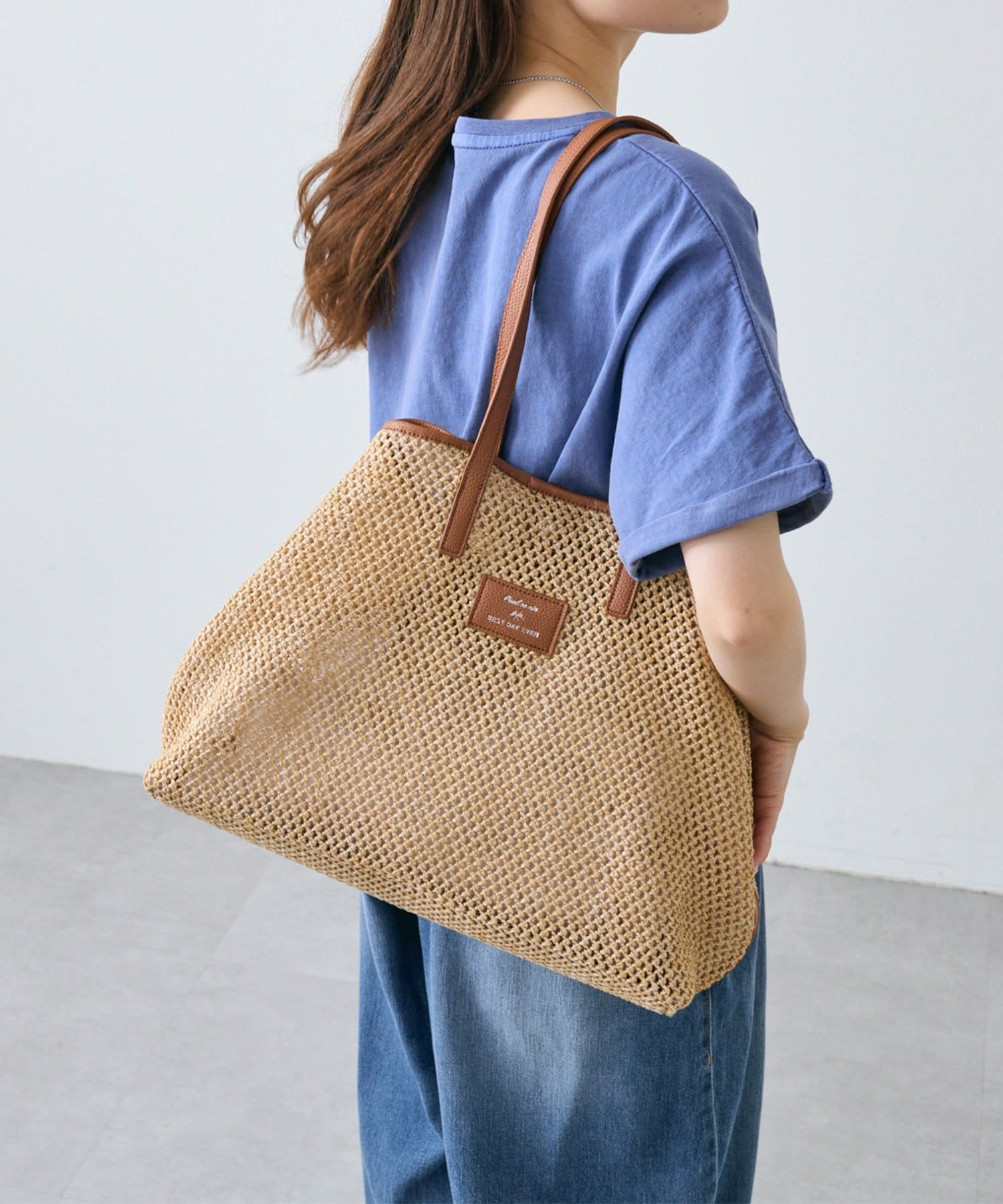 春夏シーズンにピッタリの涼し気な雑材トートバッグ。