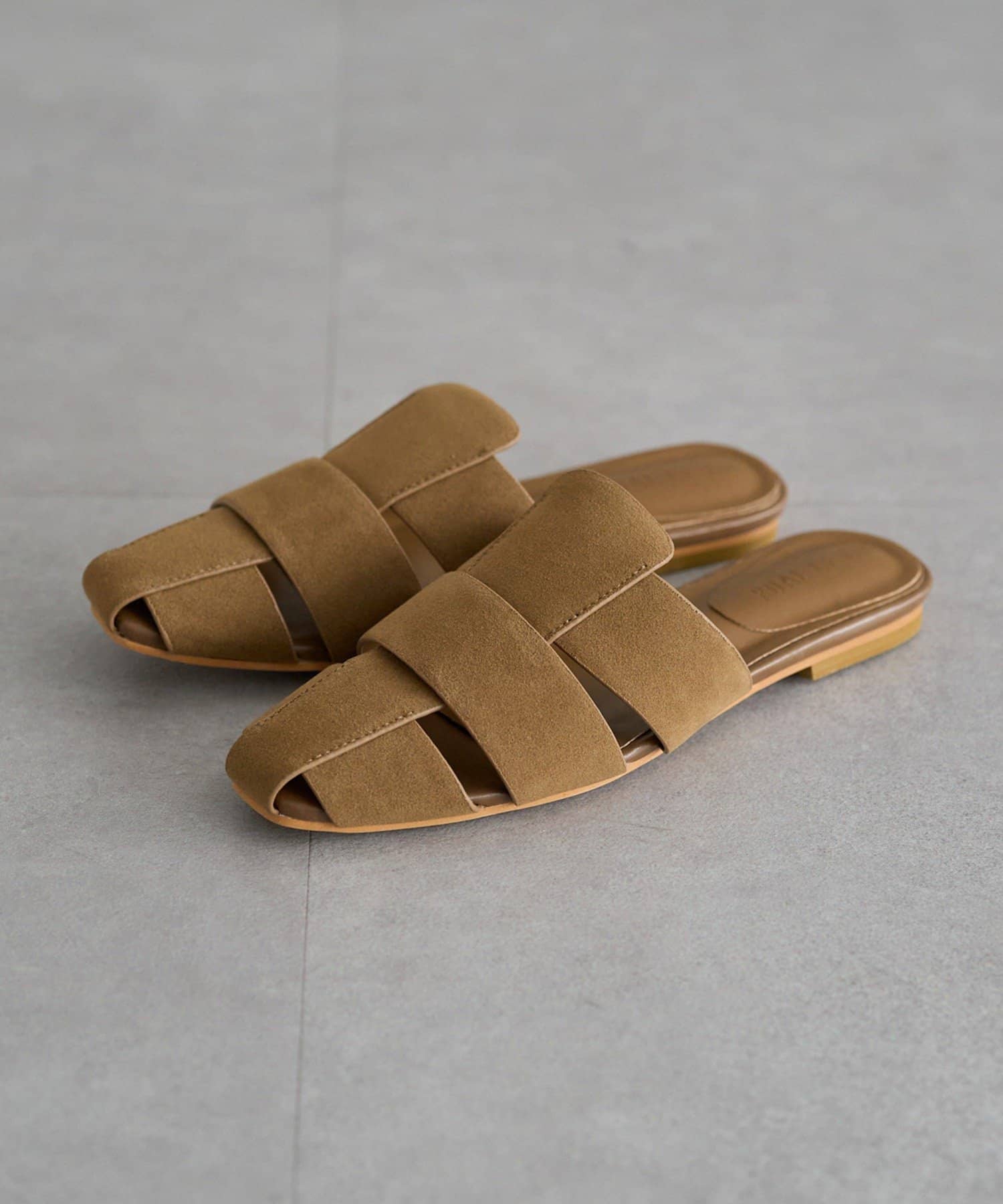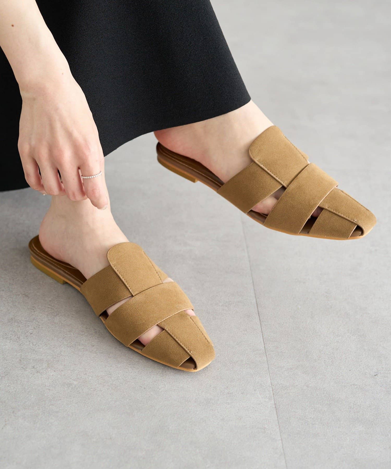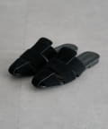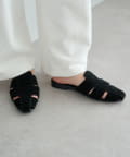スウェード調の素材を使用しミュール型に落とし込むことで、