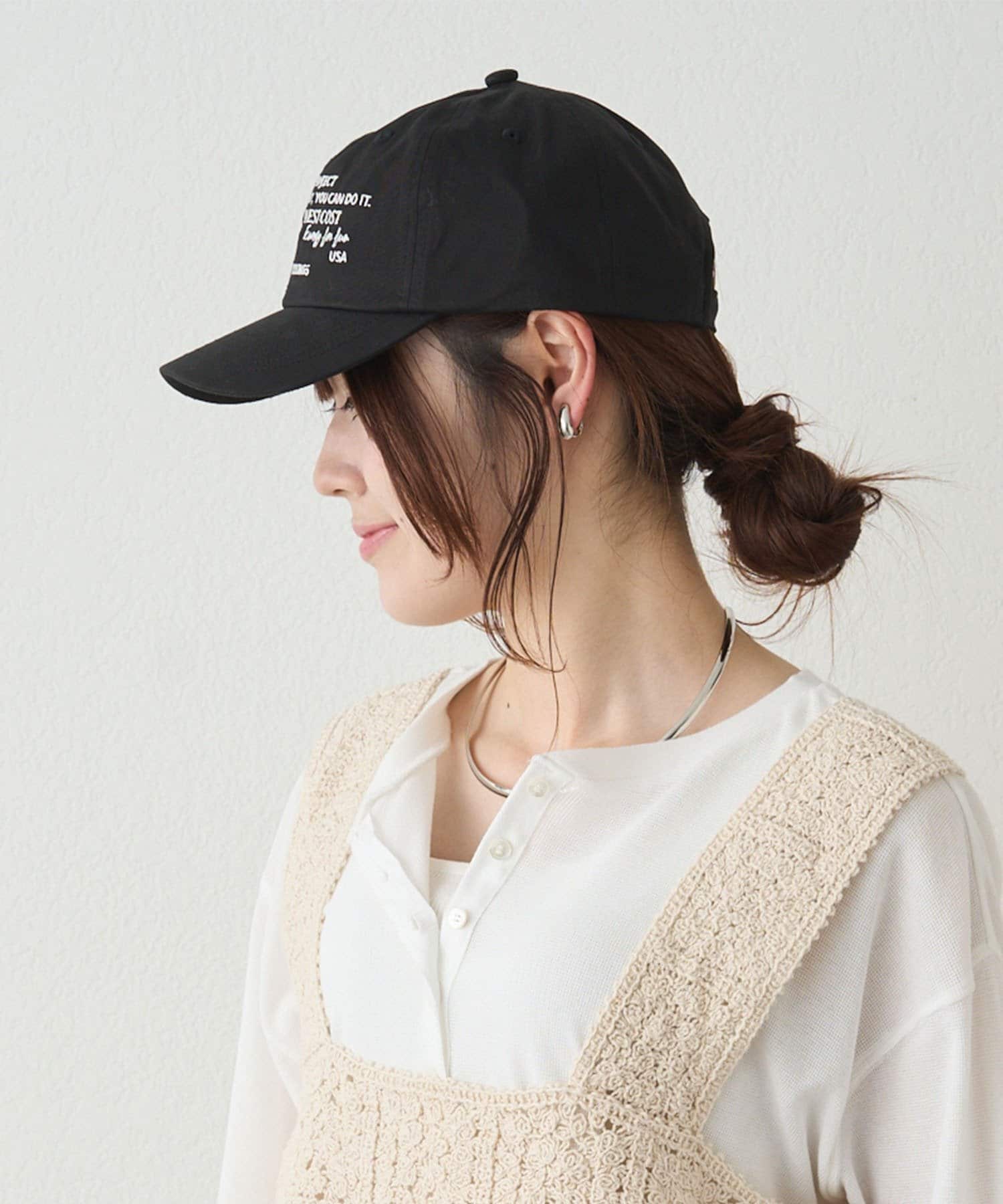 フロントのロゴ刺繍が目を惹く6パネルキャップ。